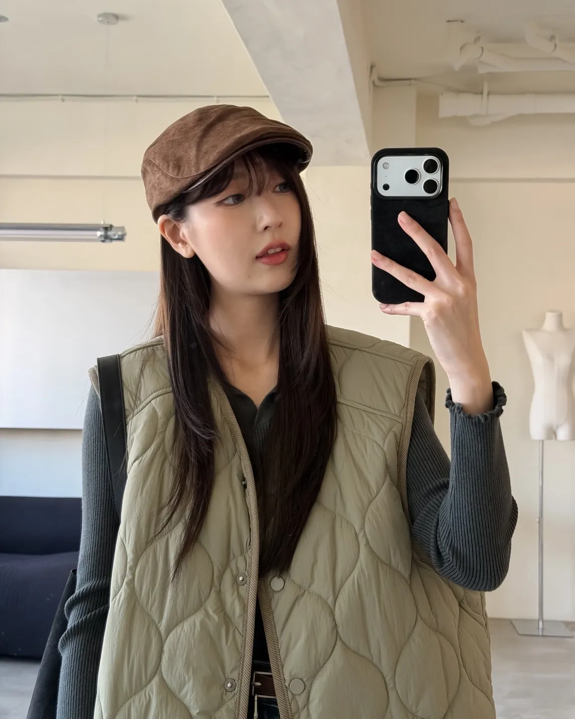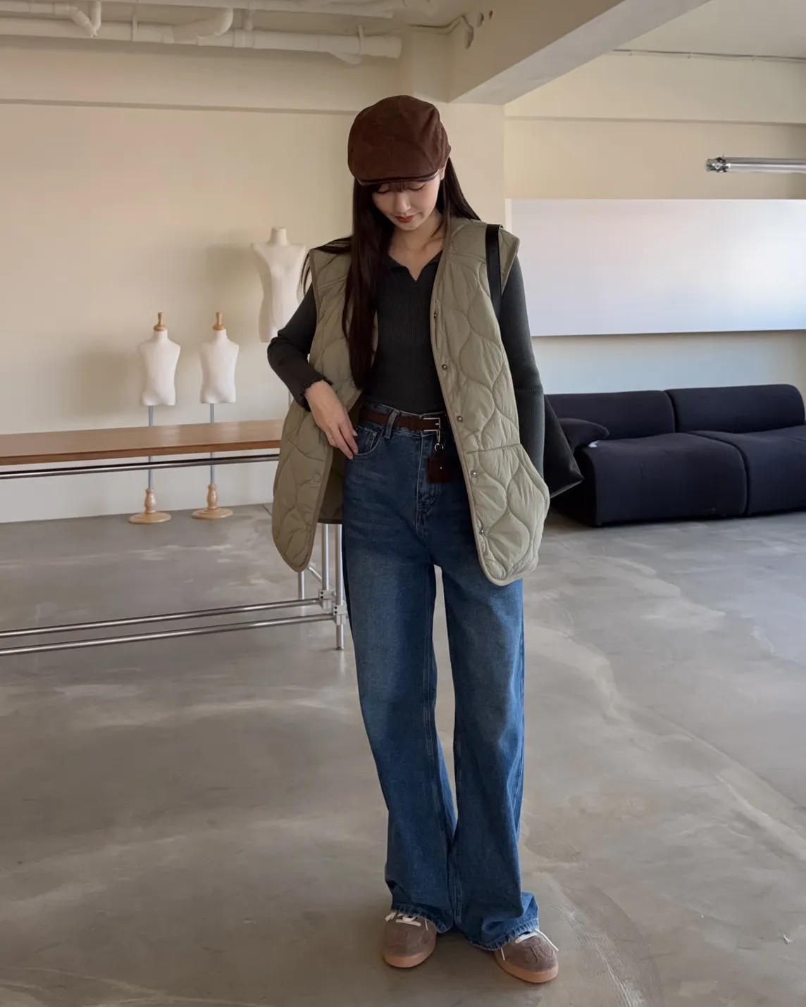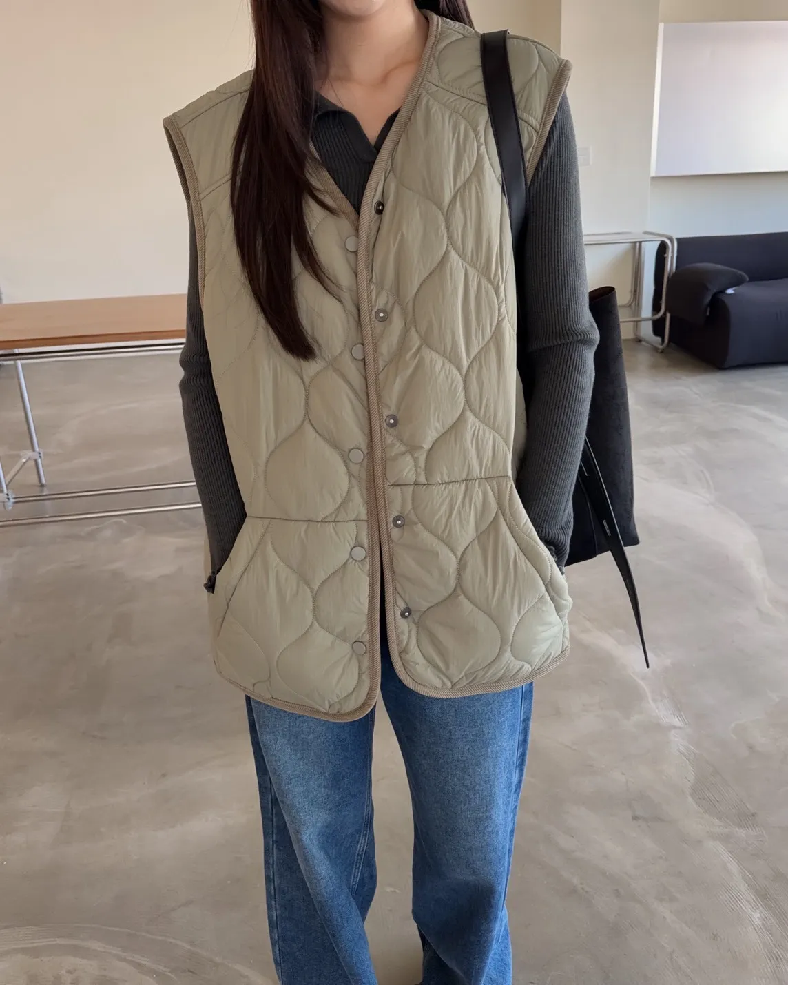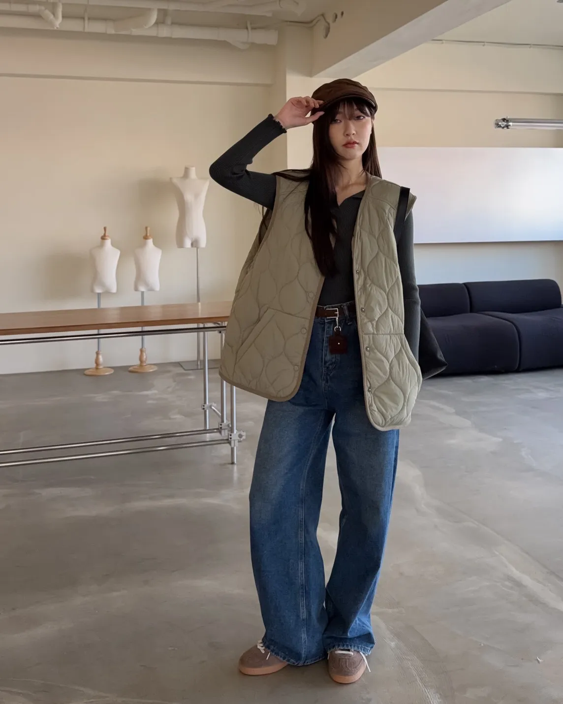 W0033日系の葫蘆紋鋪棉背心(咖啡/黑/綠)