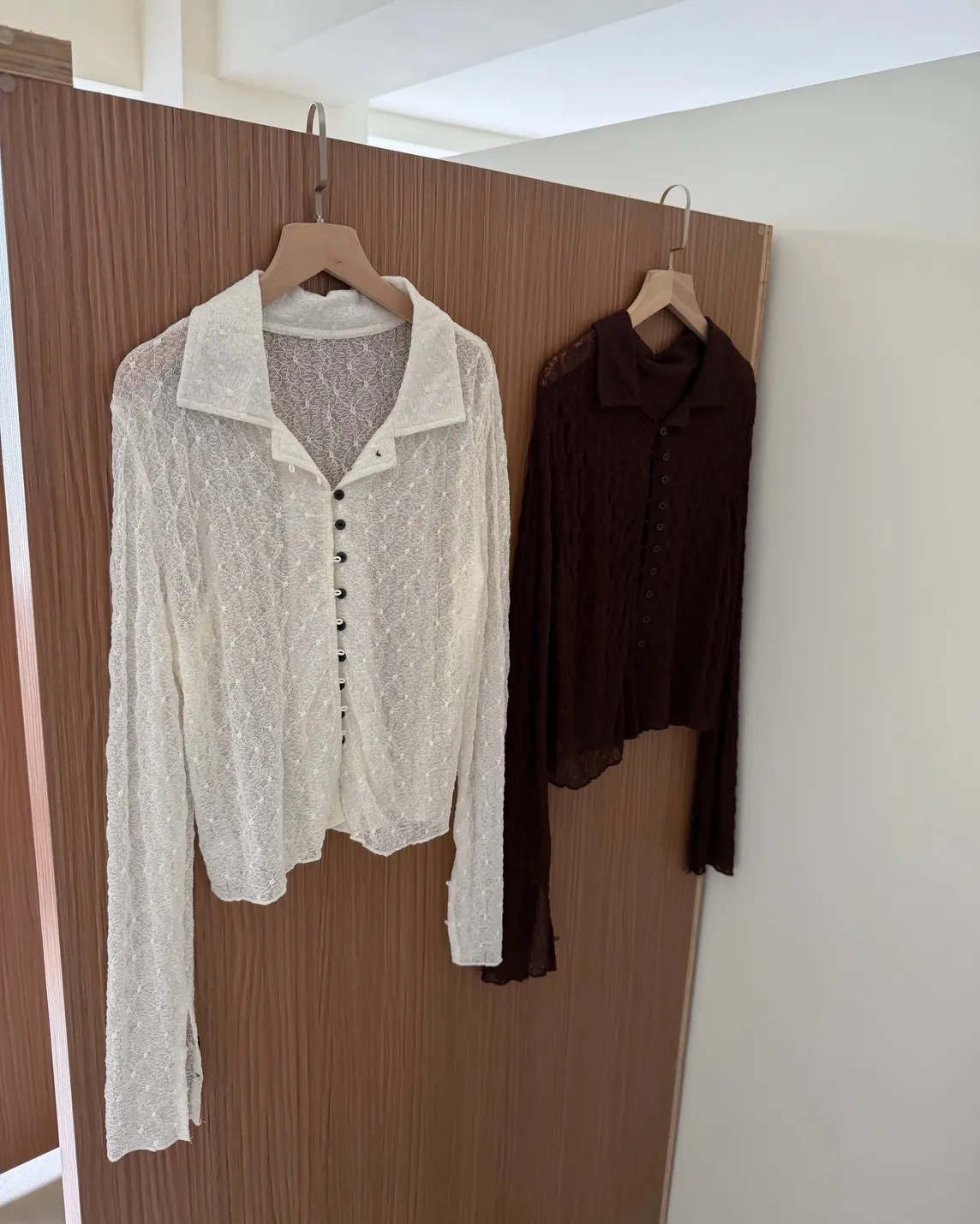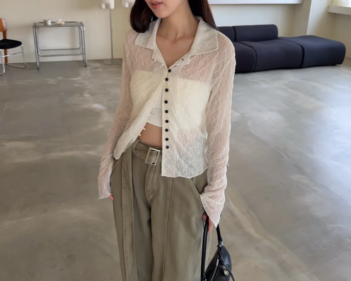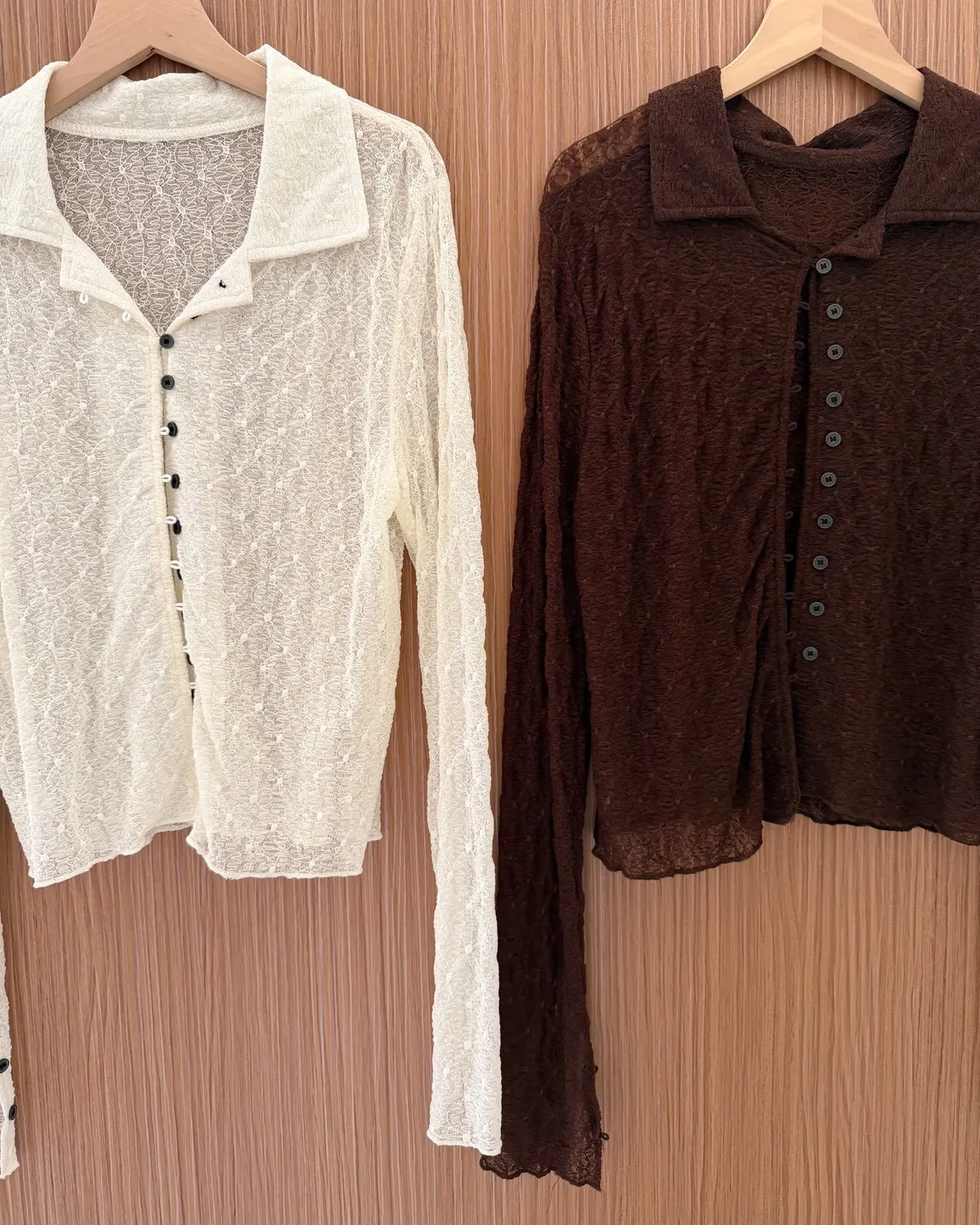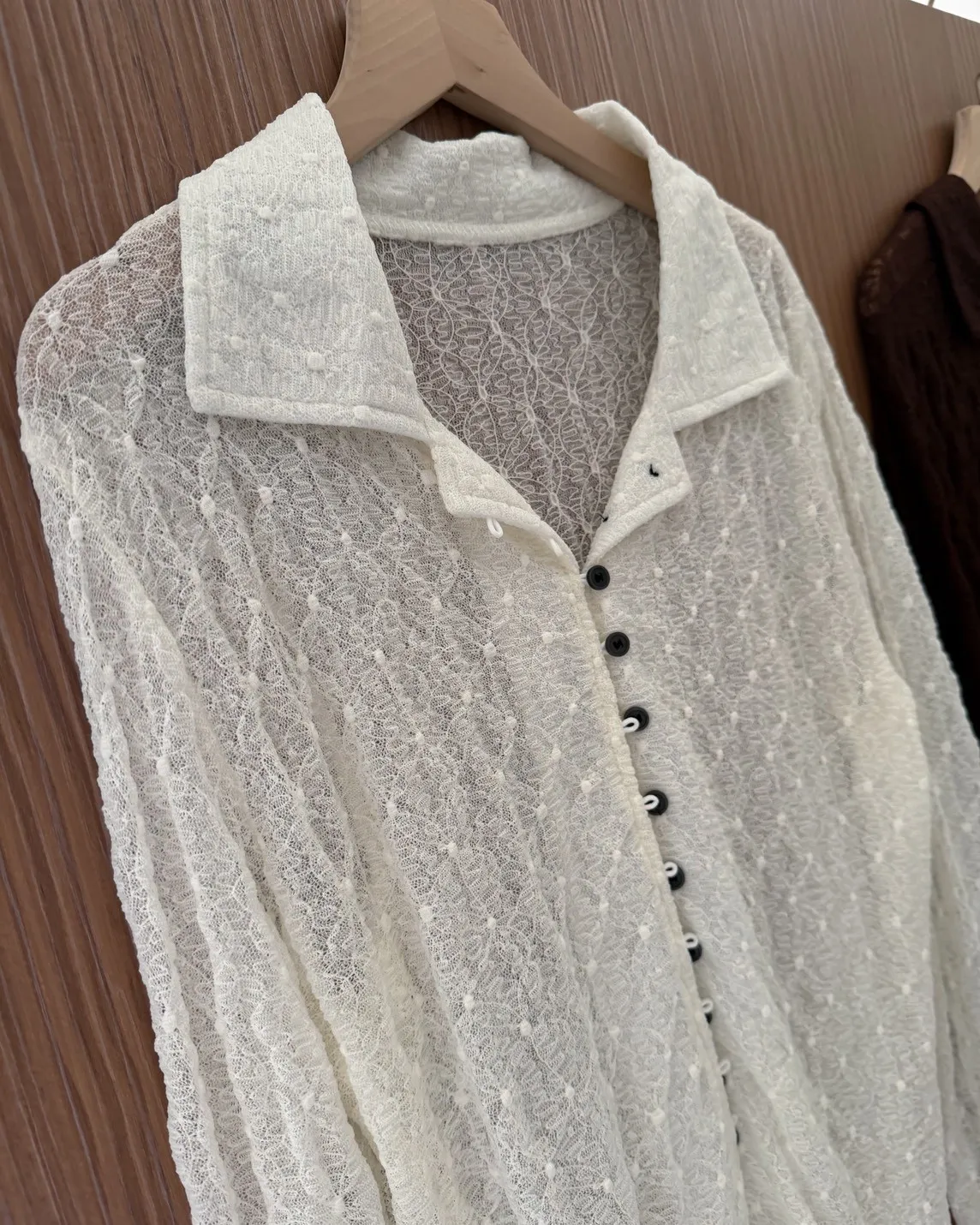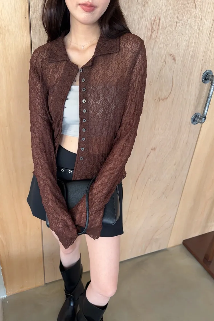 翻領 深色巧克力豆鈕扣(彈力繩非開孔) 花紋超級美!! 透膚