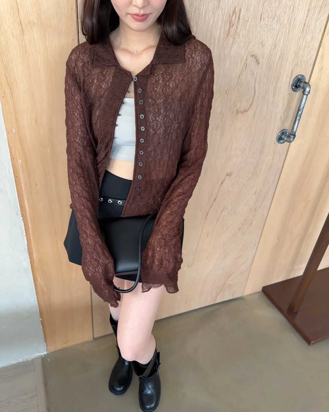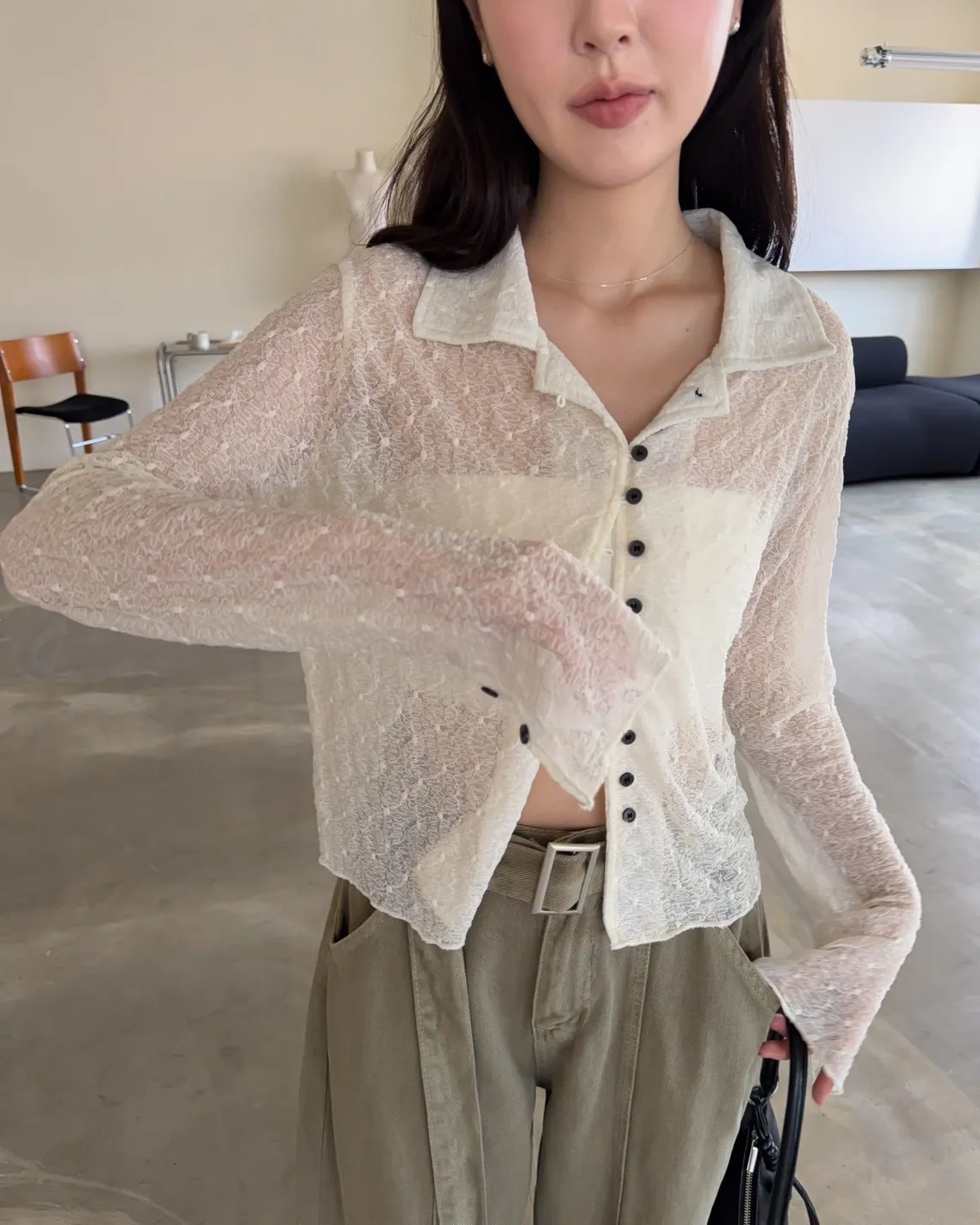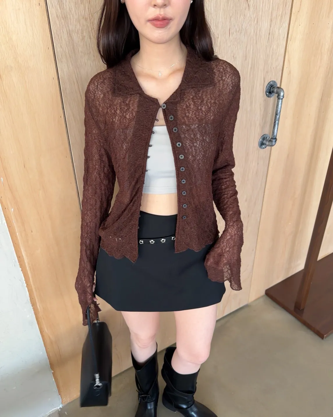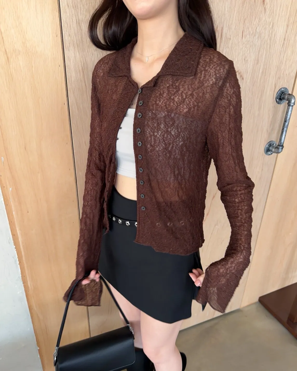 翻領 深色巧克力豆鈕扣(彈力繩非開孔) 花紋超級美!! 透膚