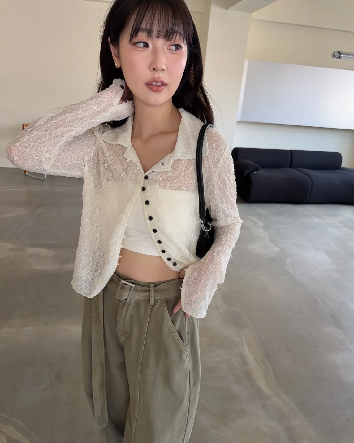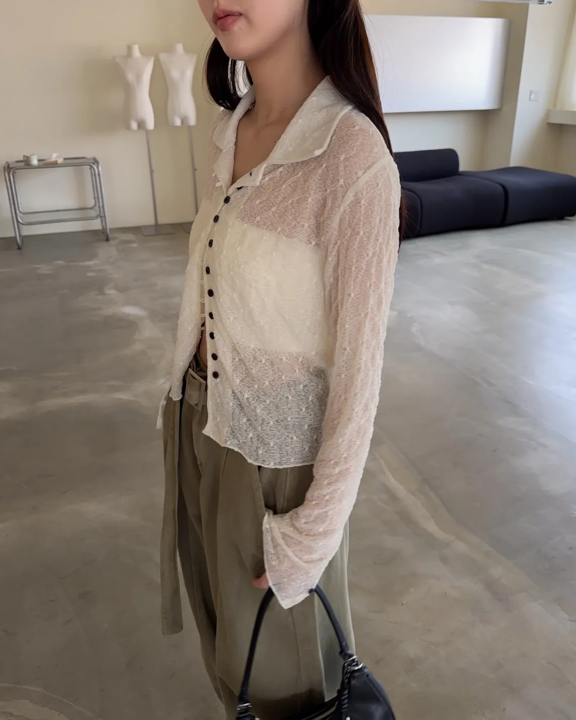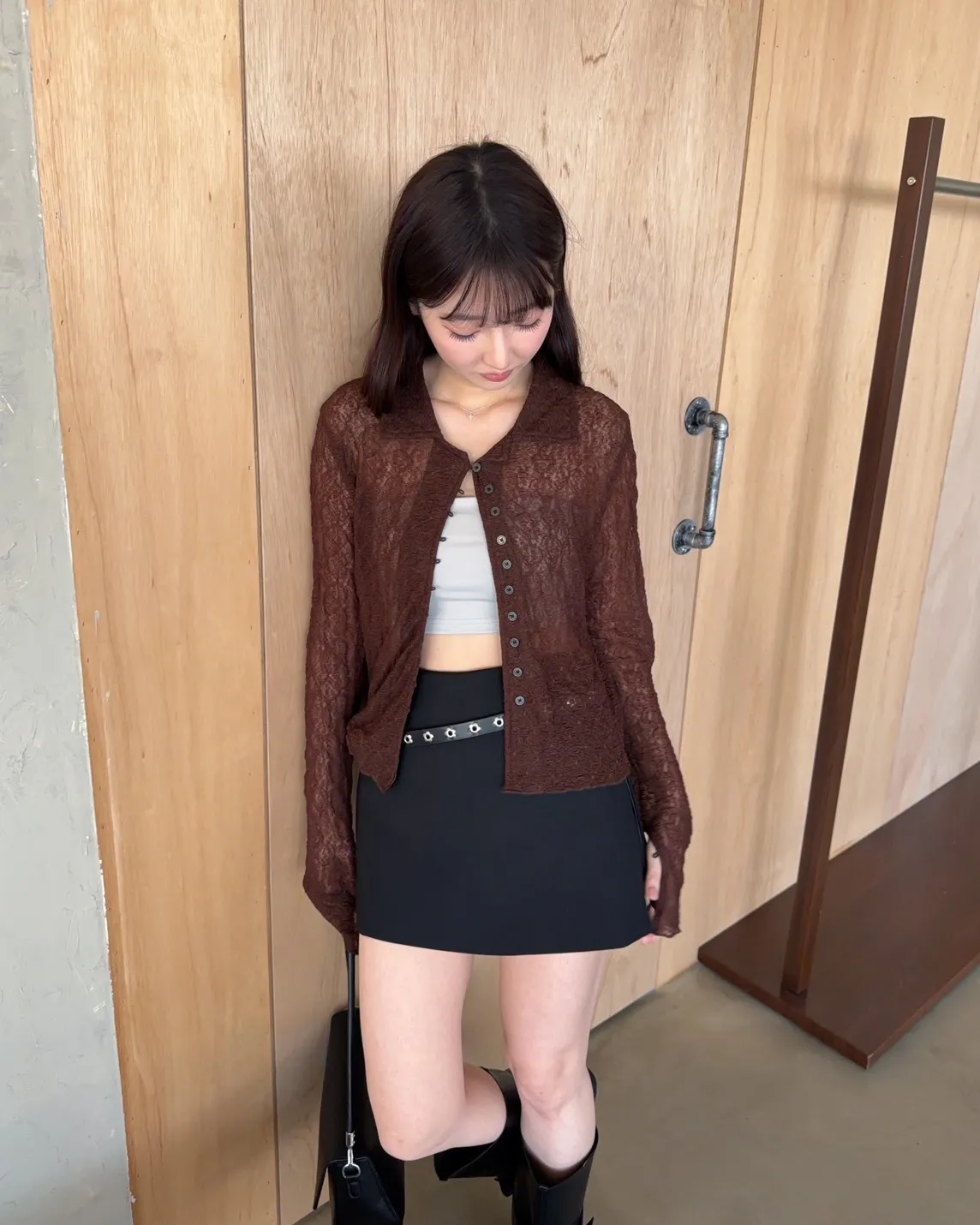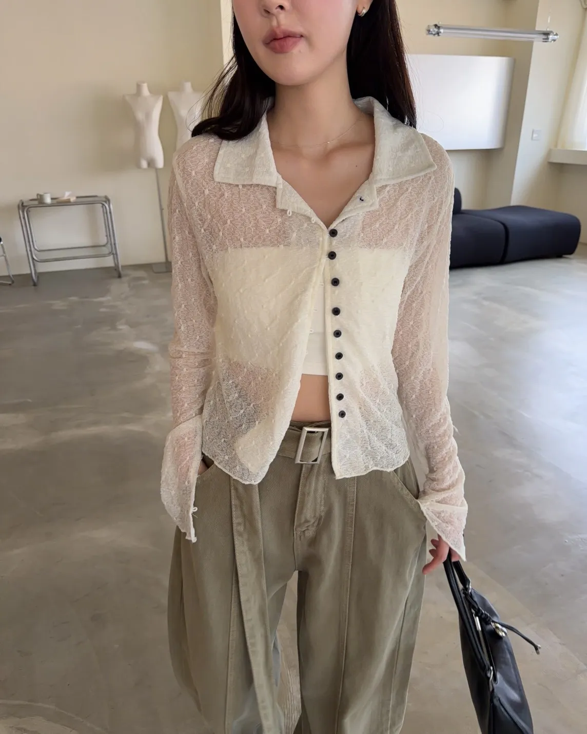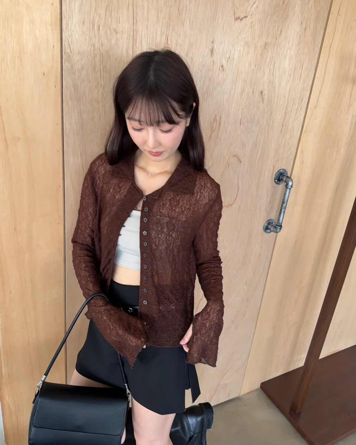 翻領 深色巧克力豆鈕扣(彈力繩非開孔) 花紋超級美!! 透膚