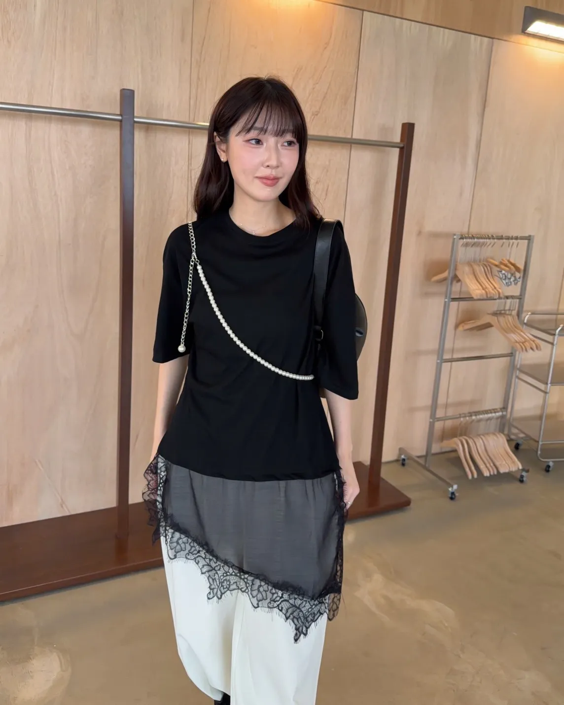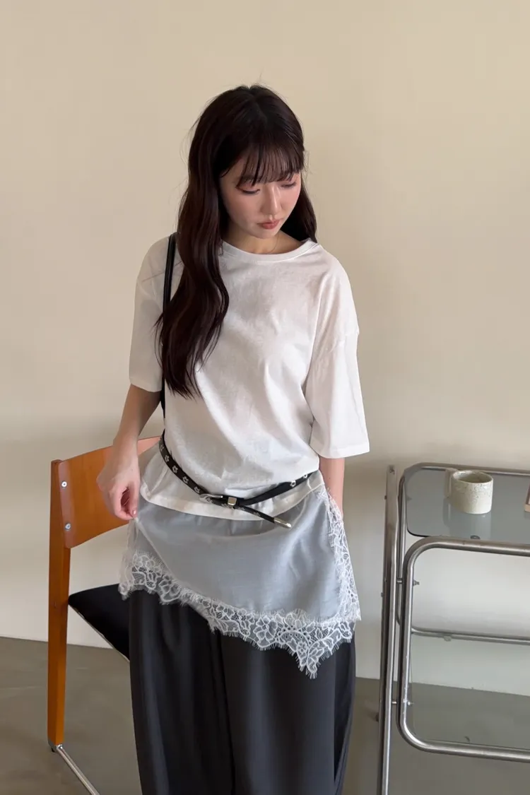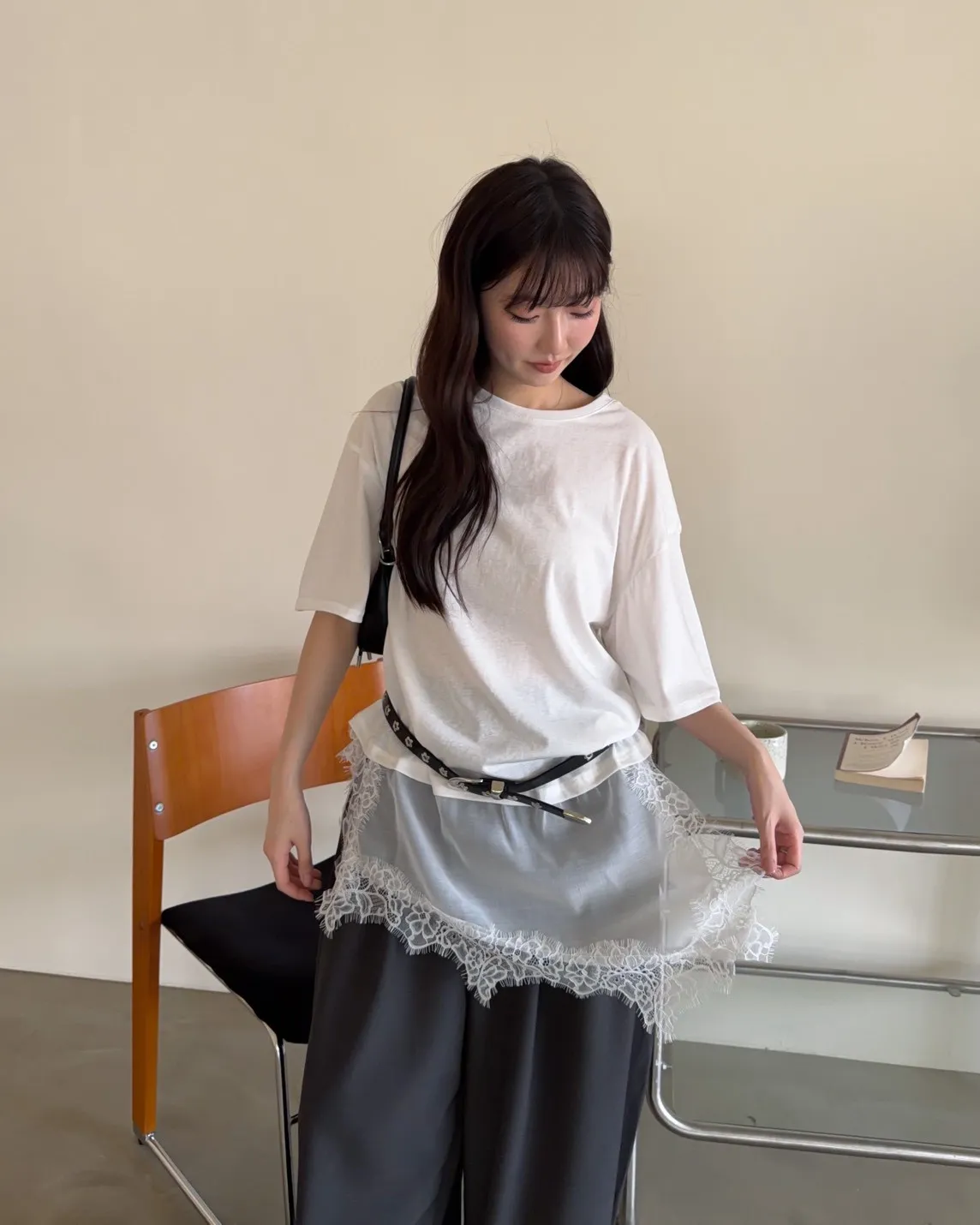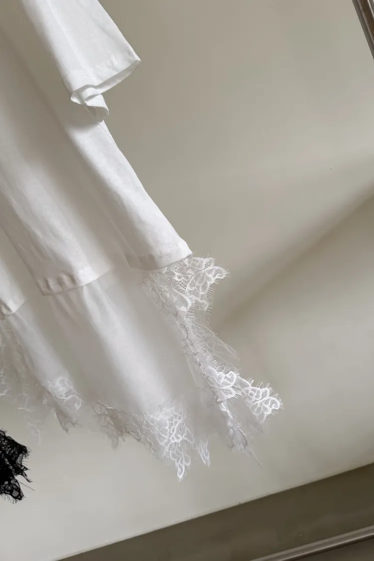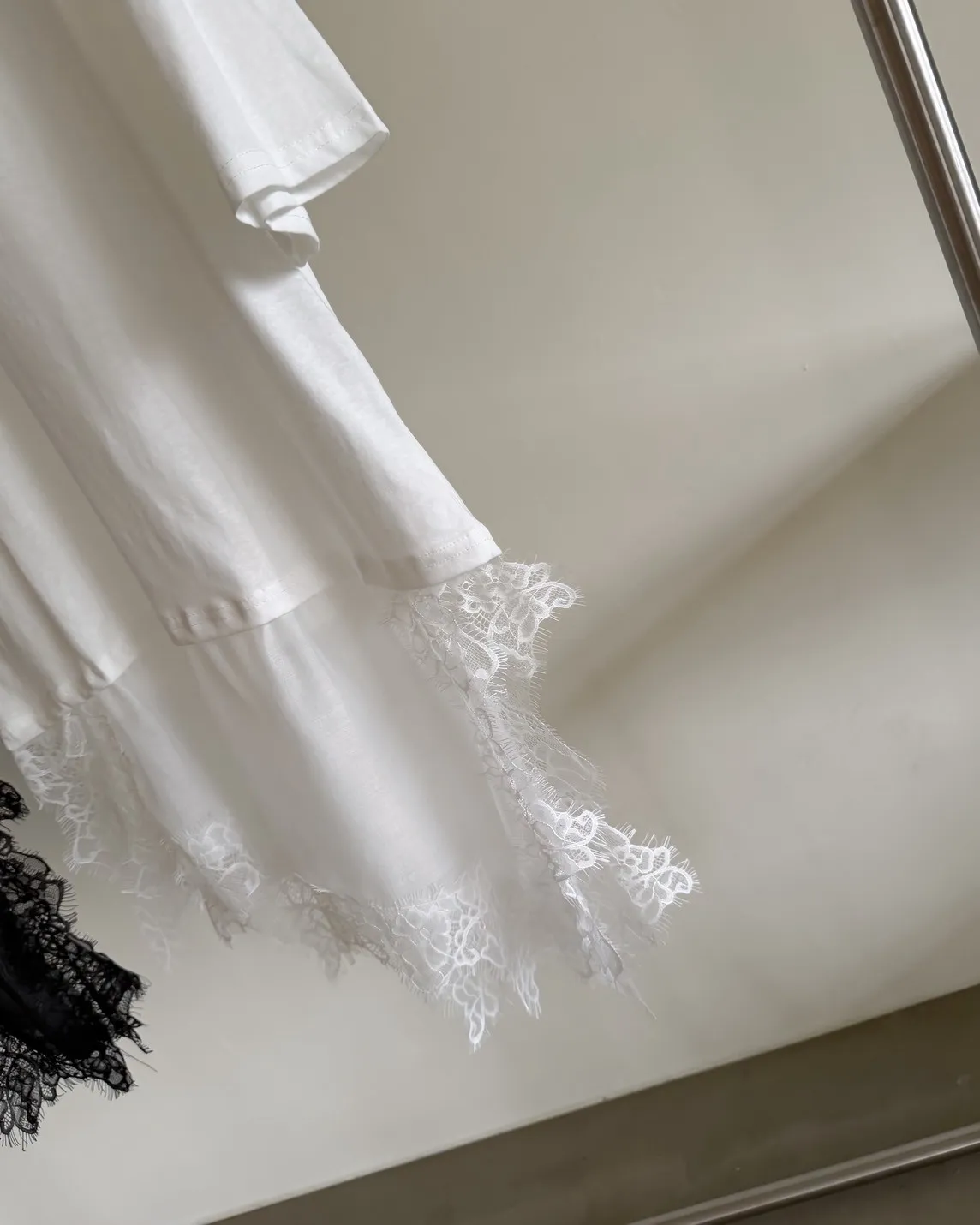 不規則蕾絲下擺 寬鬆落肩 薄棉料