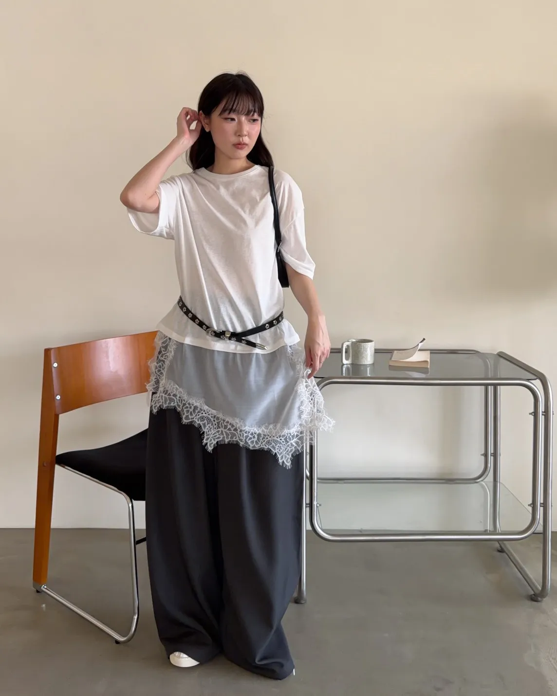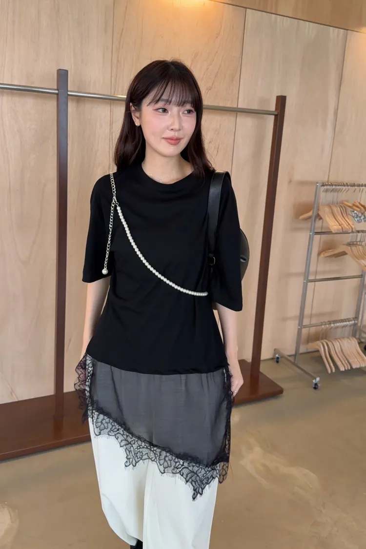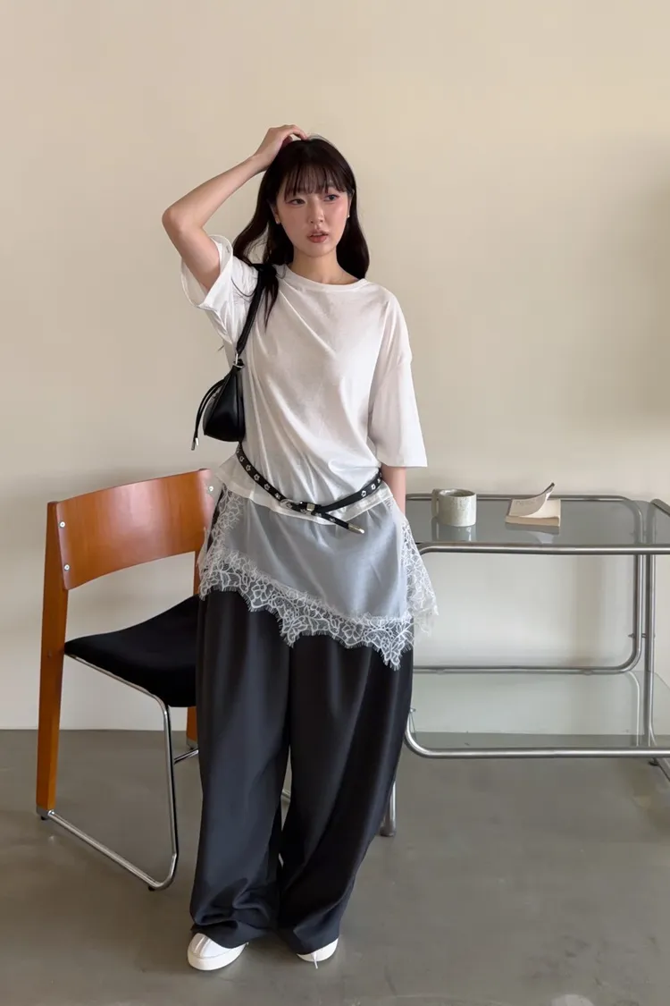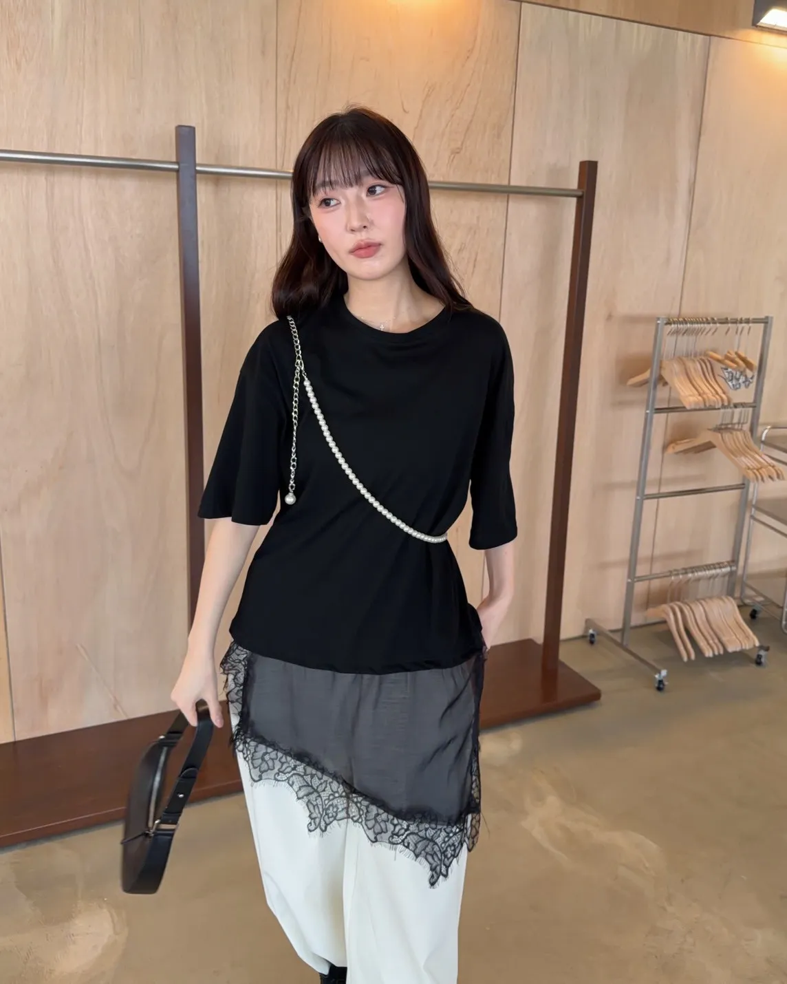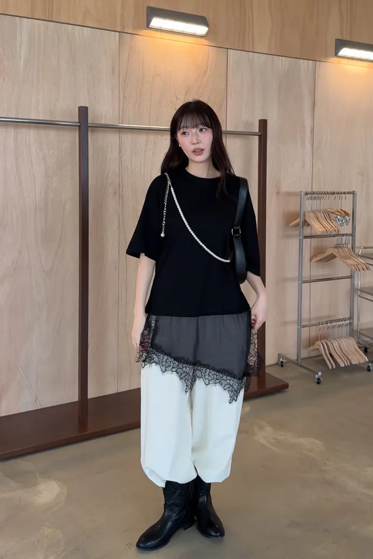 不規則蕾絲下擺 寬鬆落肩 薄棉料