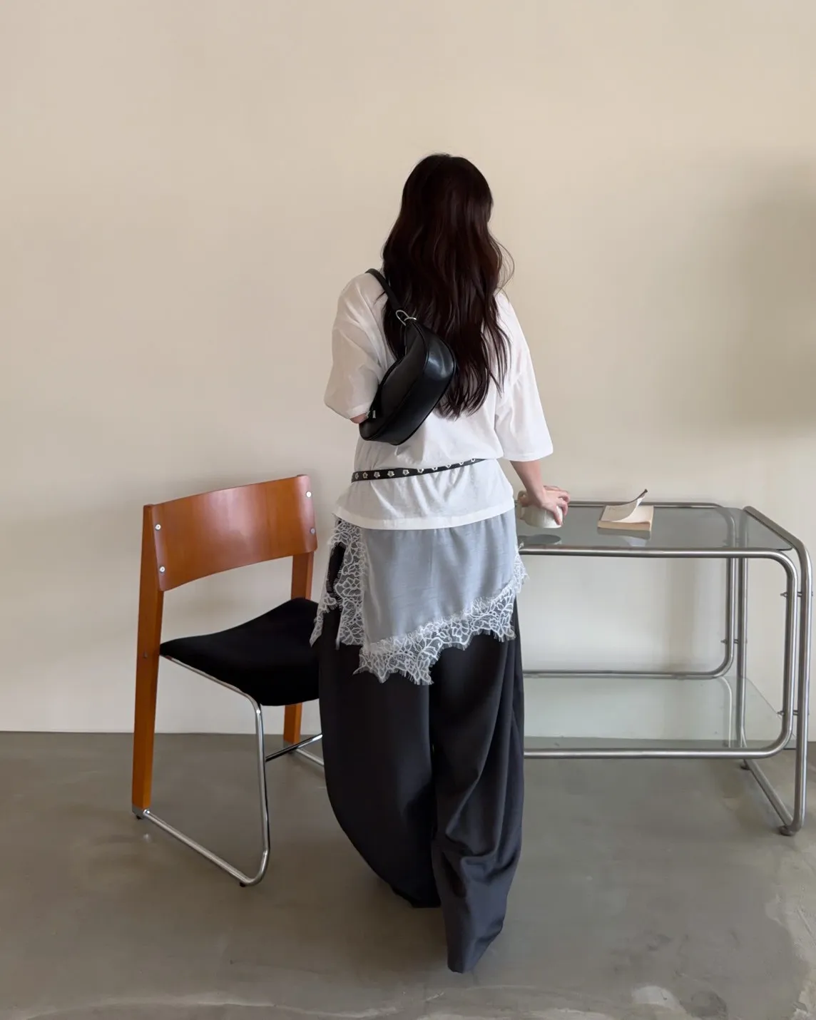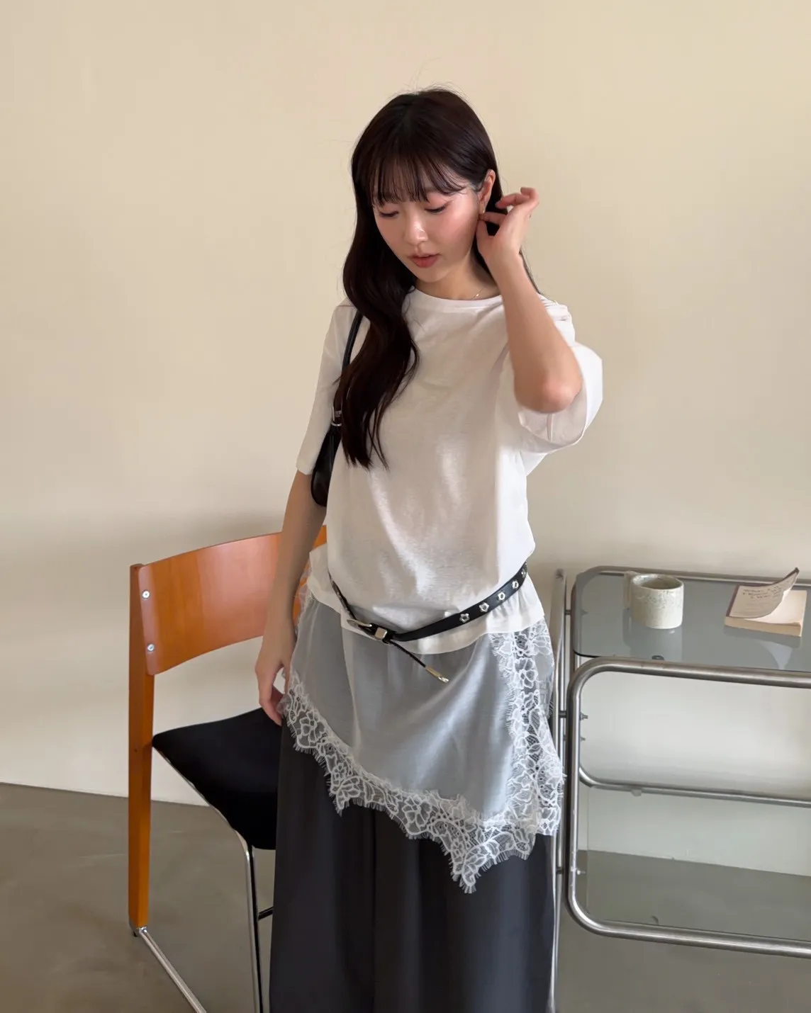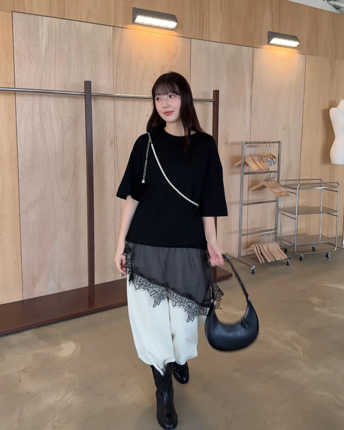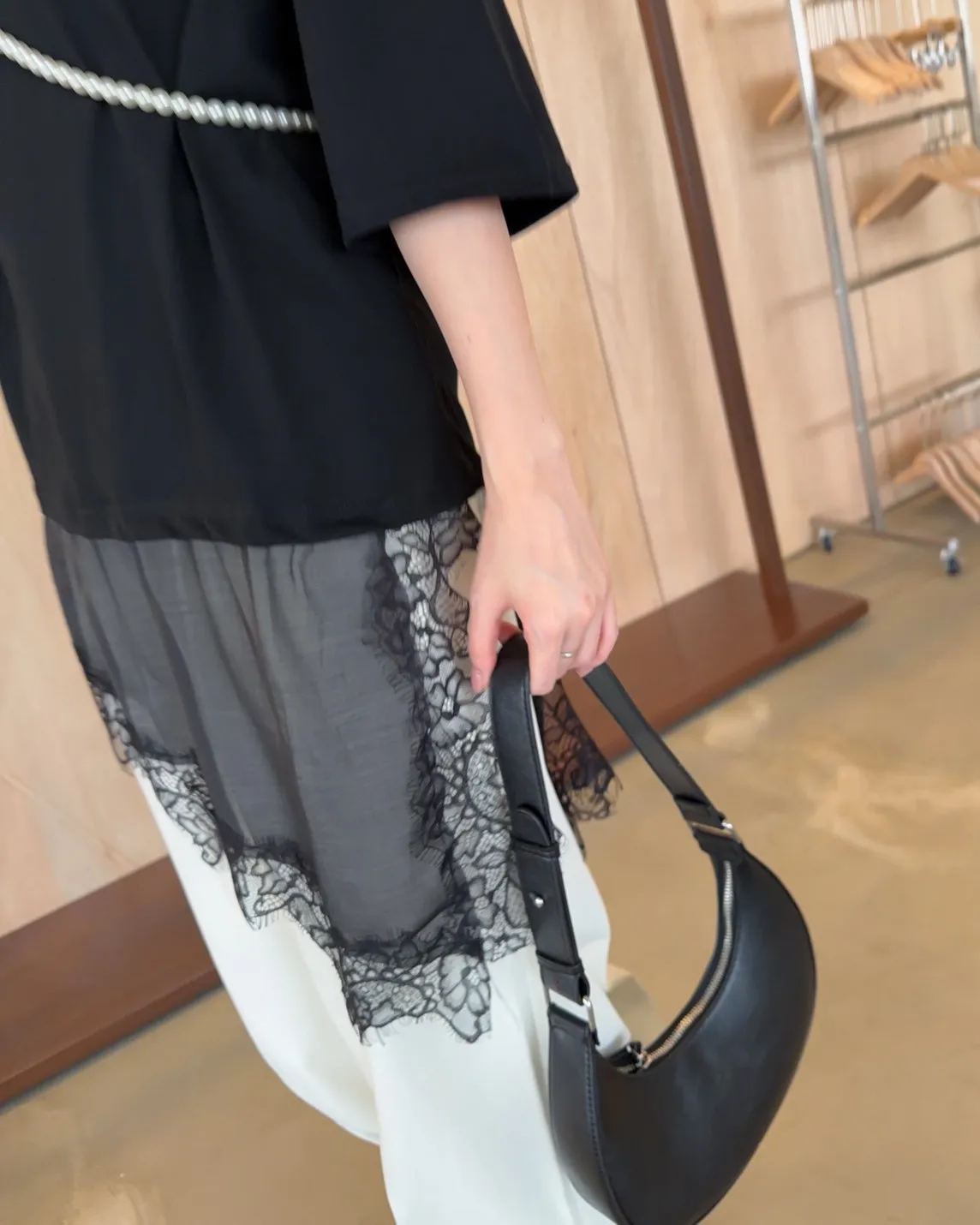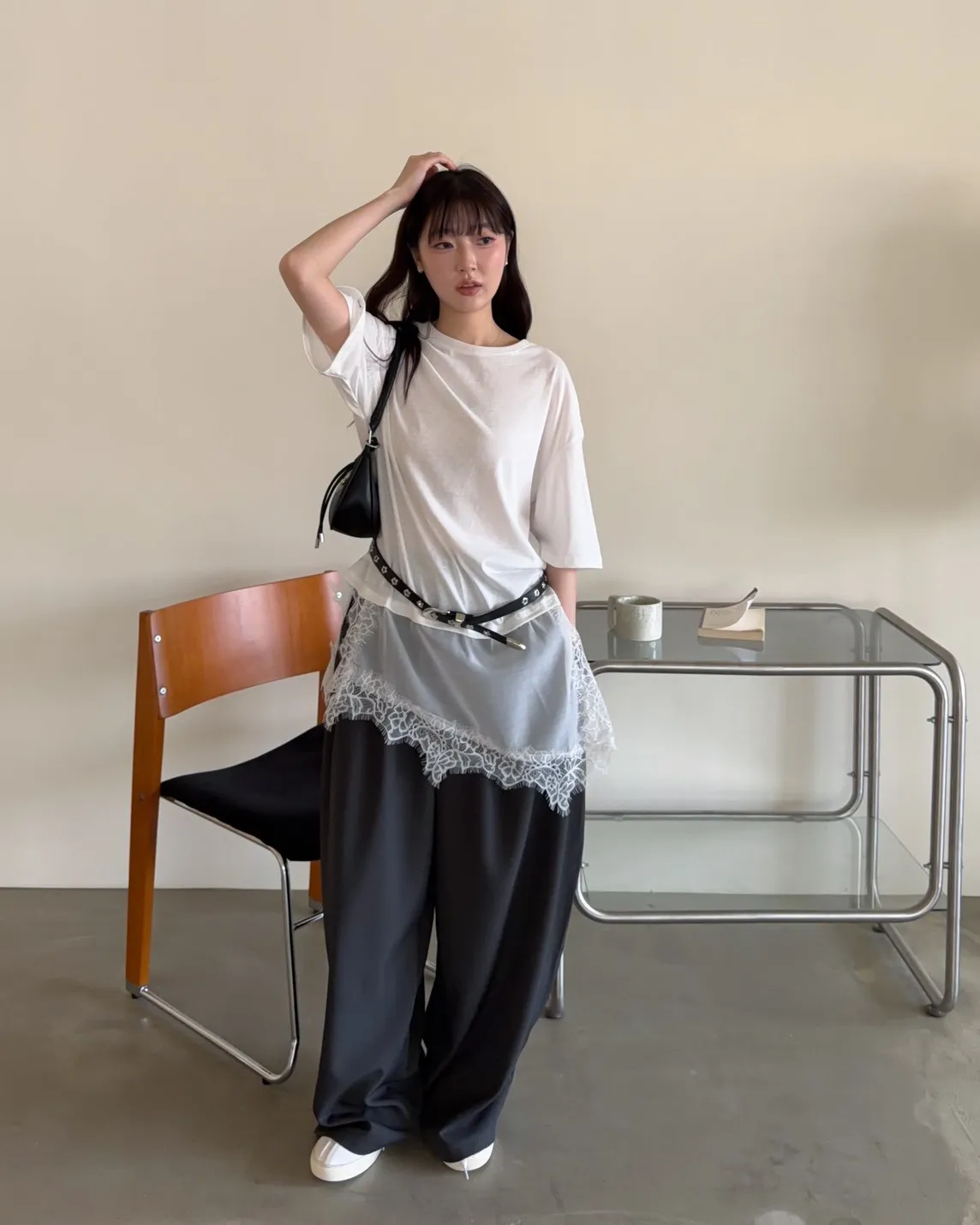 不規則蕾絲下擺 寬鬆落肩 薄棉料
