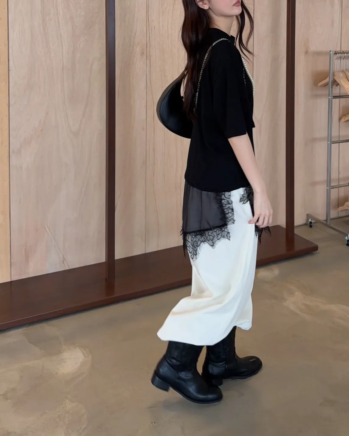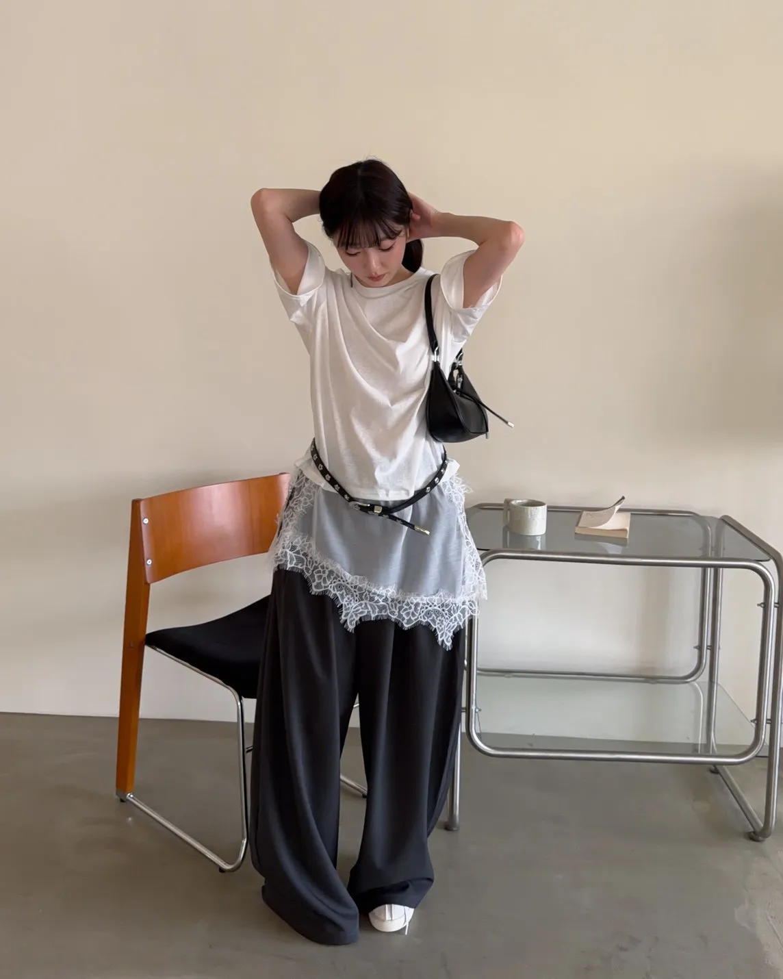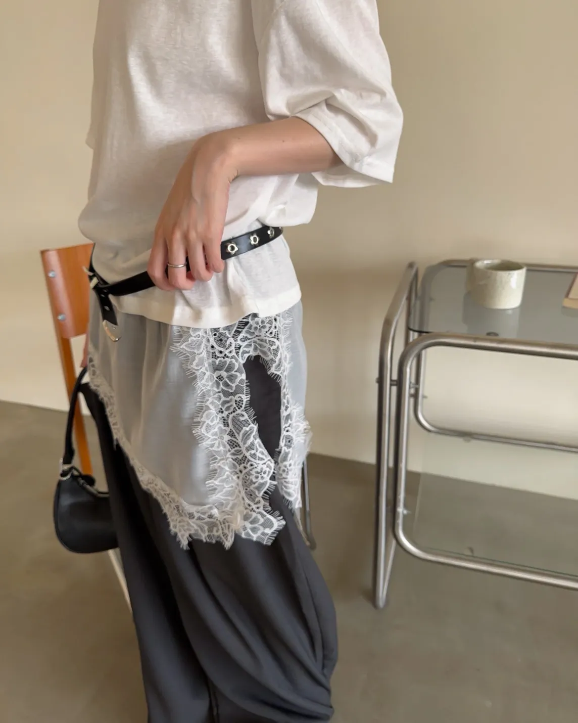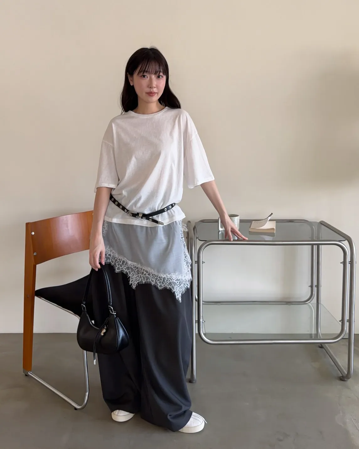 不規則蕾絲下擺 寬鬆落肩 薄棉料