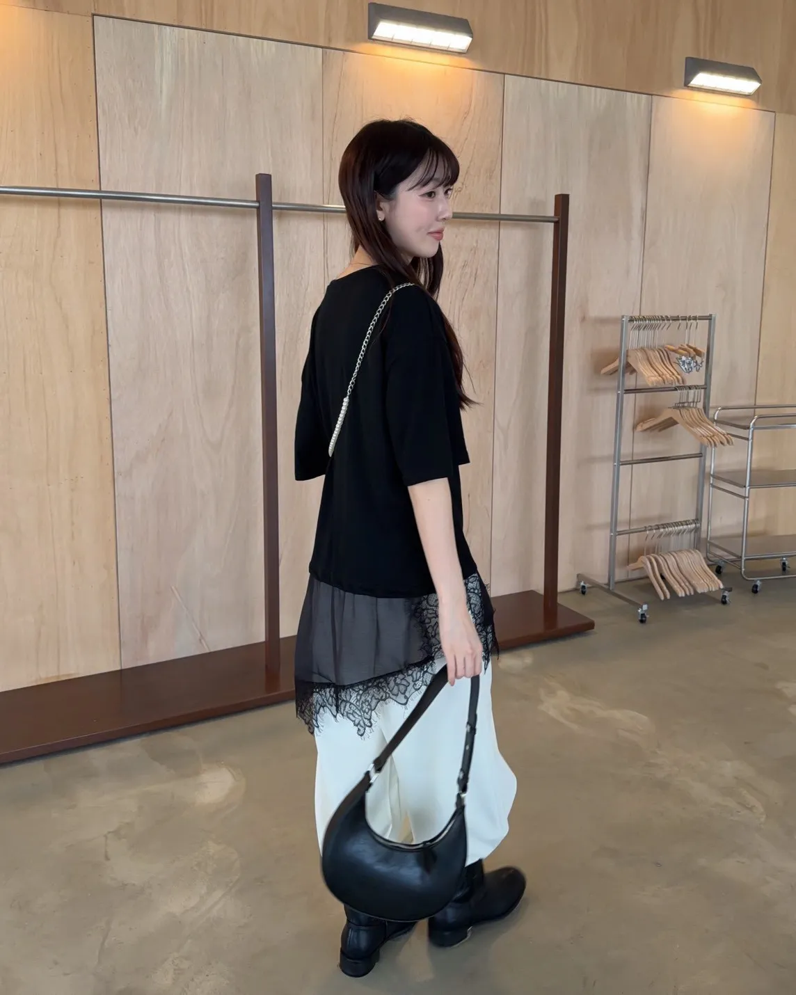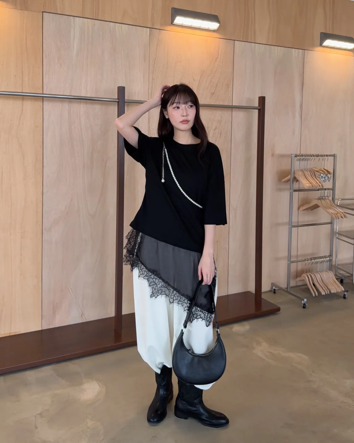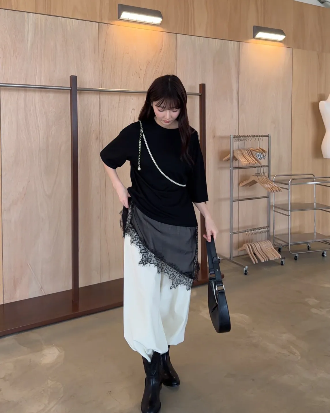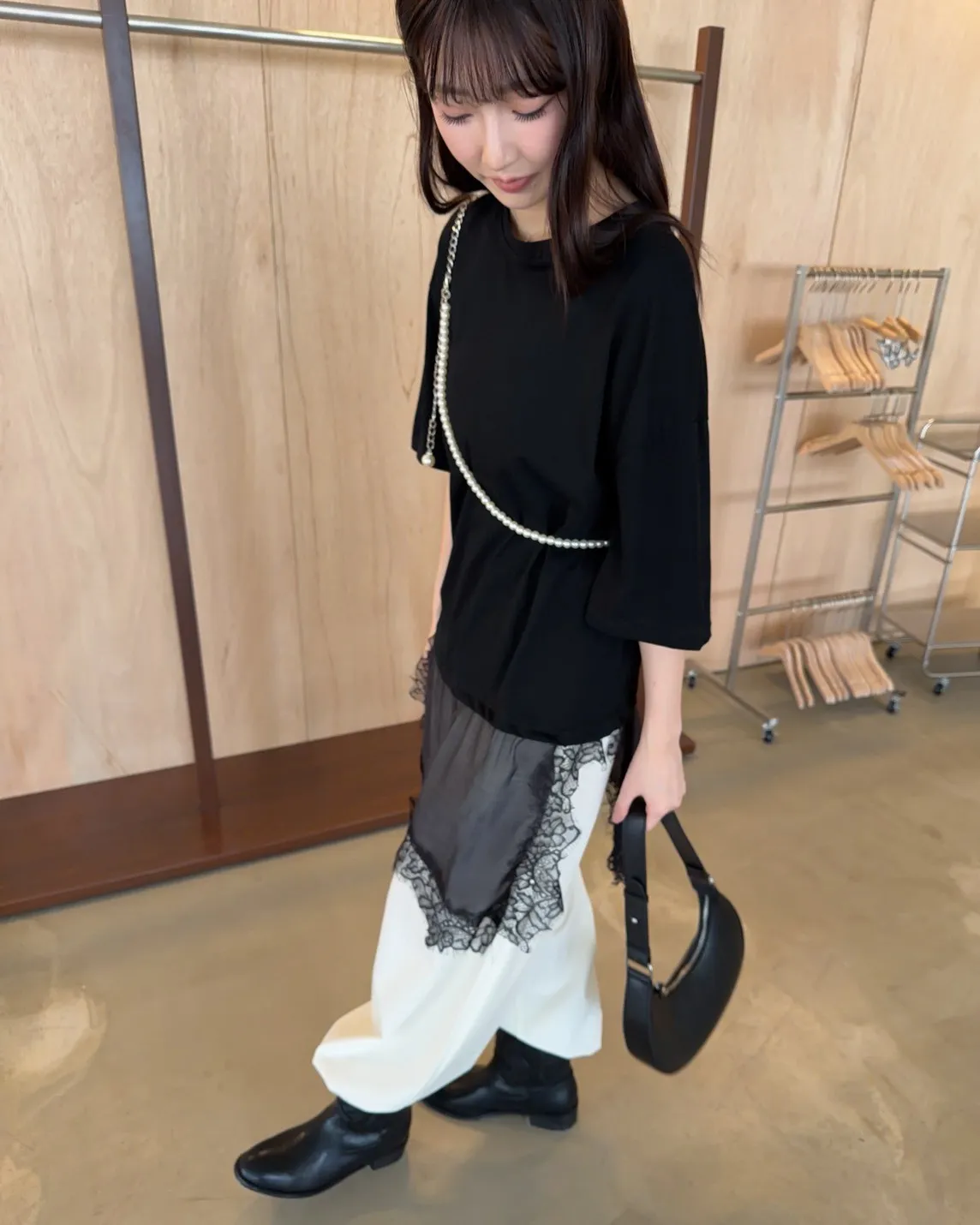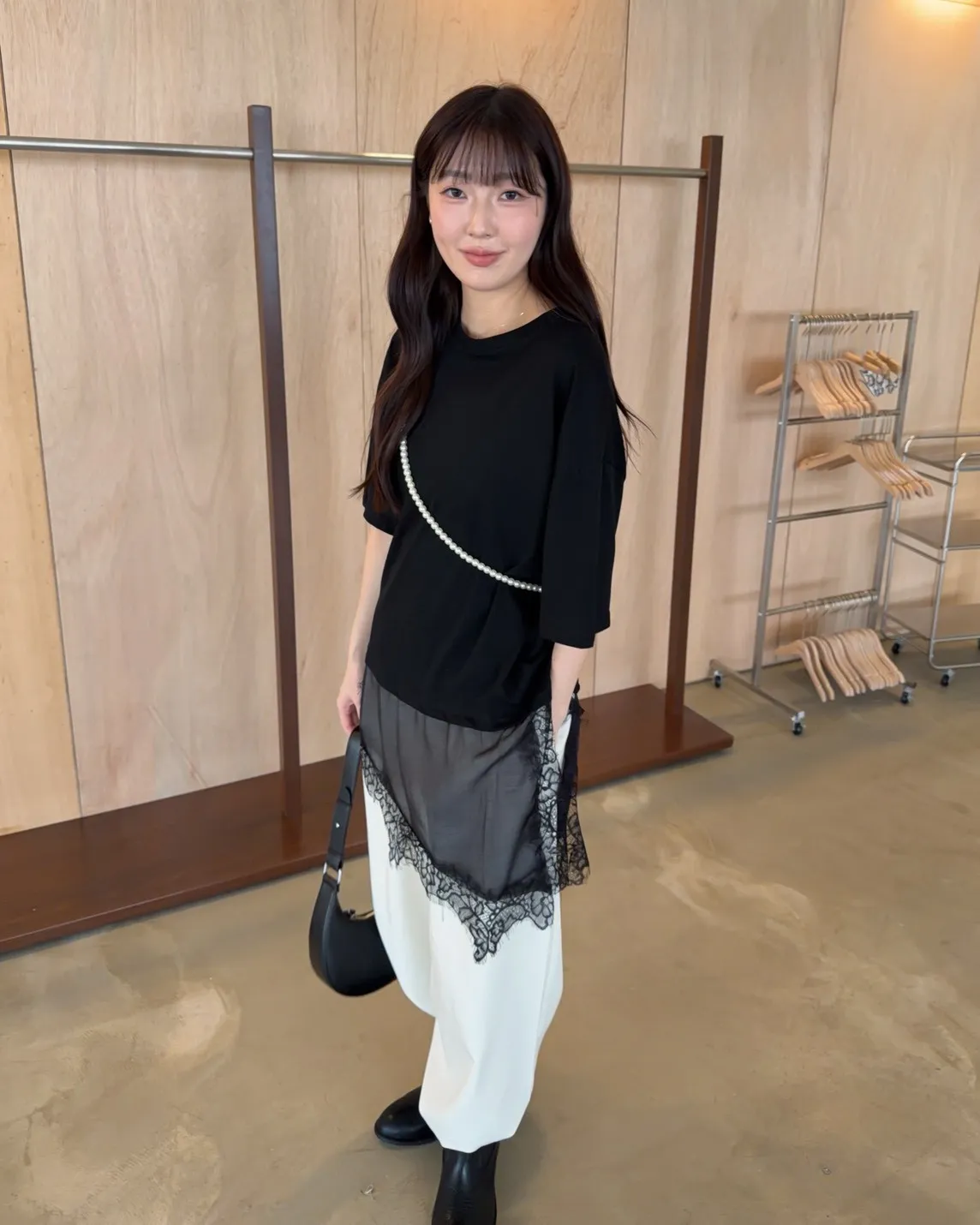 不規則蕾絲下擺 寬鬆落肩 薄棉料