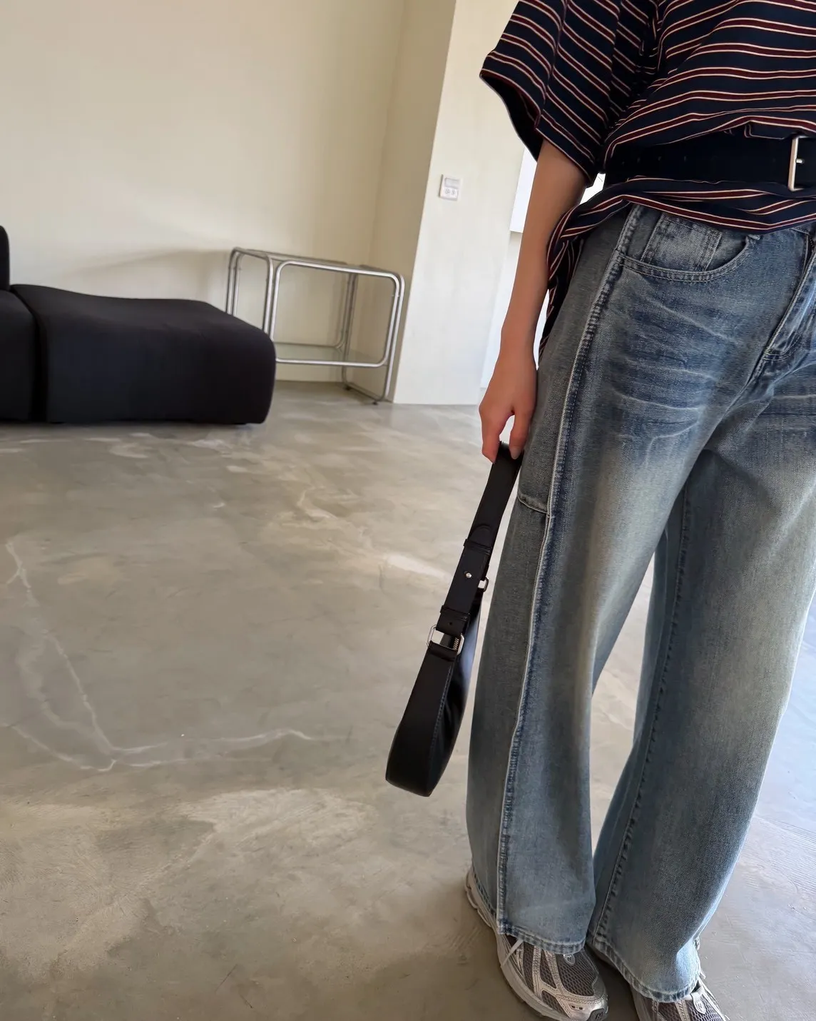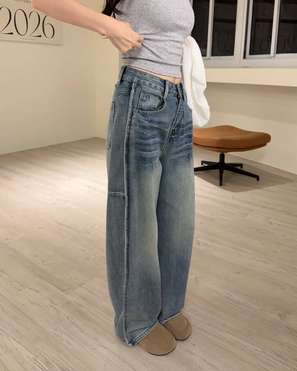 版型正常 兩側口袋 特殊刷色 側邊立體摺線 布料本身無彈性