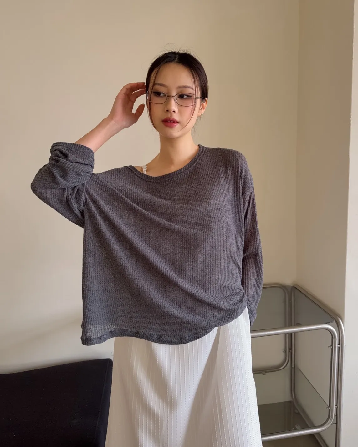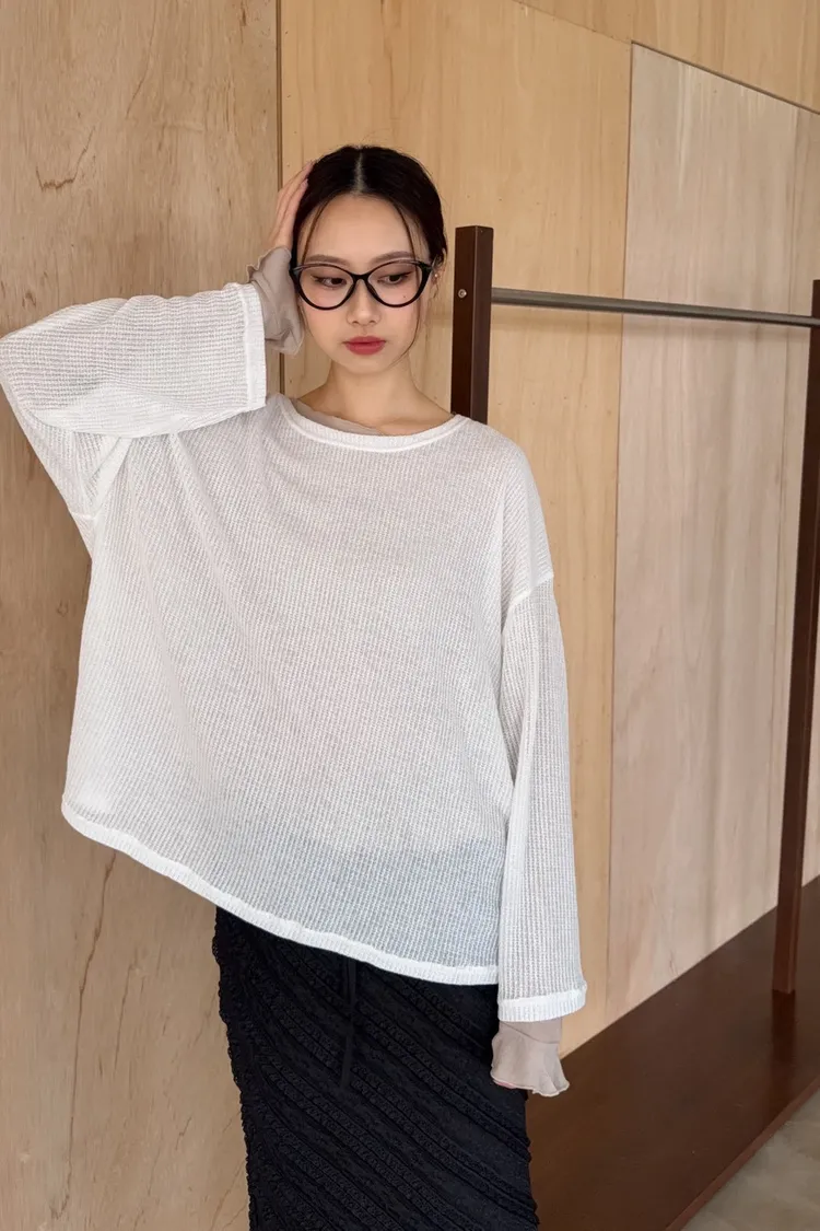 A0009寬版微透膚針織上衣(白/深灰/黑)