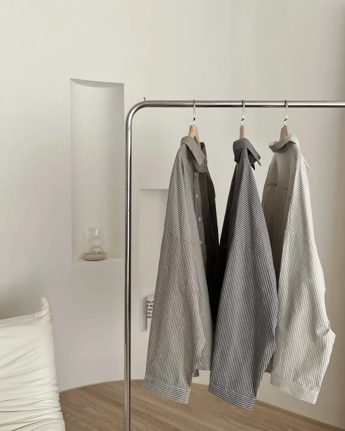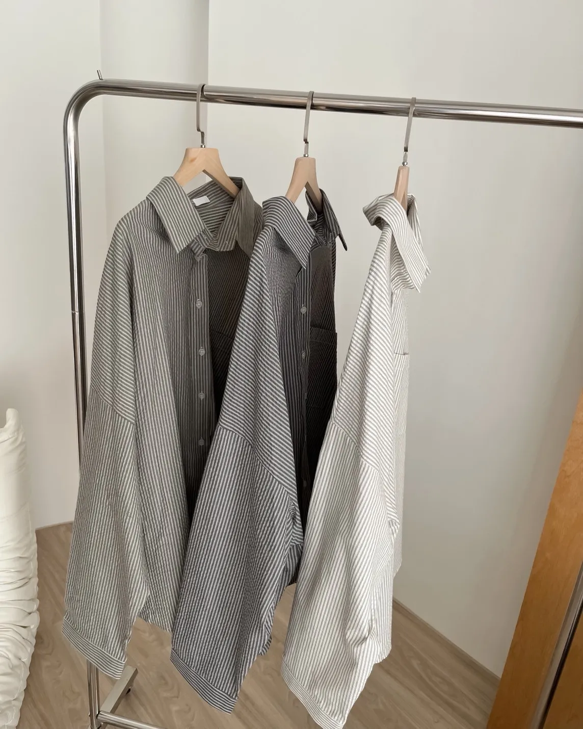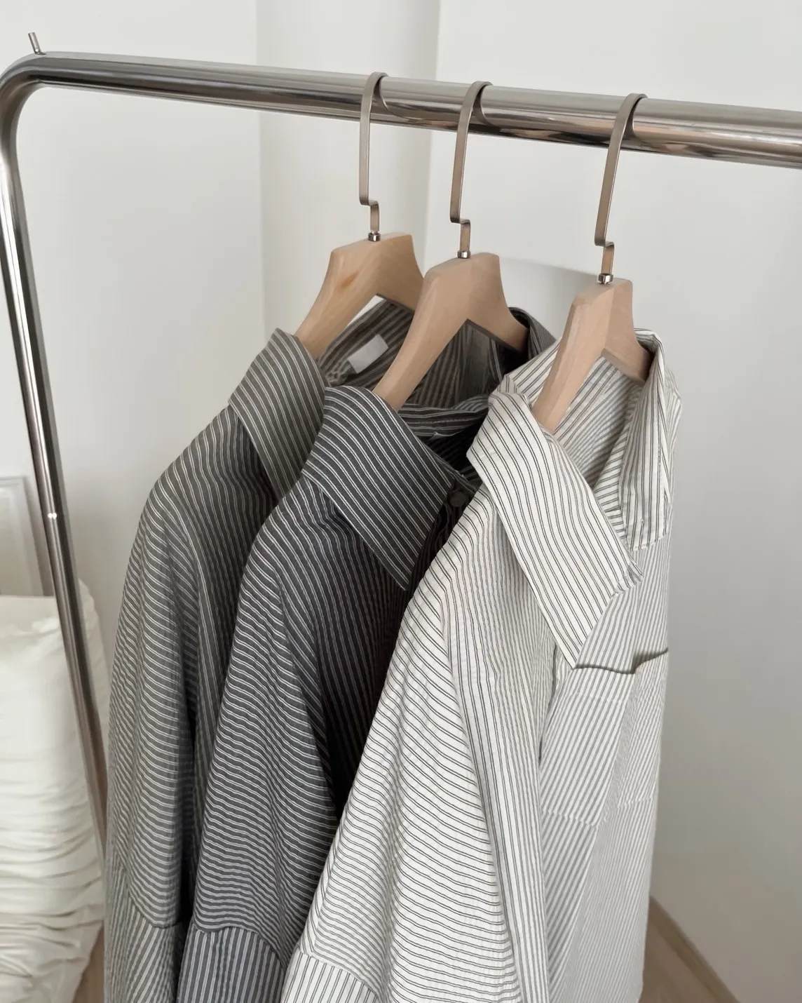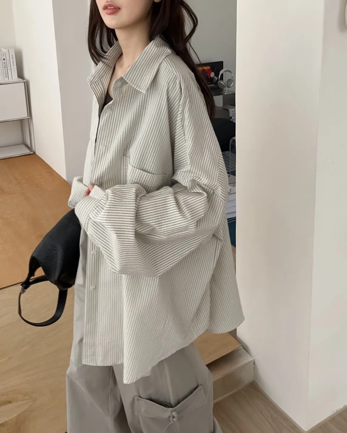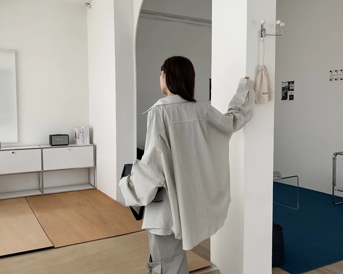 U0019青青草原直紋棉麻襯衫(米白/綠/灰)