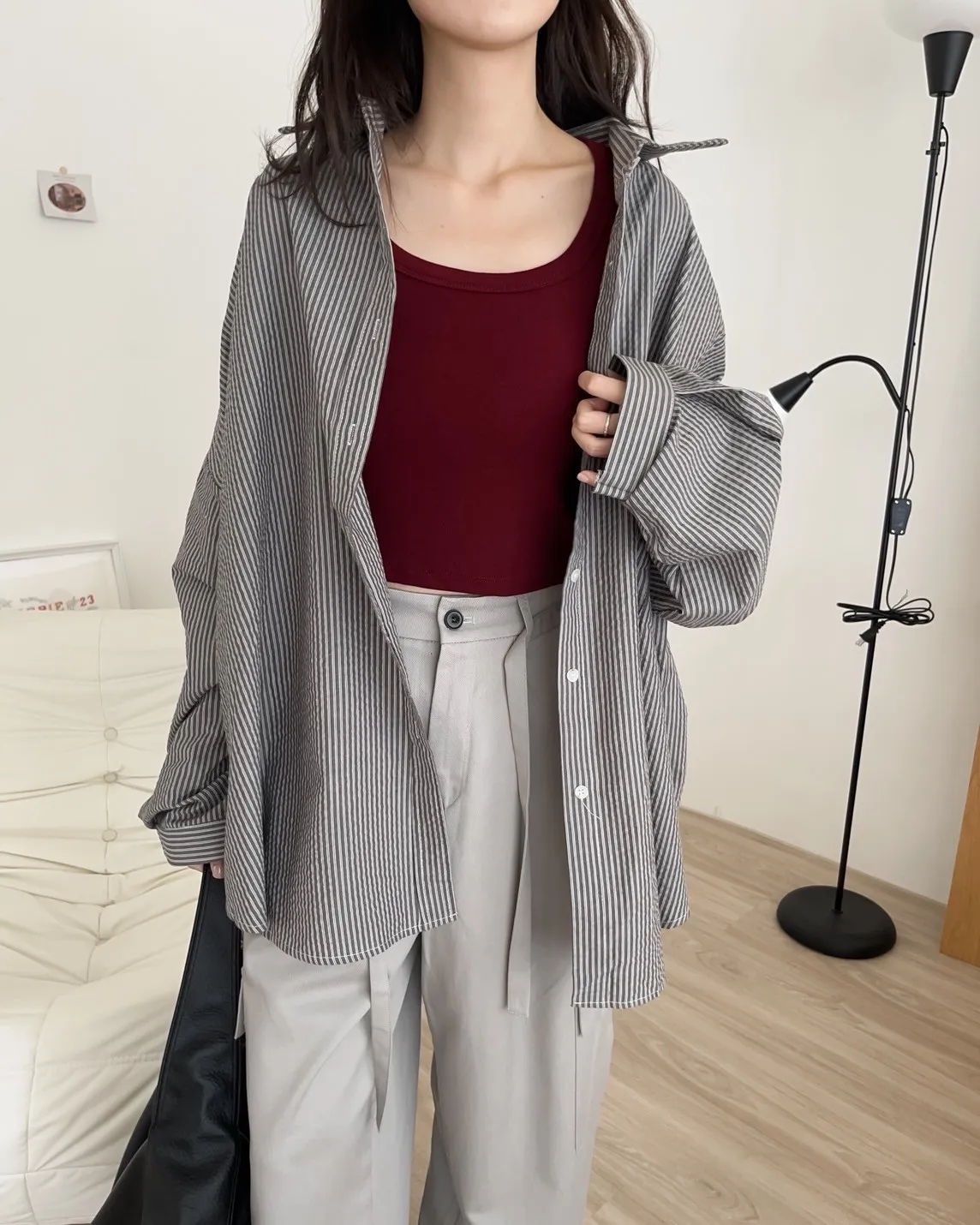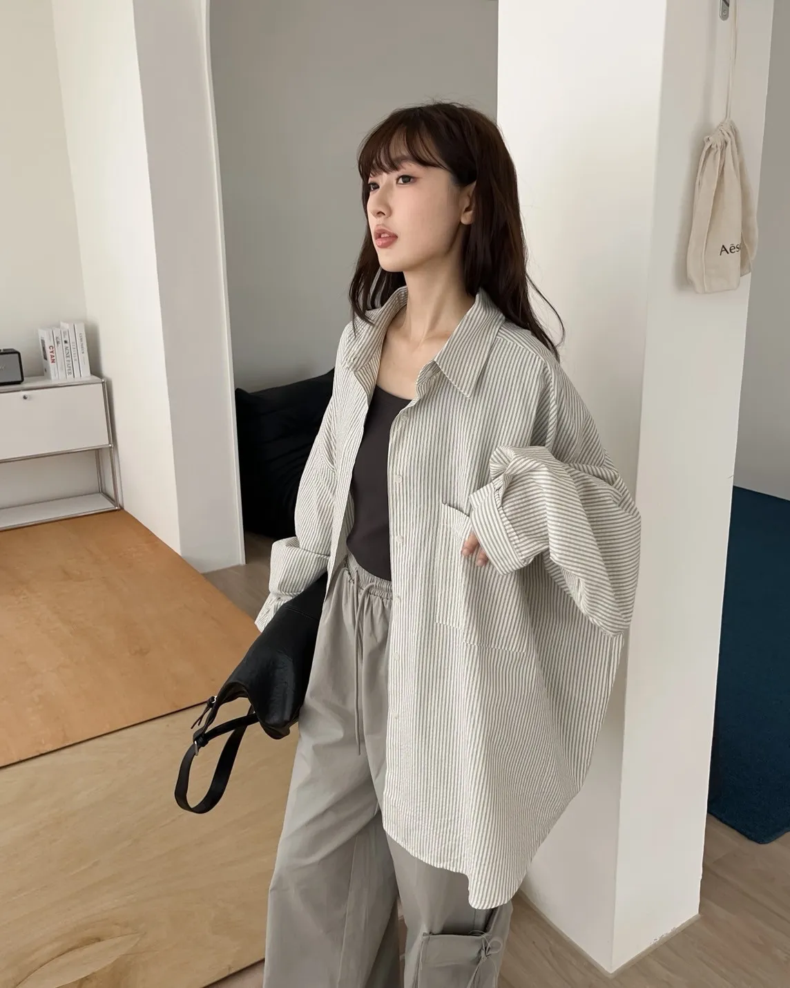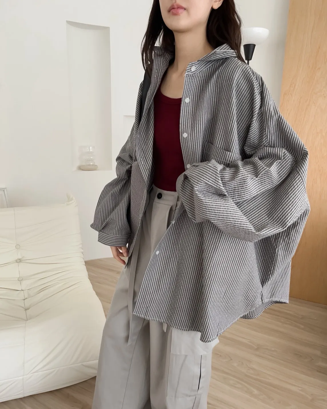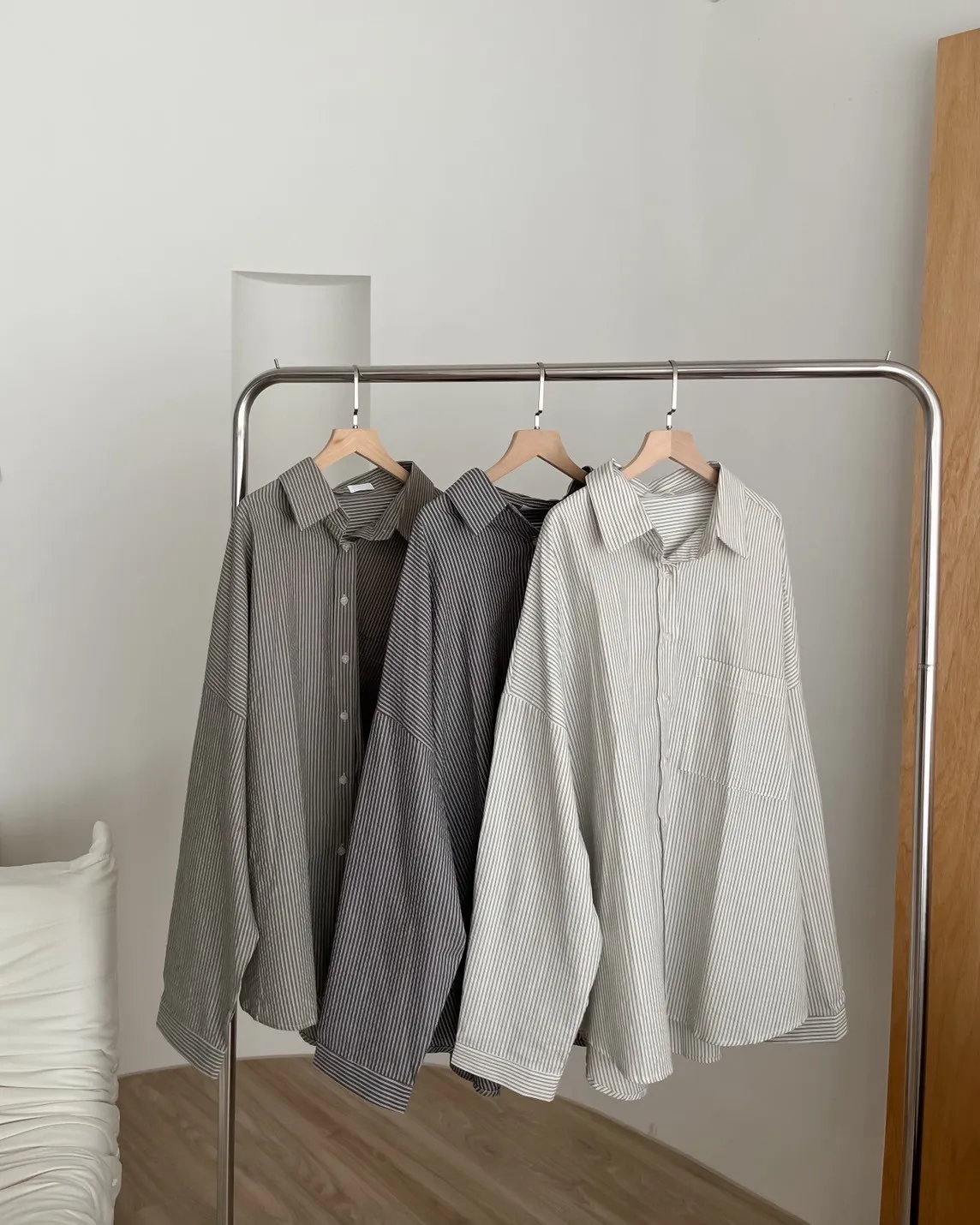 U0019青青草原直紋棉麻襯衫(米白/綠/灰)