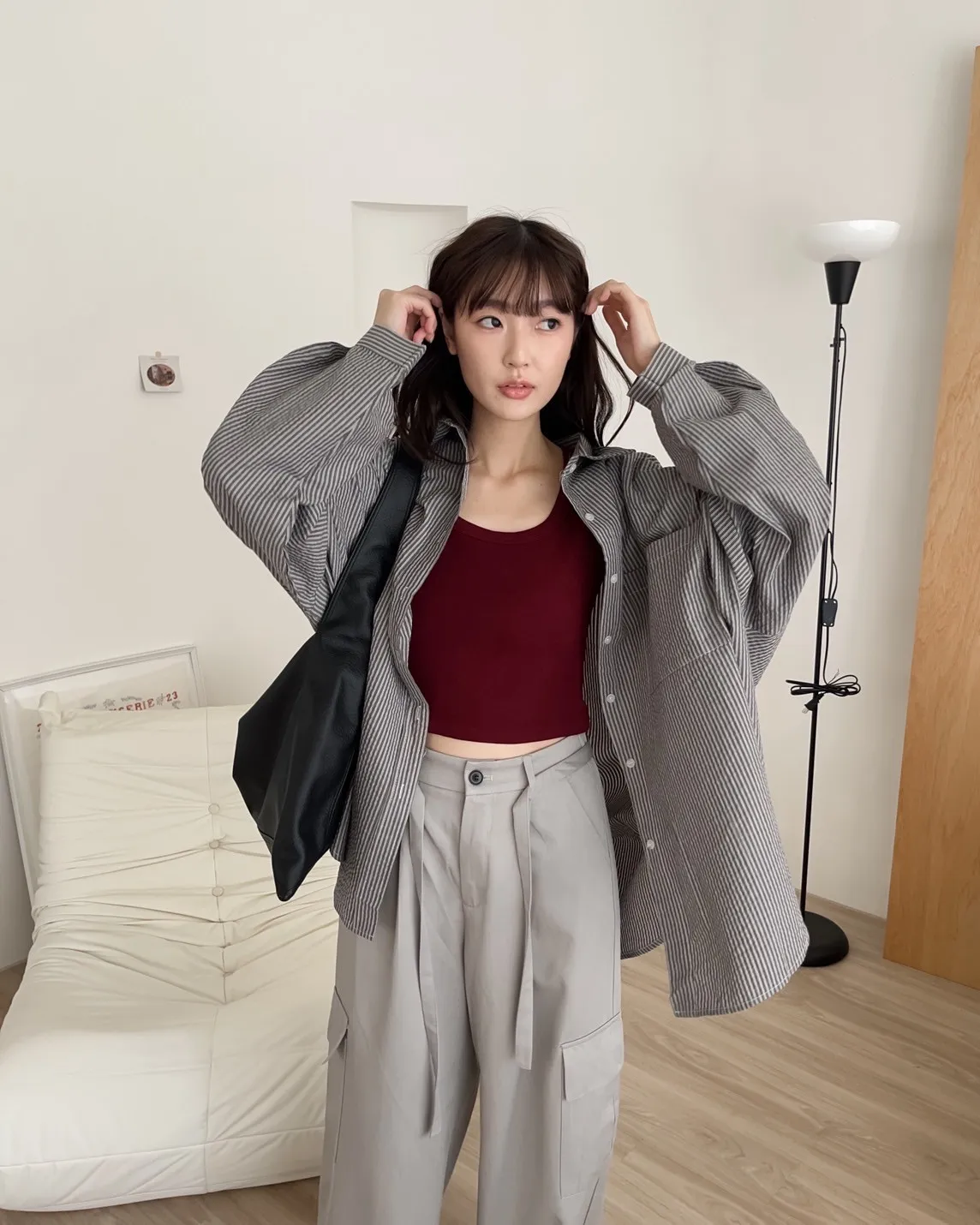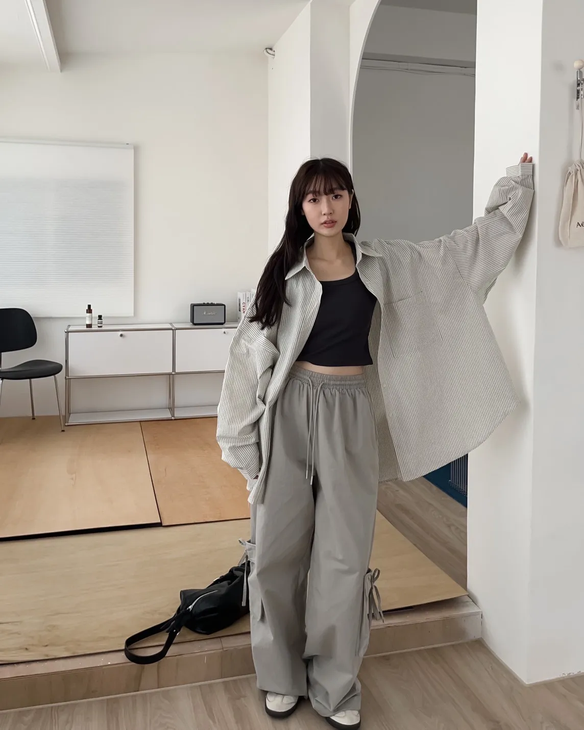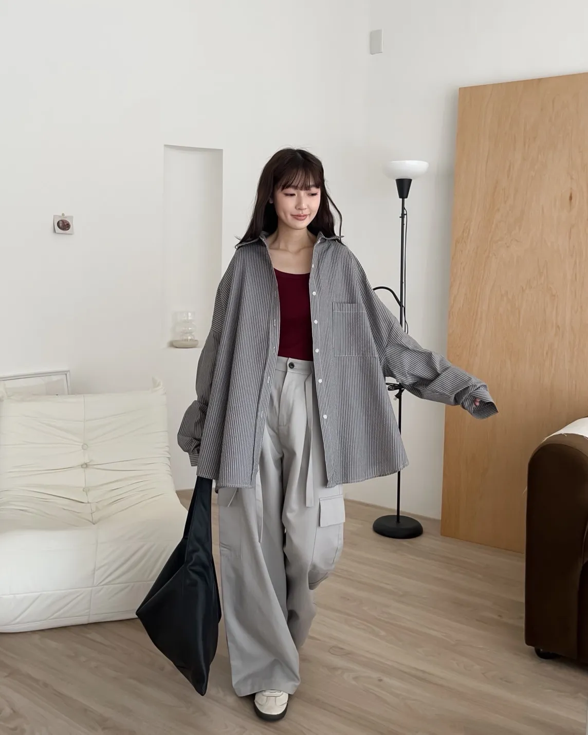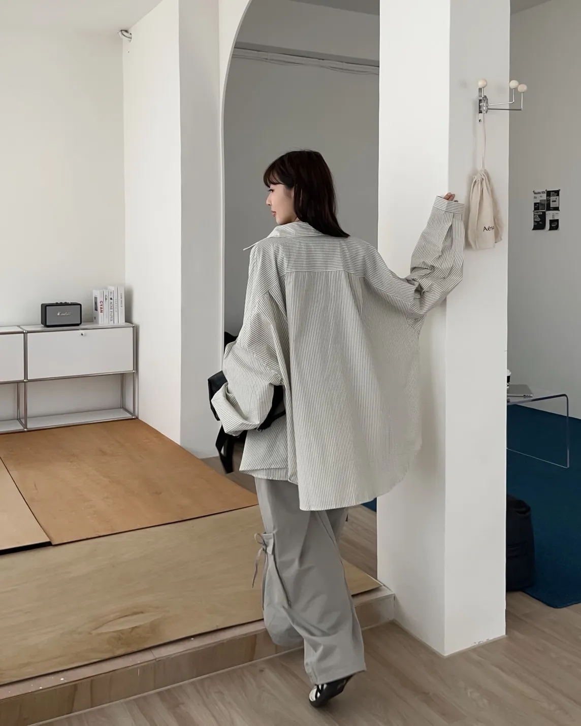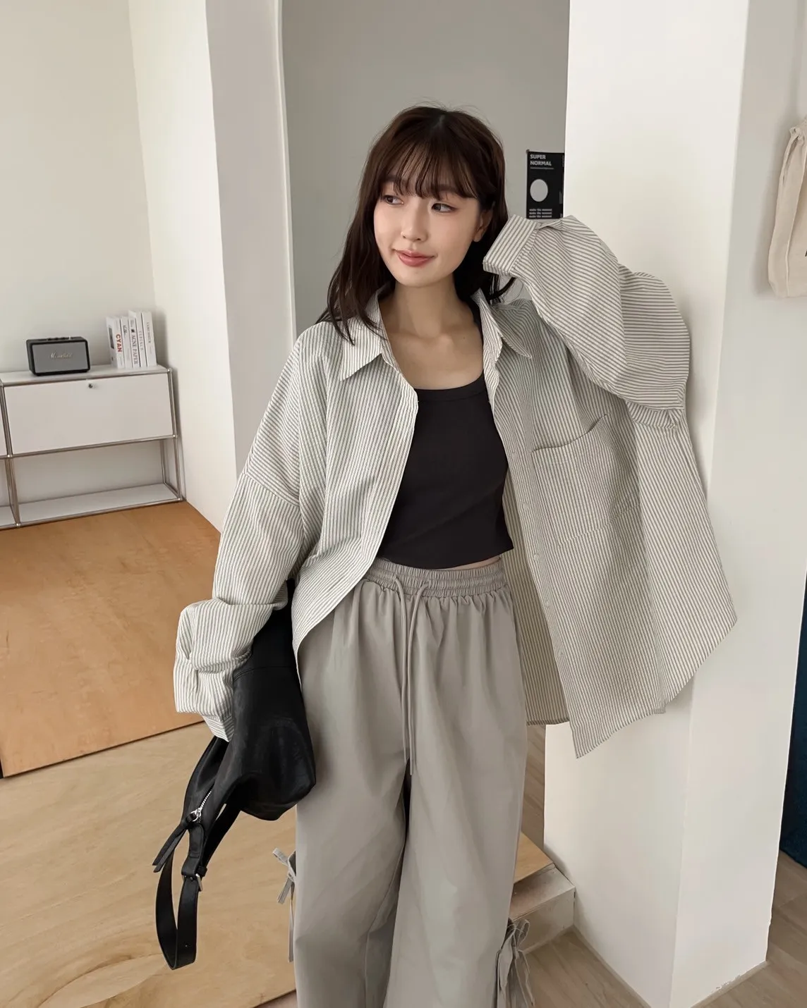 U0019青青草原直紋棉麻襯衫(米白/綠/灰)