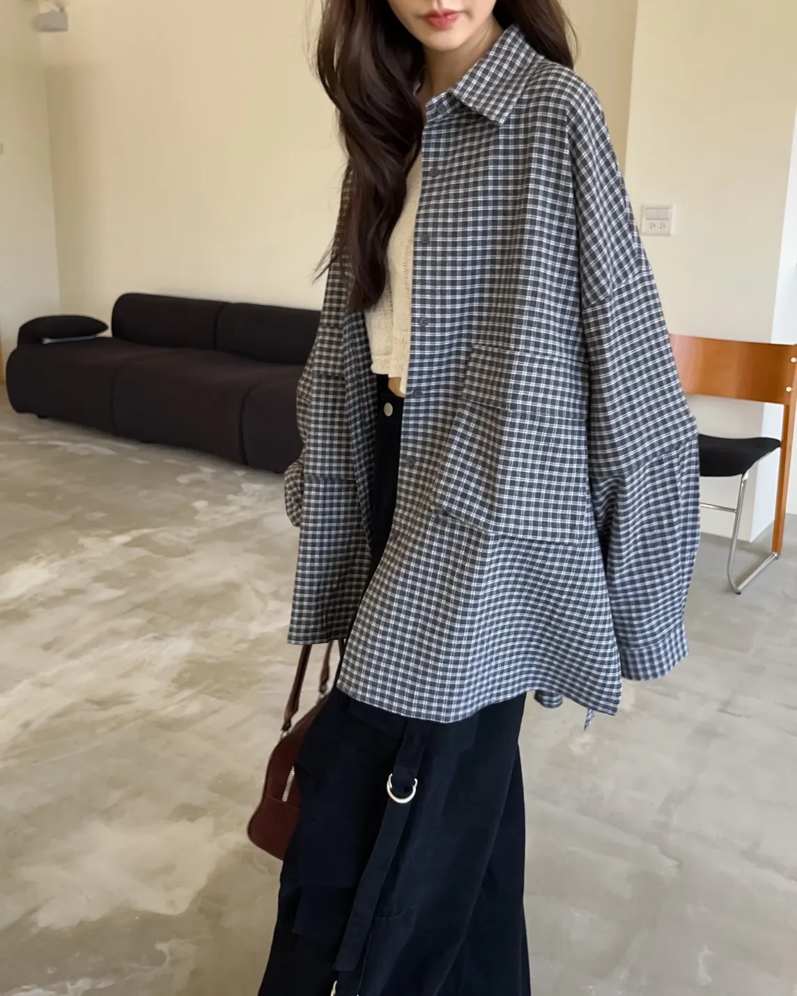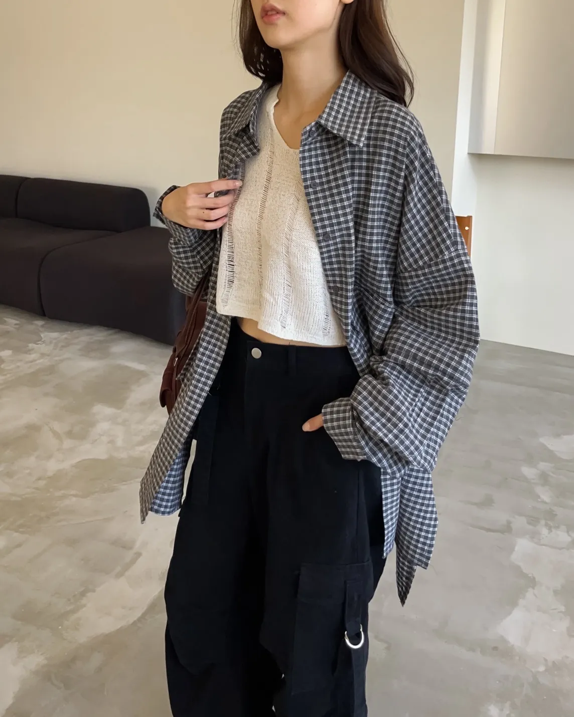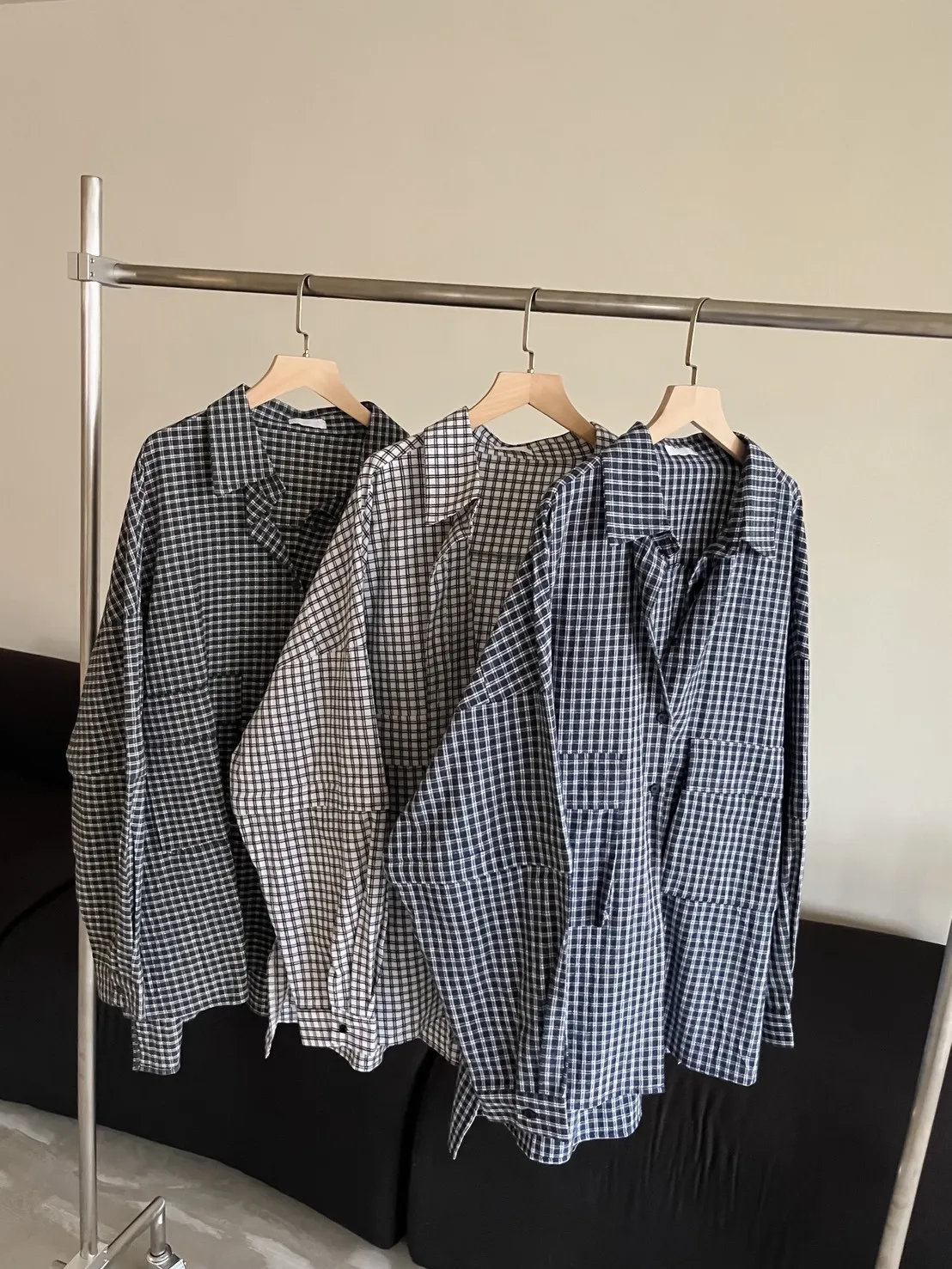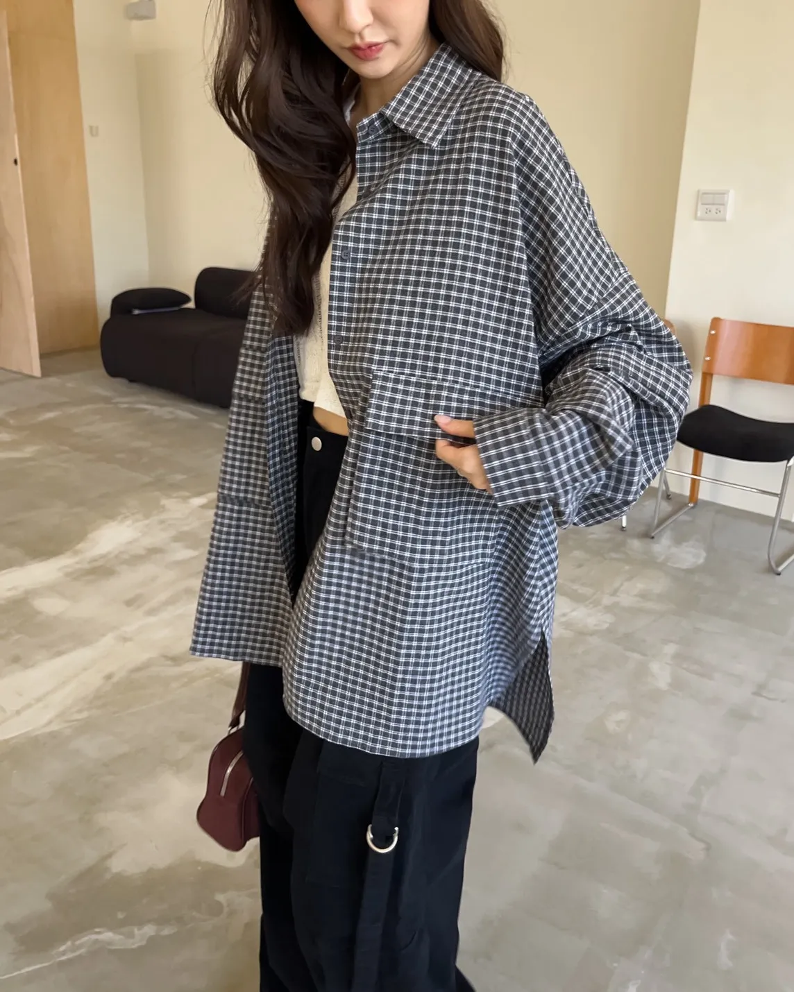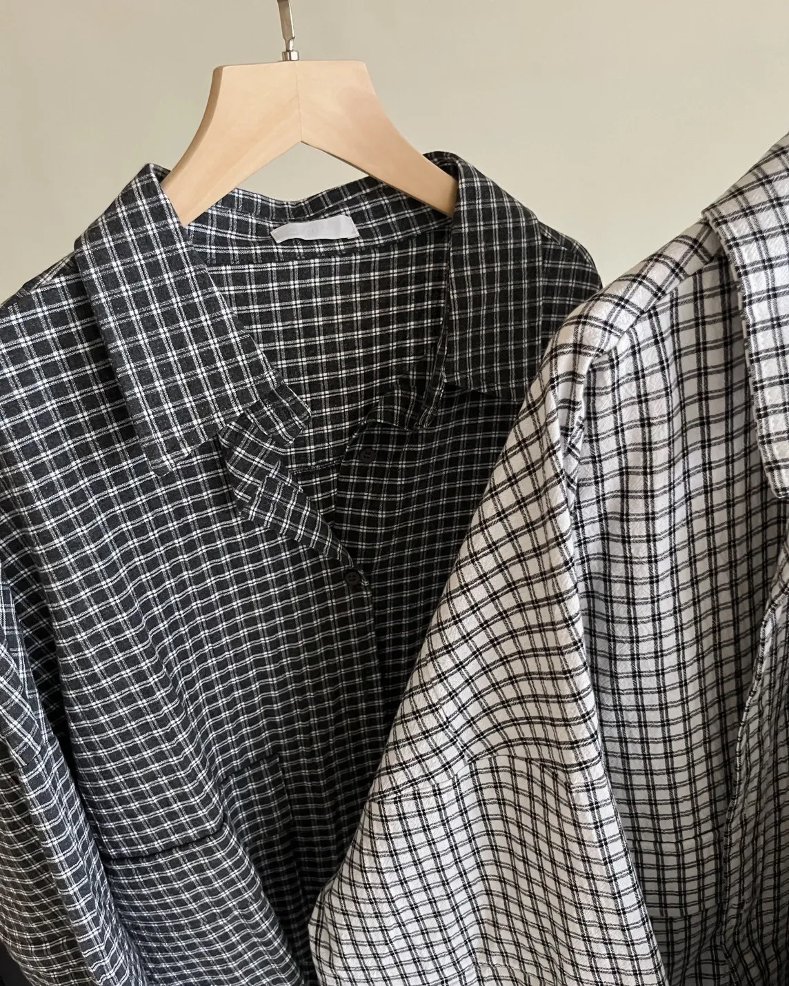 V0031(袖可拆)翻蓋口袋寬版格子衫(白/深藍/深灰)(售完不補)