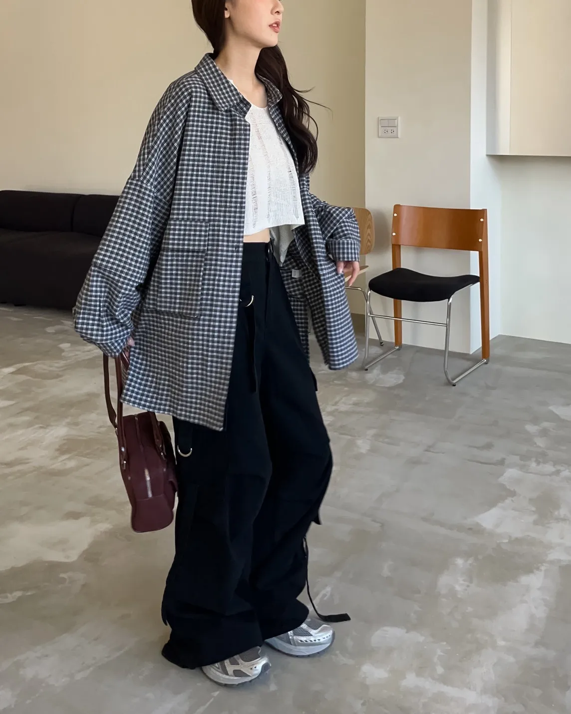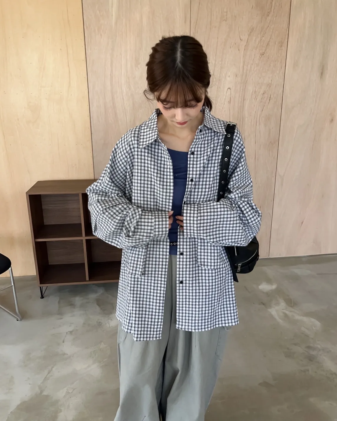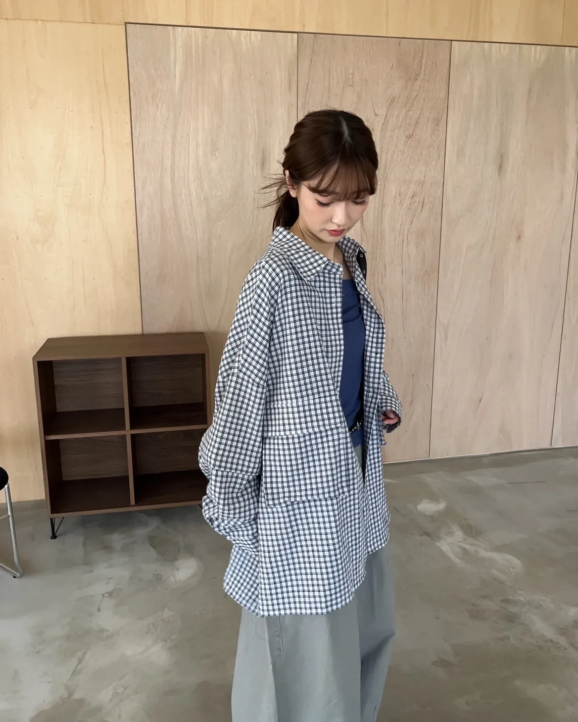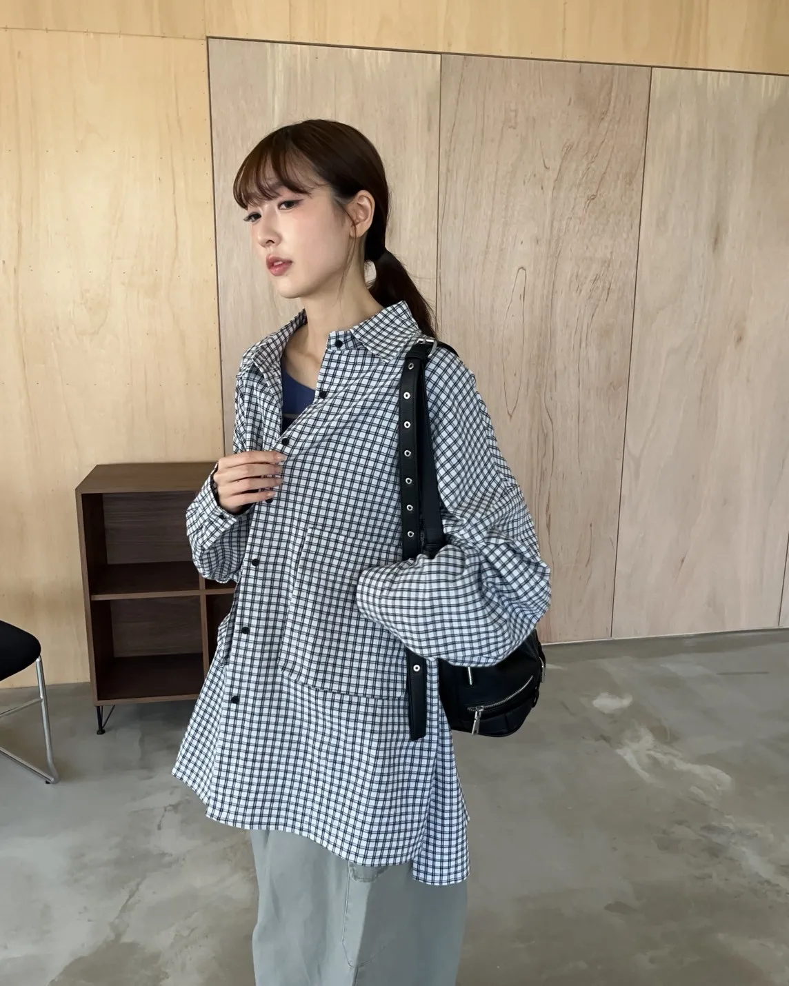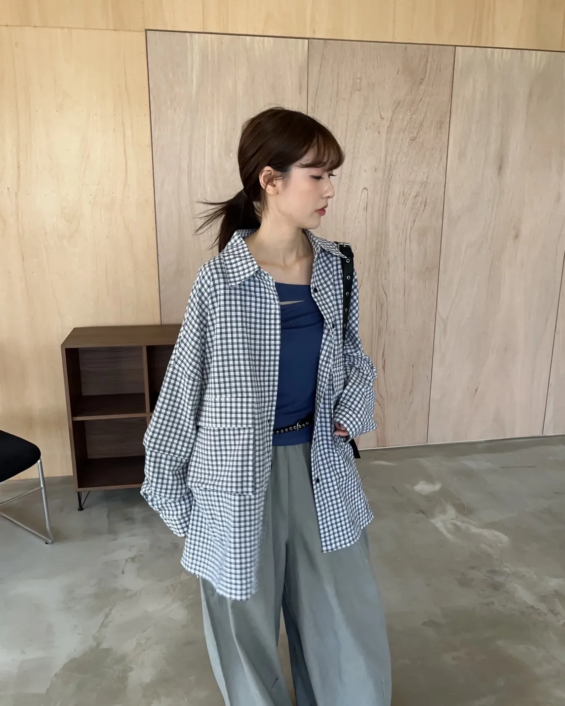 V0031(袖可拆)翻蓋口袋寬版格子衫(白/深藍/深灰)(售完不補)