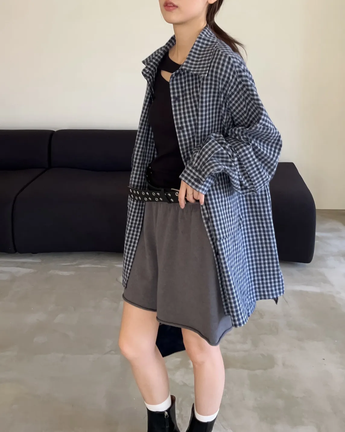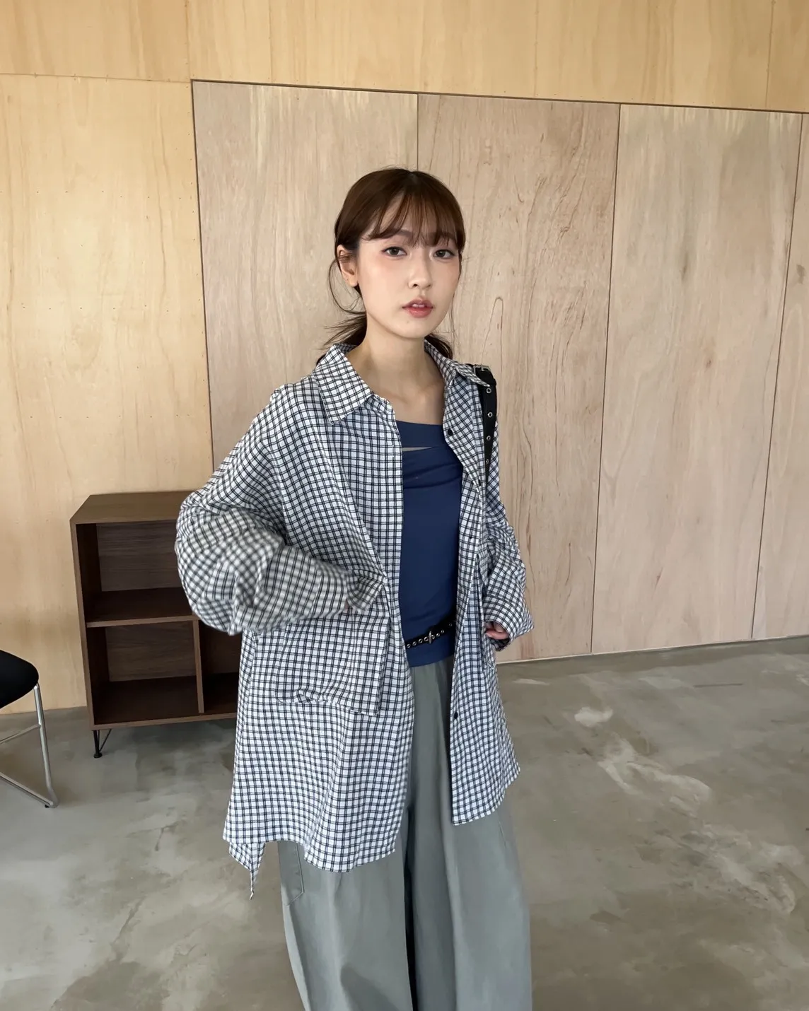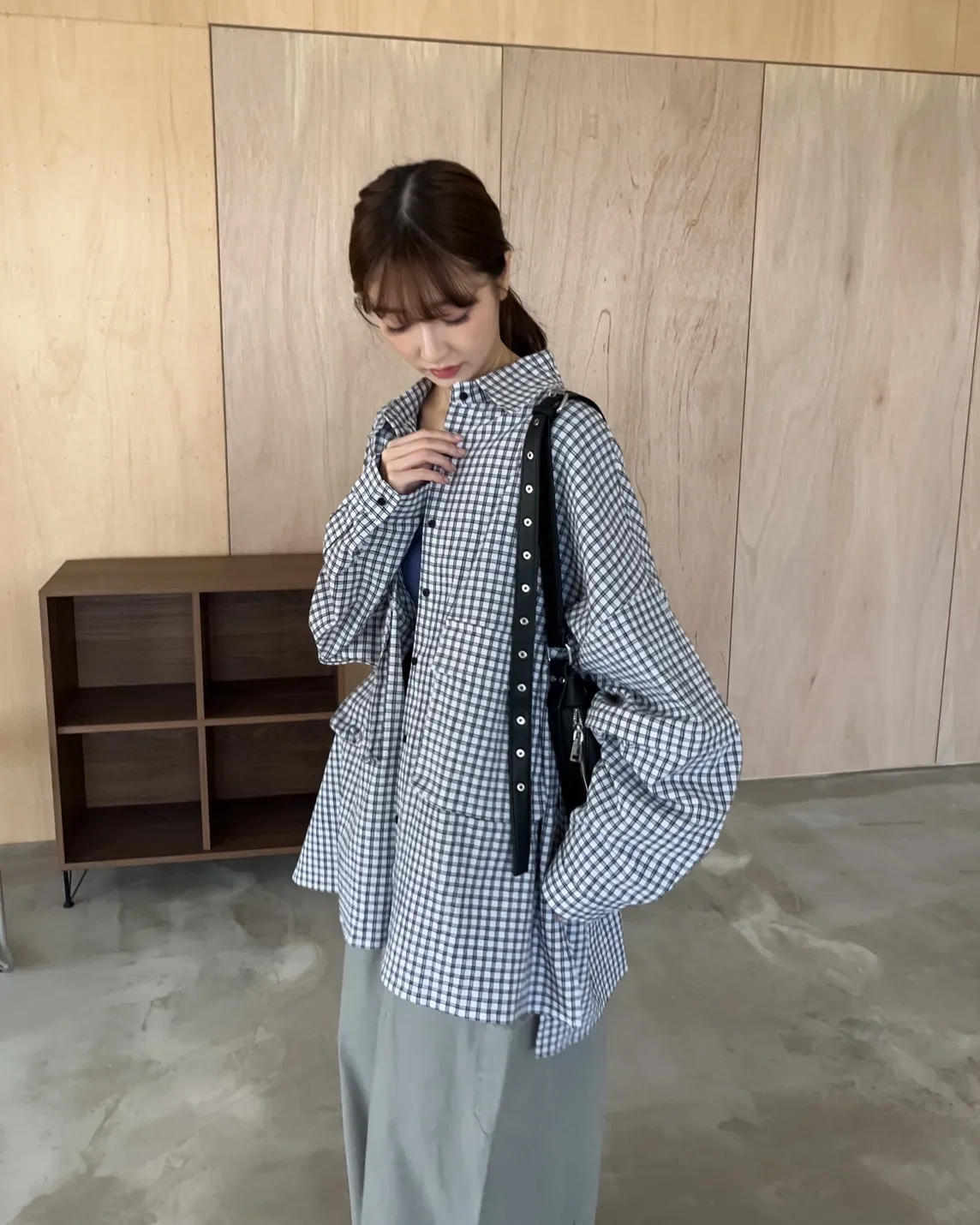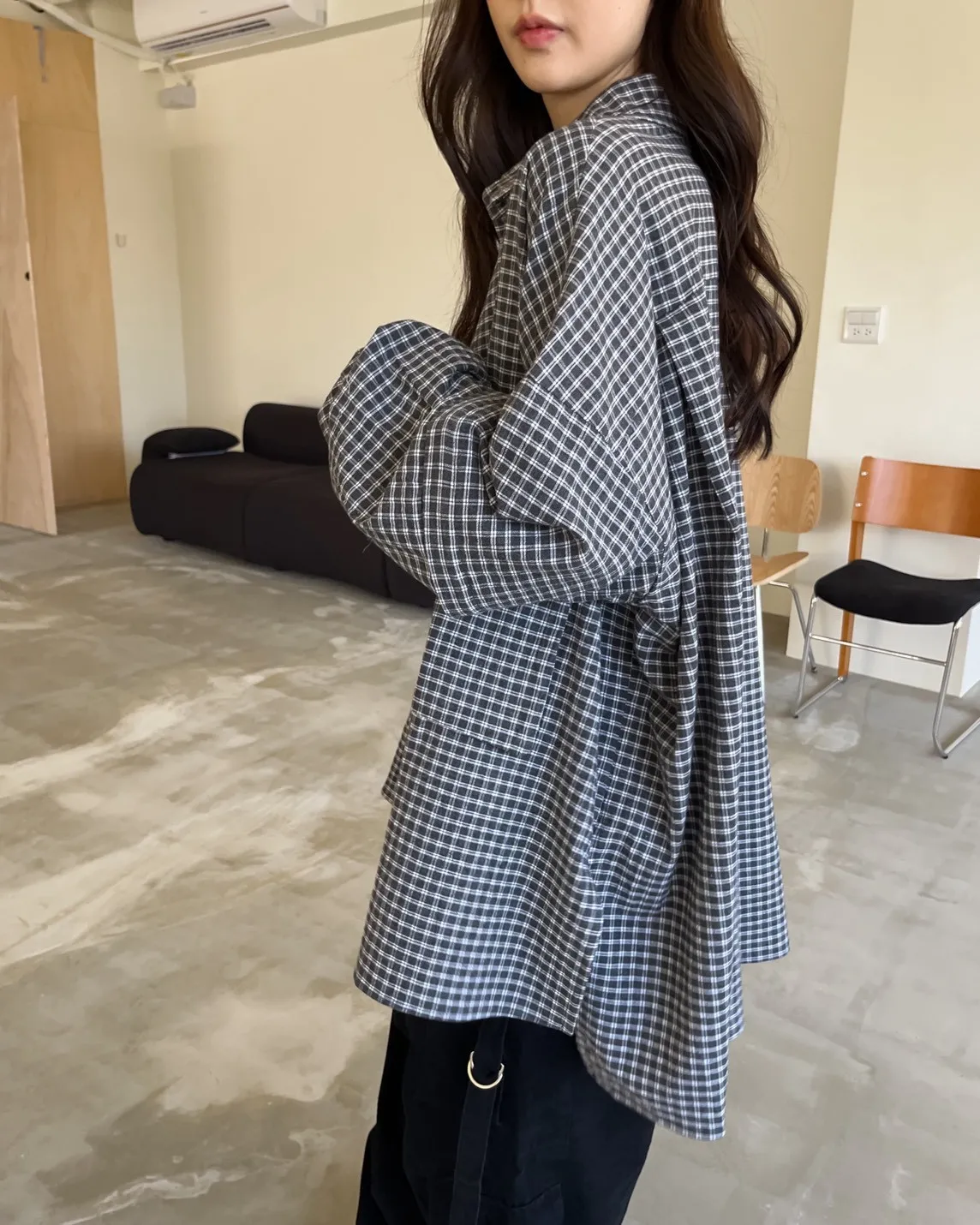 V0031(袖可拆)翻蓋口袋寬版格子衫(白/深藍/深灰)(售完不補)