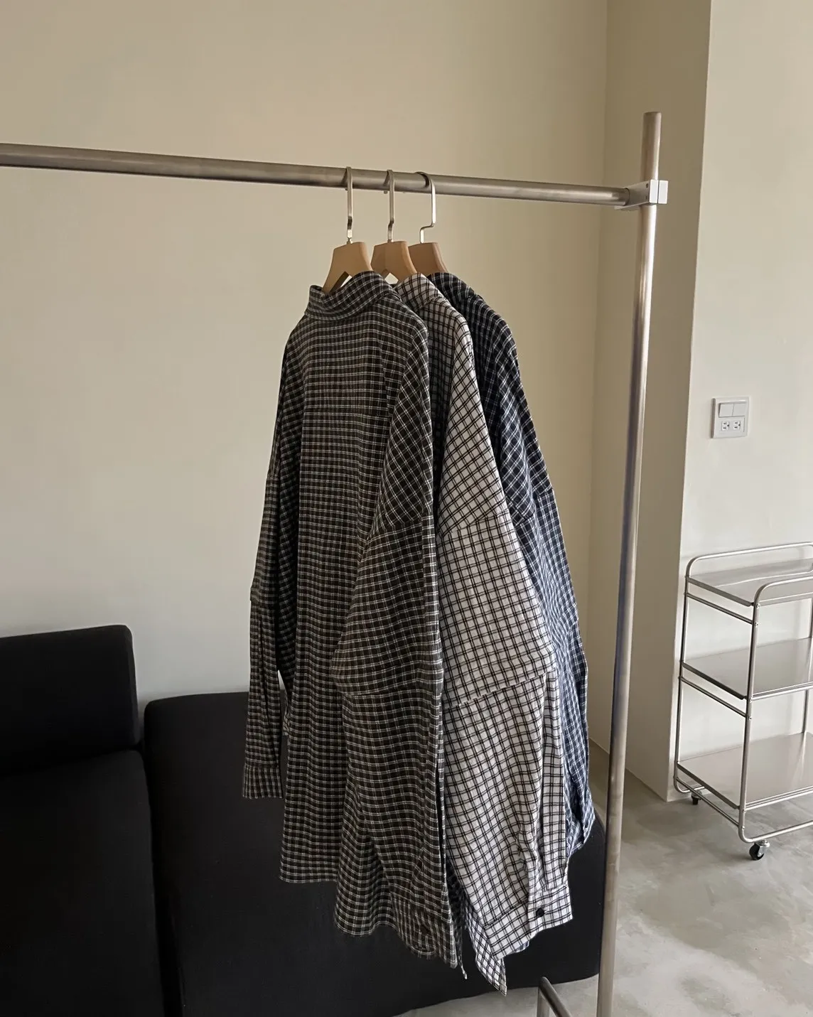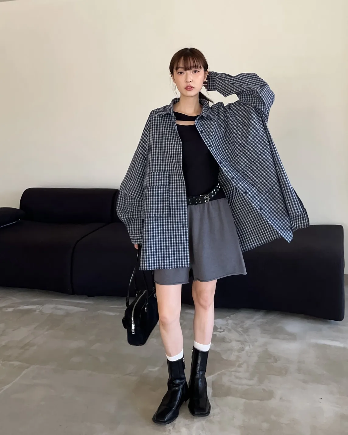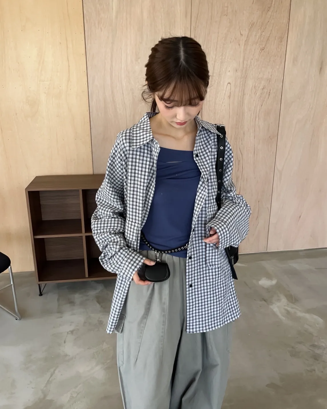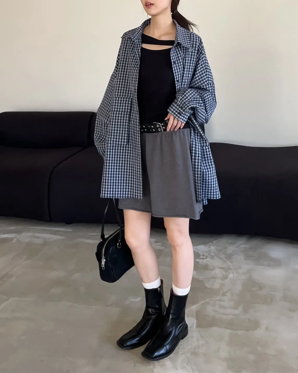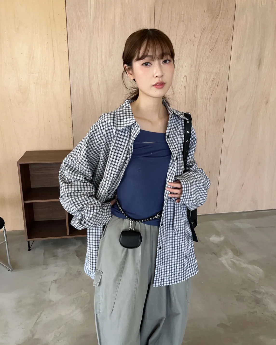 V0031(袖可拆)翻蓋口袋寬版格子衫(白/深藍/深灰)(售完不補)