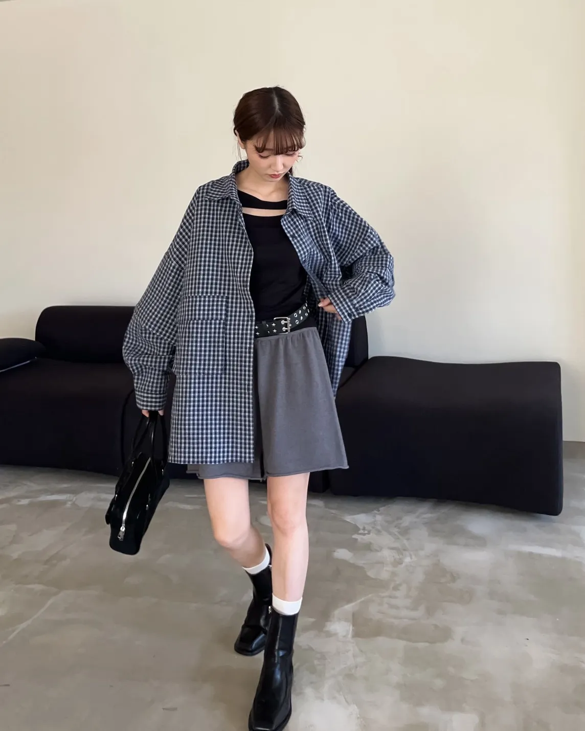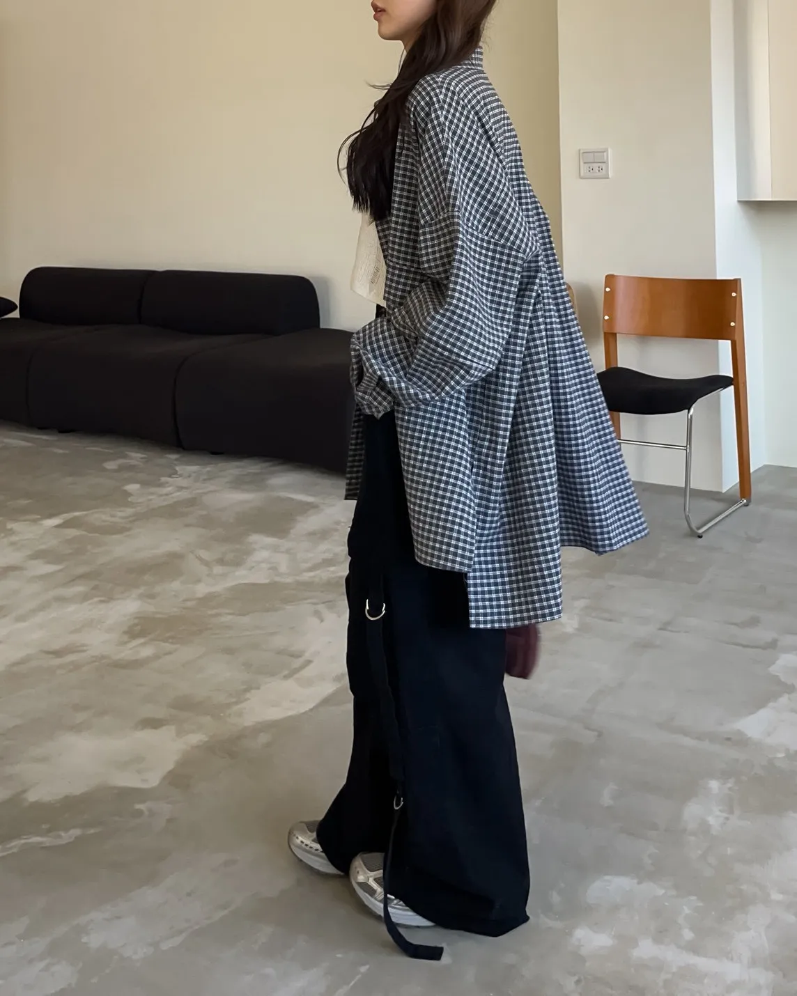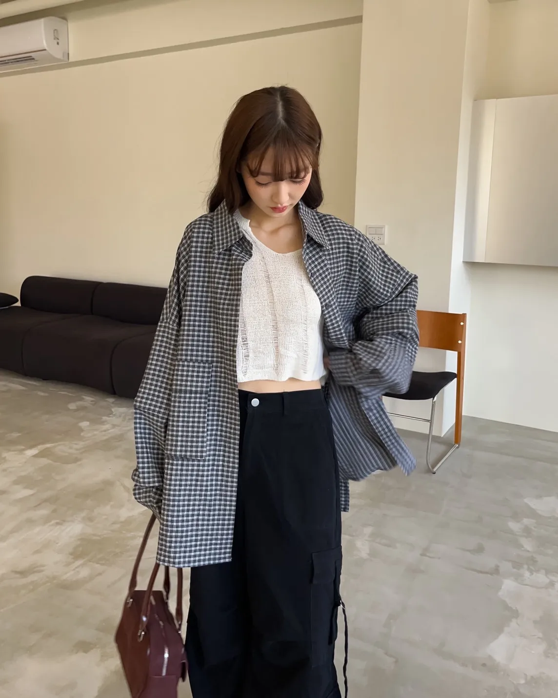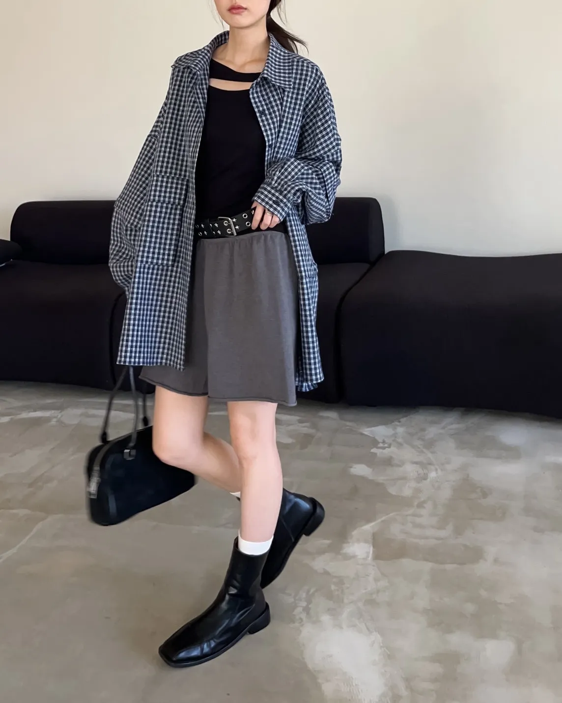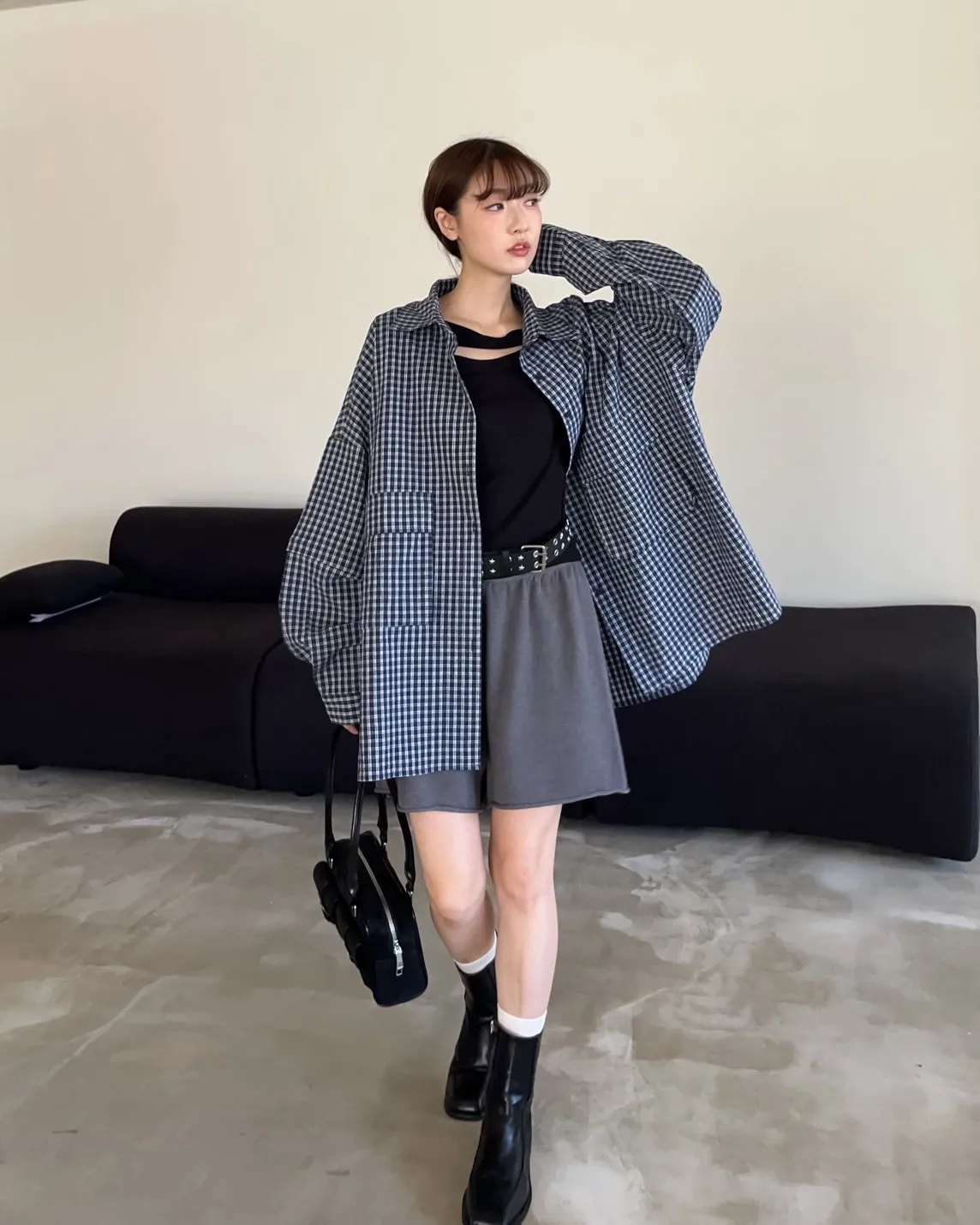 V0031(袖可拆)翻蓋口袋寬版格子衫(白/深藍/深灰)(售完不補)