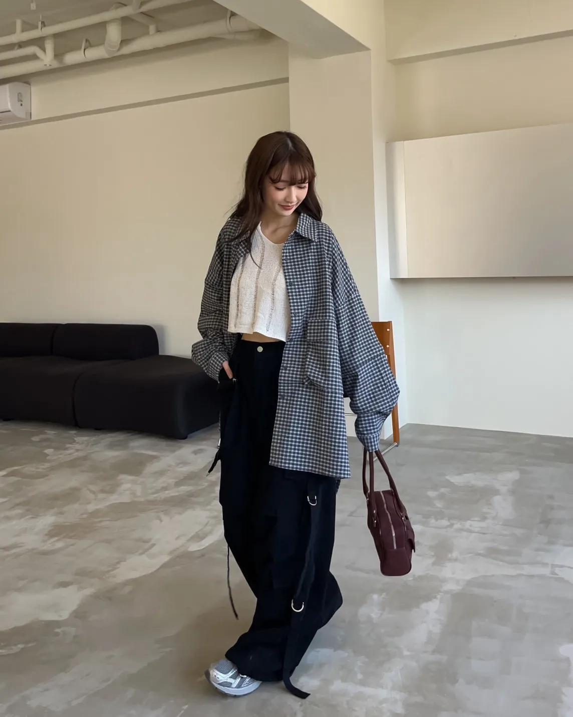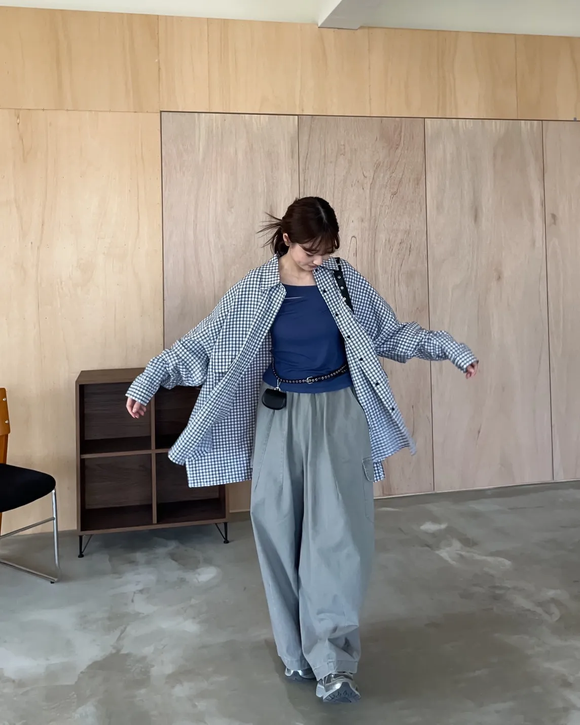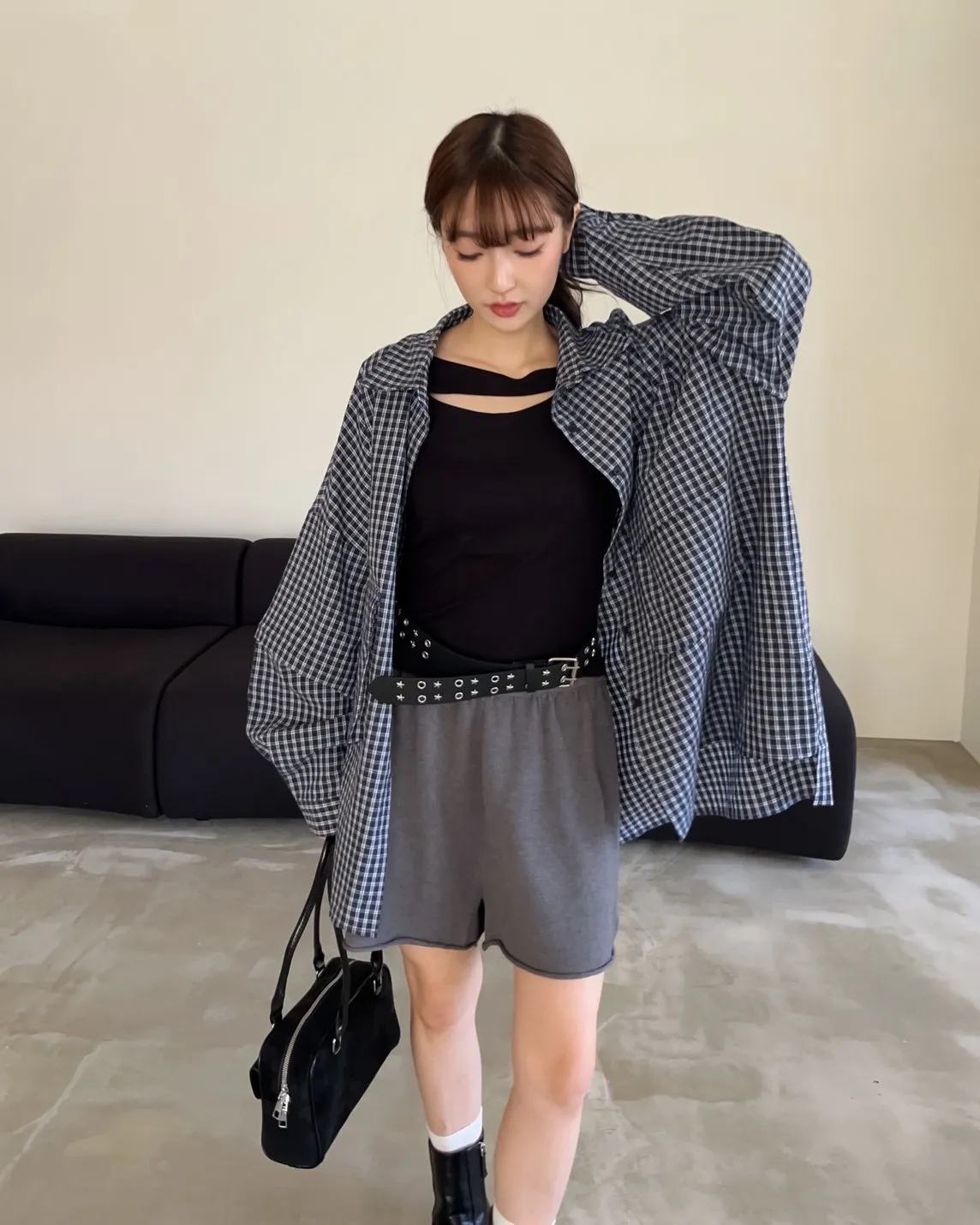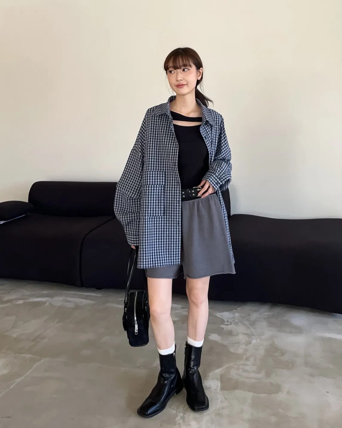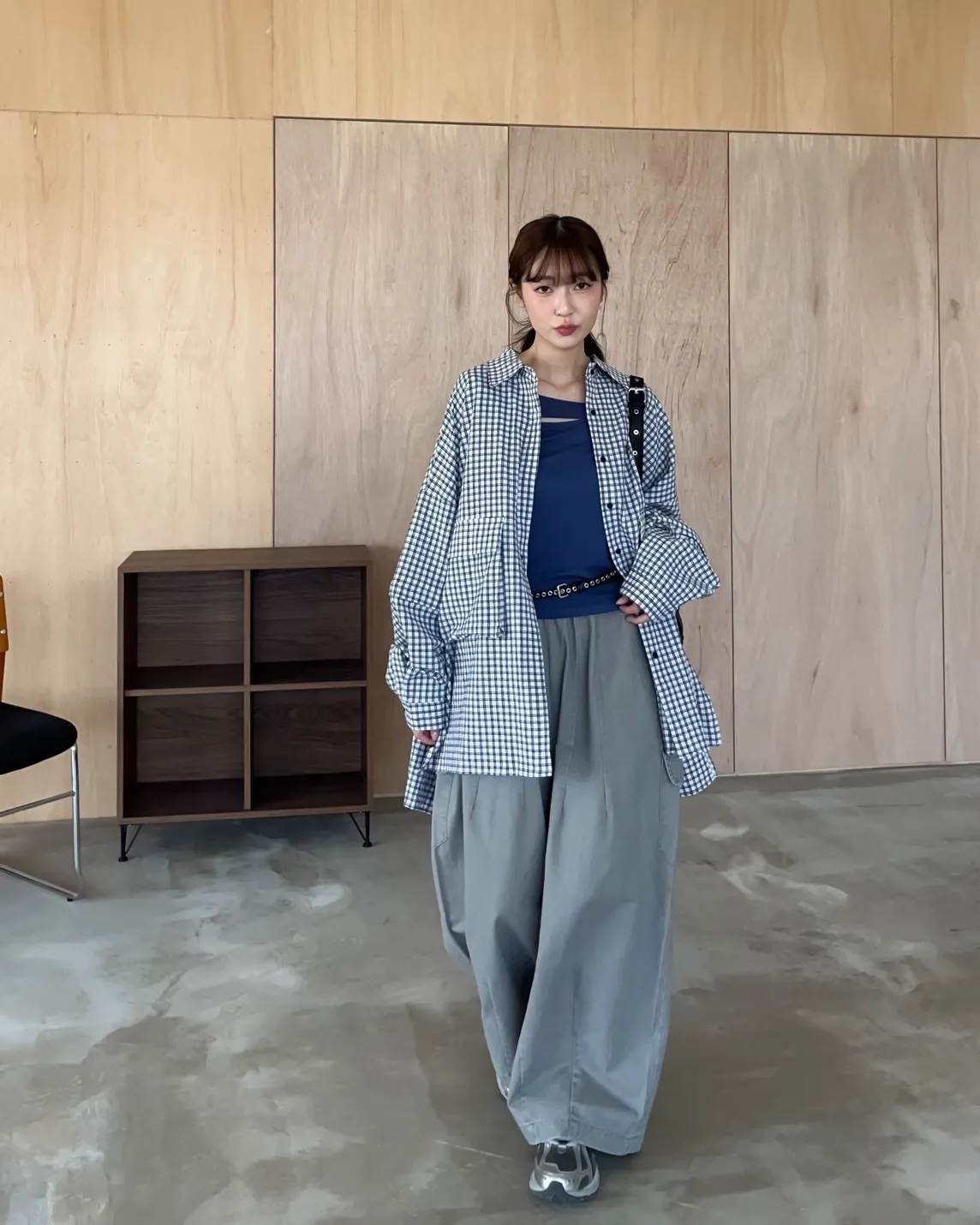 V0031(袖可拆)翻蓋口袋寬版格子衫(白/深藍/深灰)(售完不補)