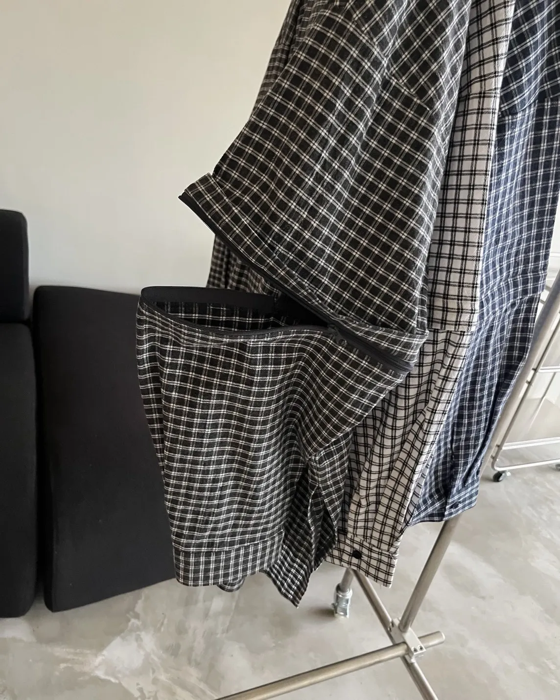 袖可拆(拉鍊) 寬版落肩 兩邊翻蓋口袋 格紋 布料本身無彈性