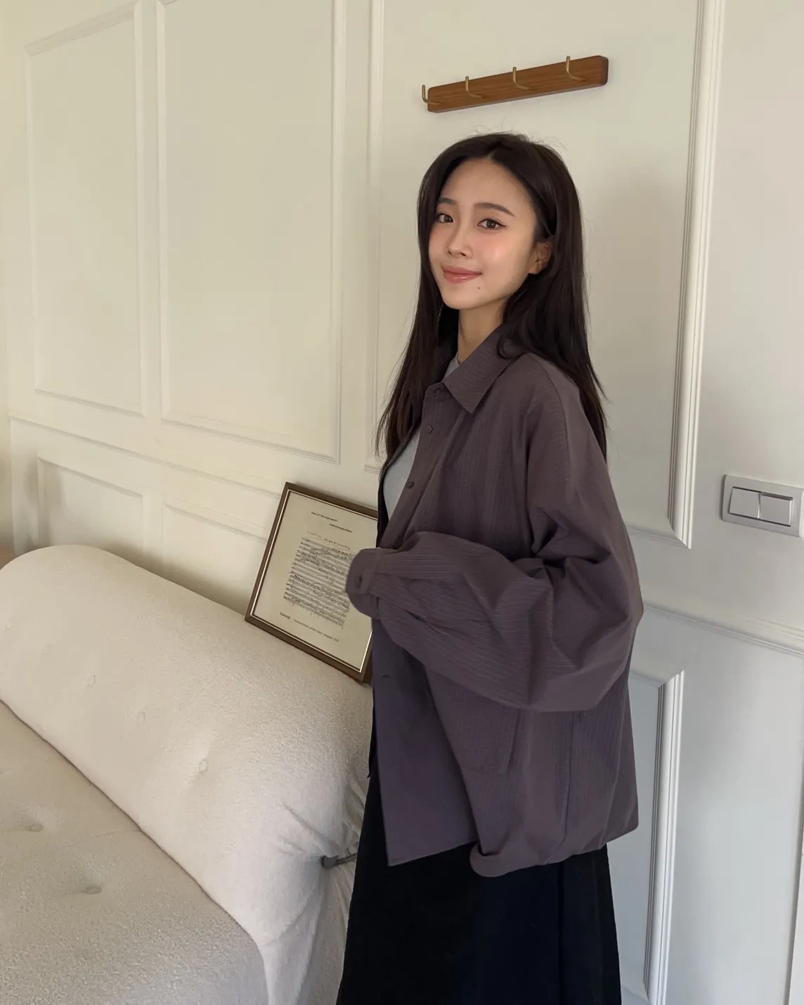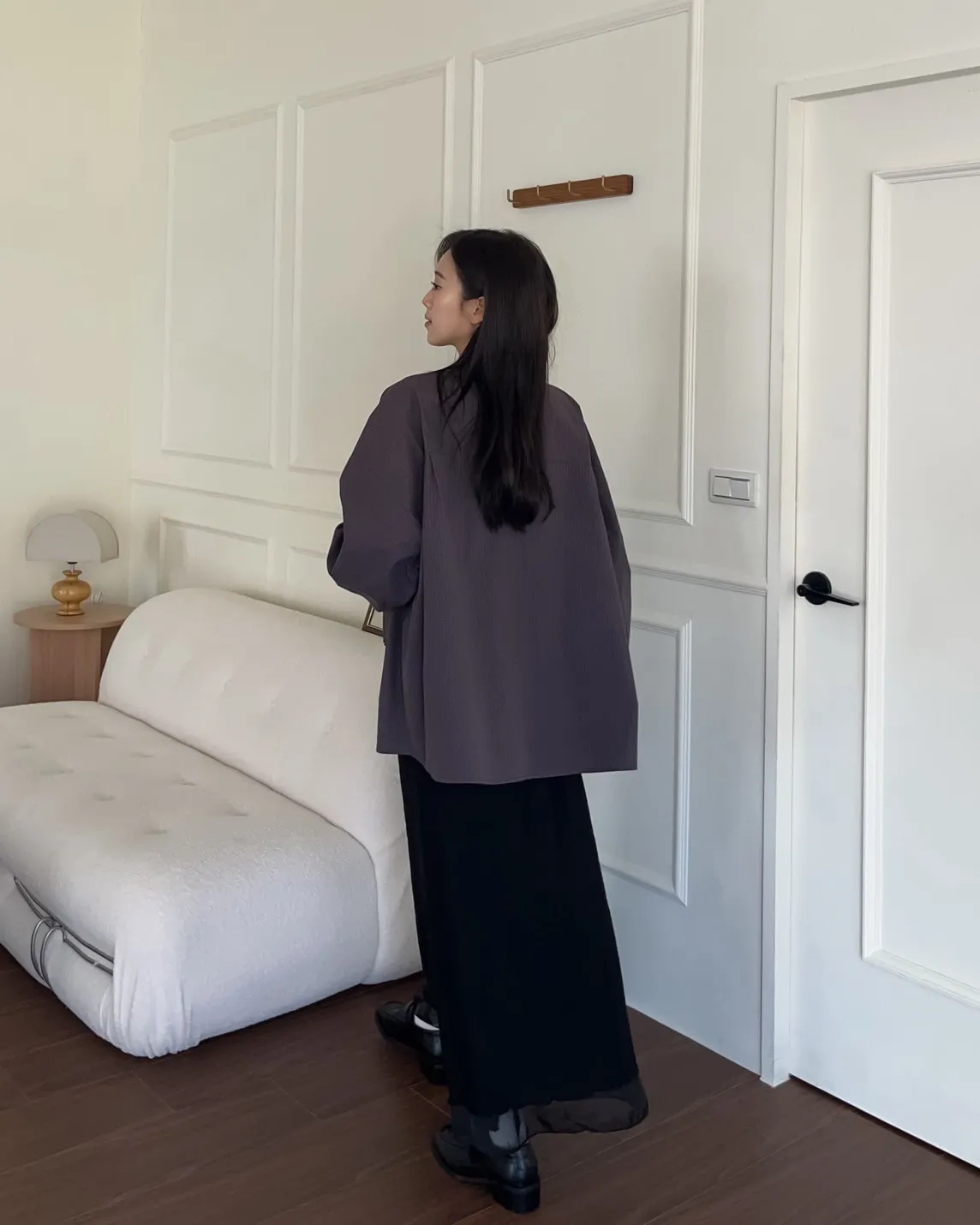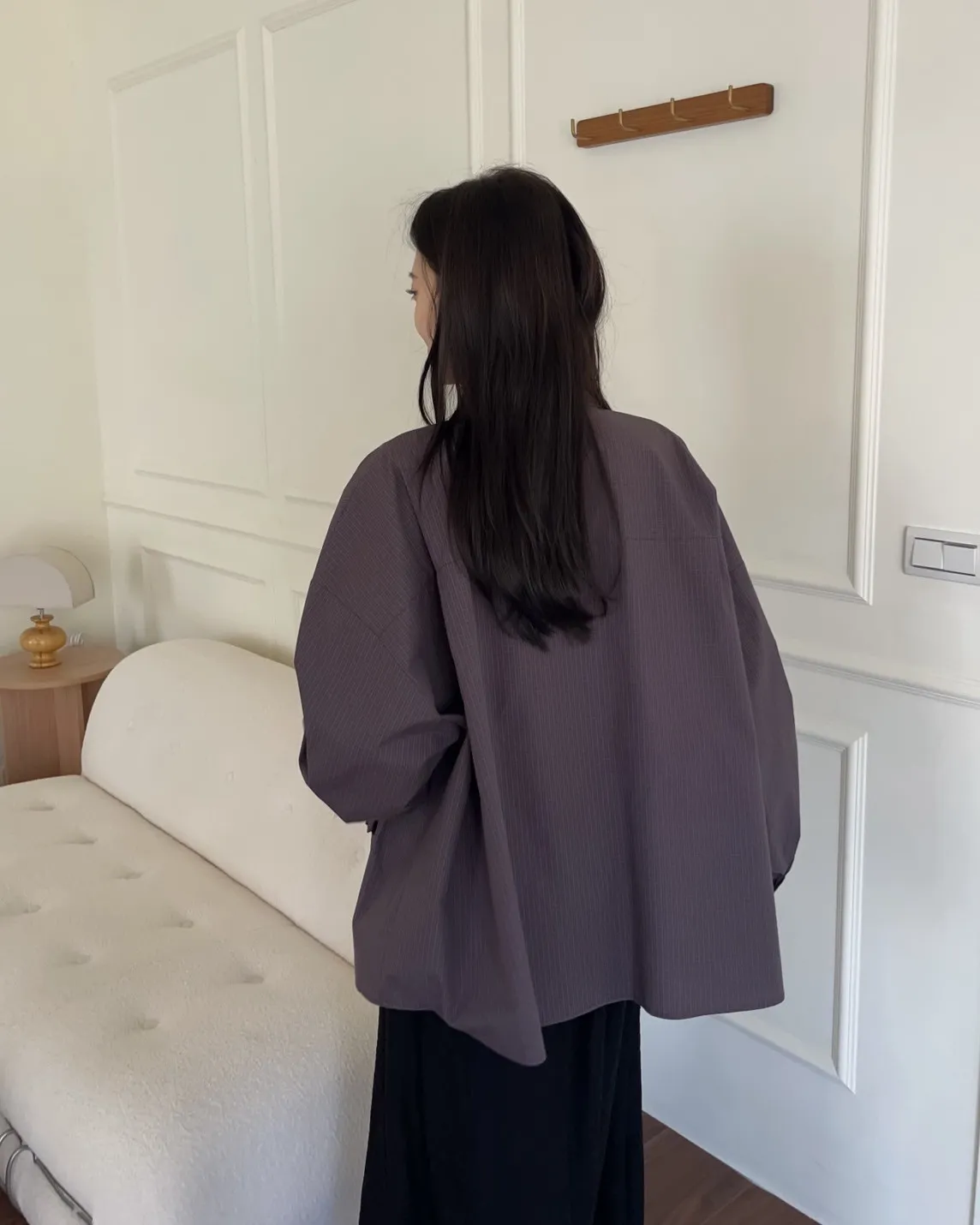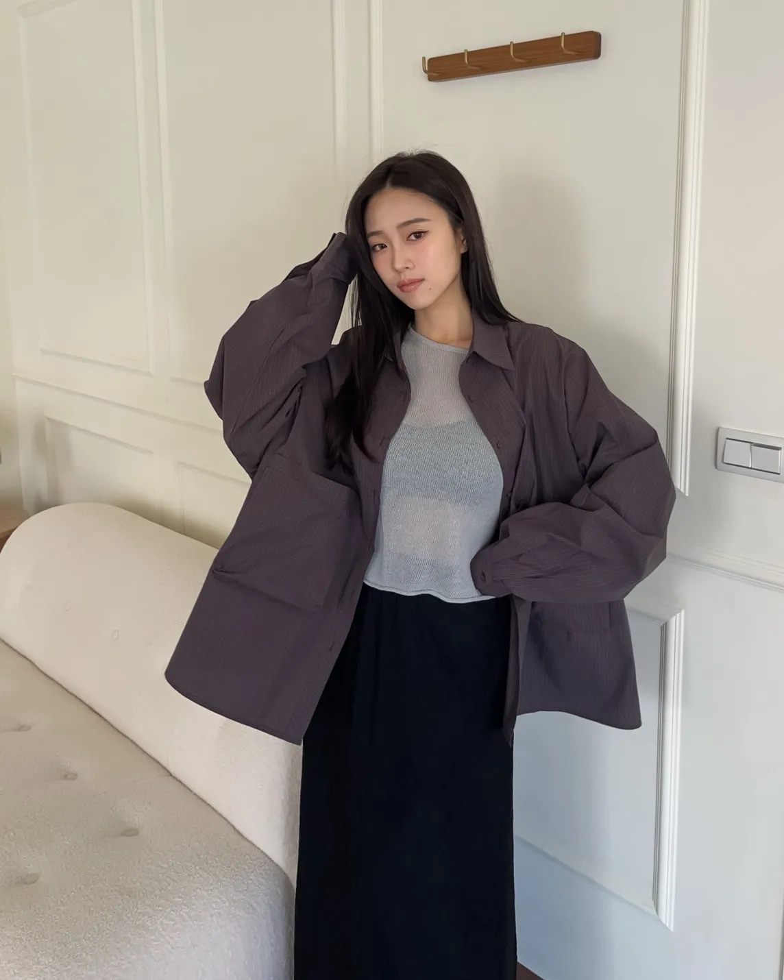 寬鬆落肩 寬版 胸前大口袋 格紋 布料本身無彈性