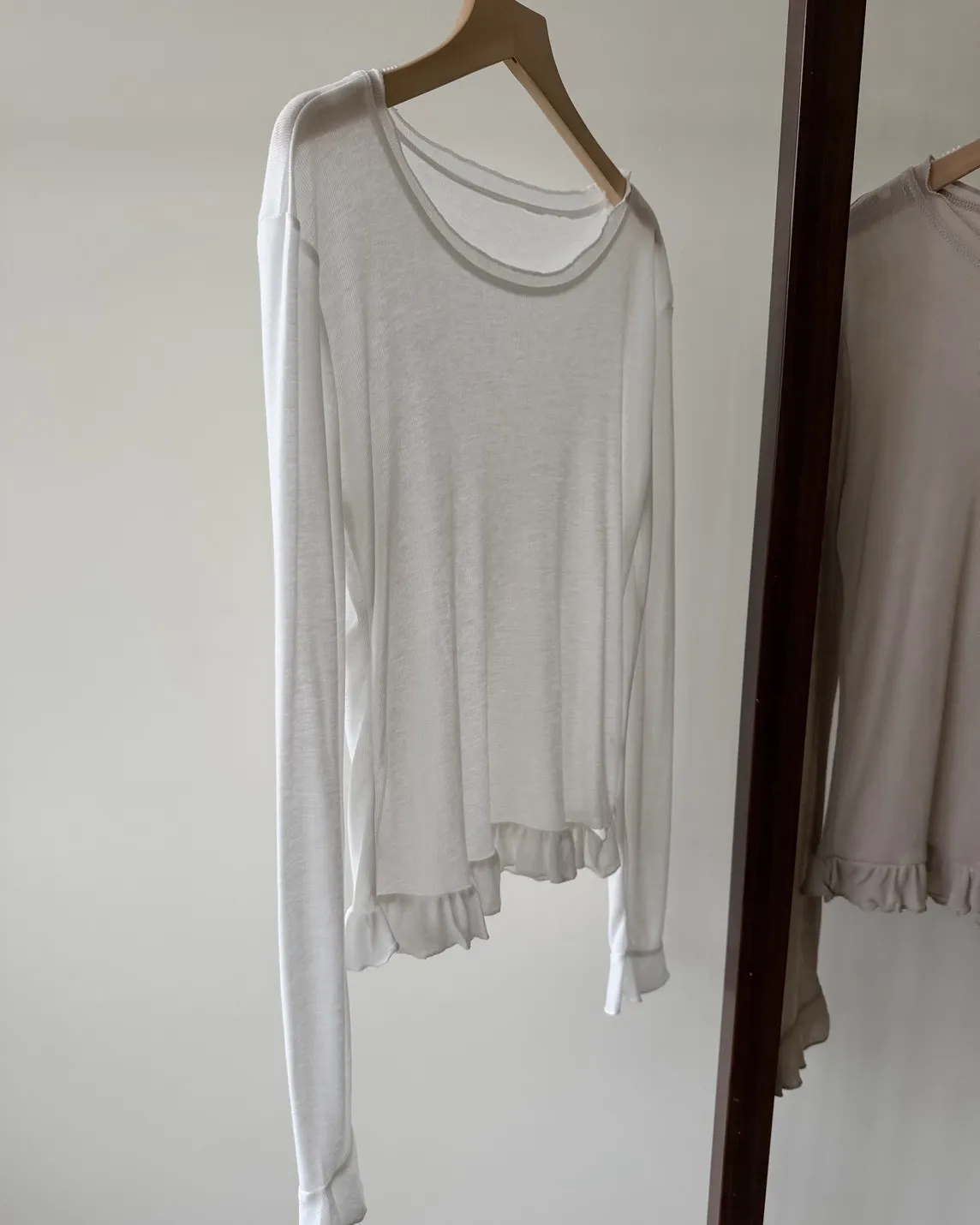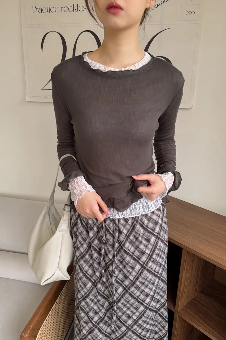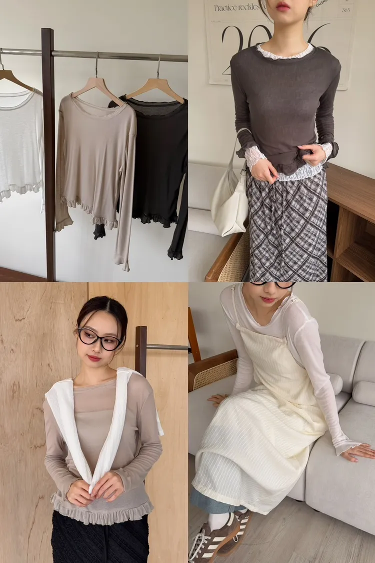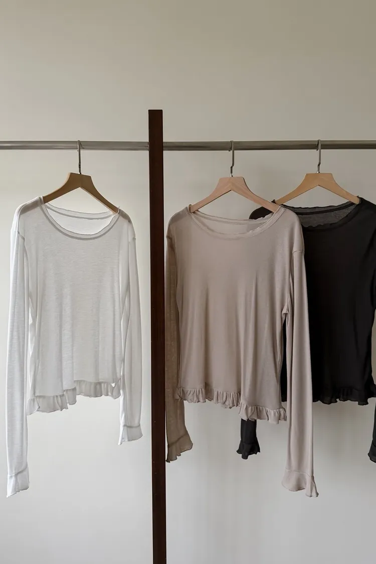 薄棉料 袖口/下擺 捲捲寬花邊 內搭單穿都好看