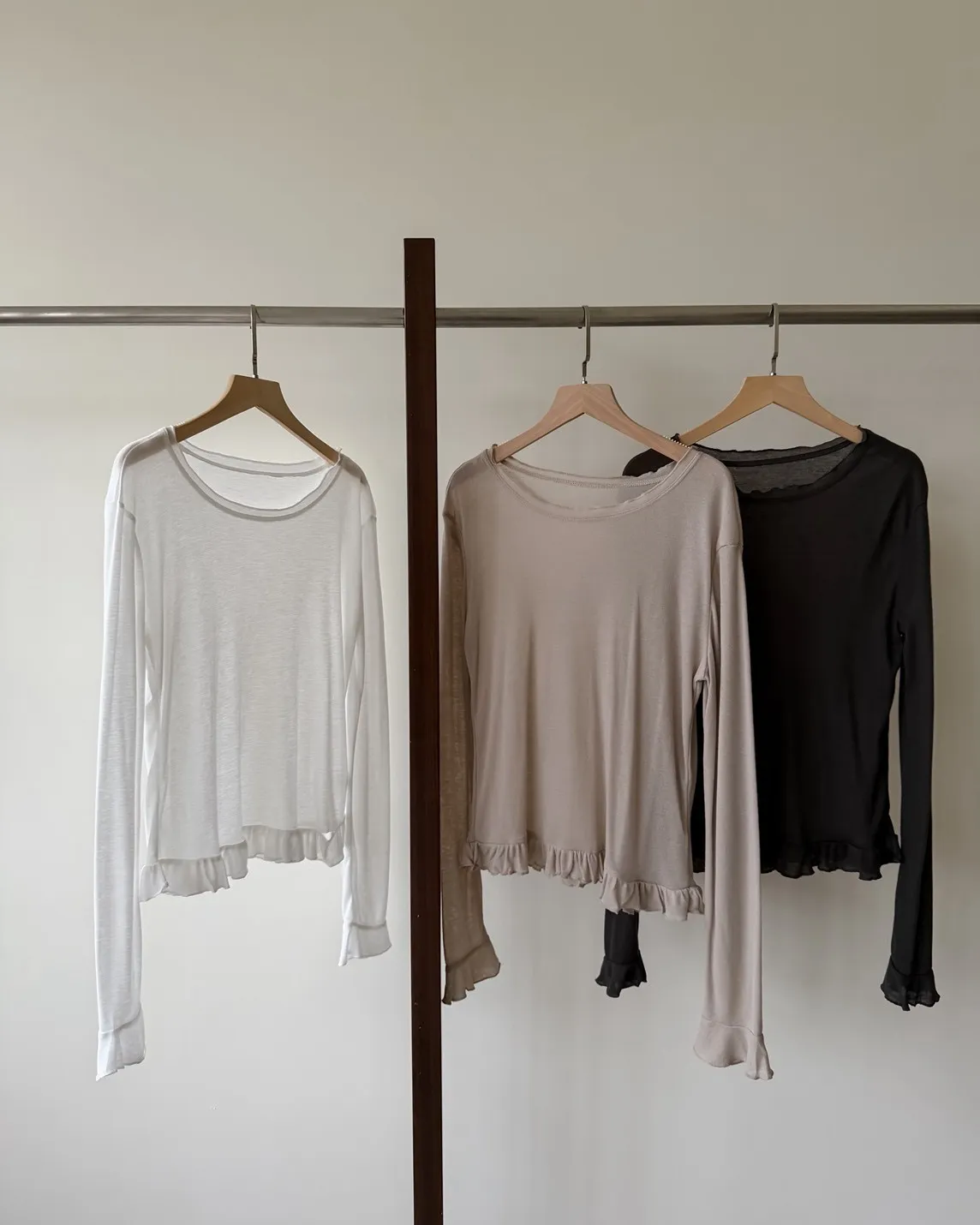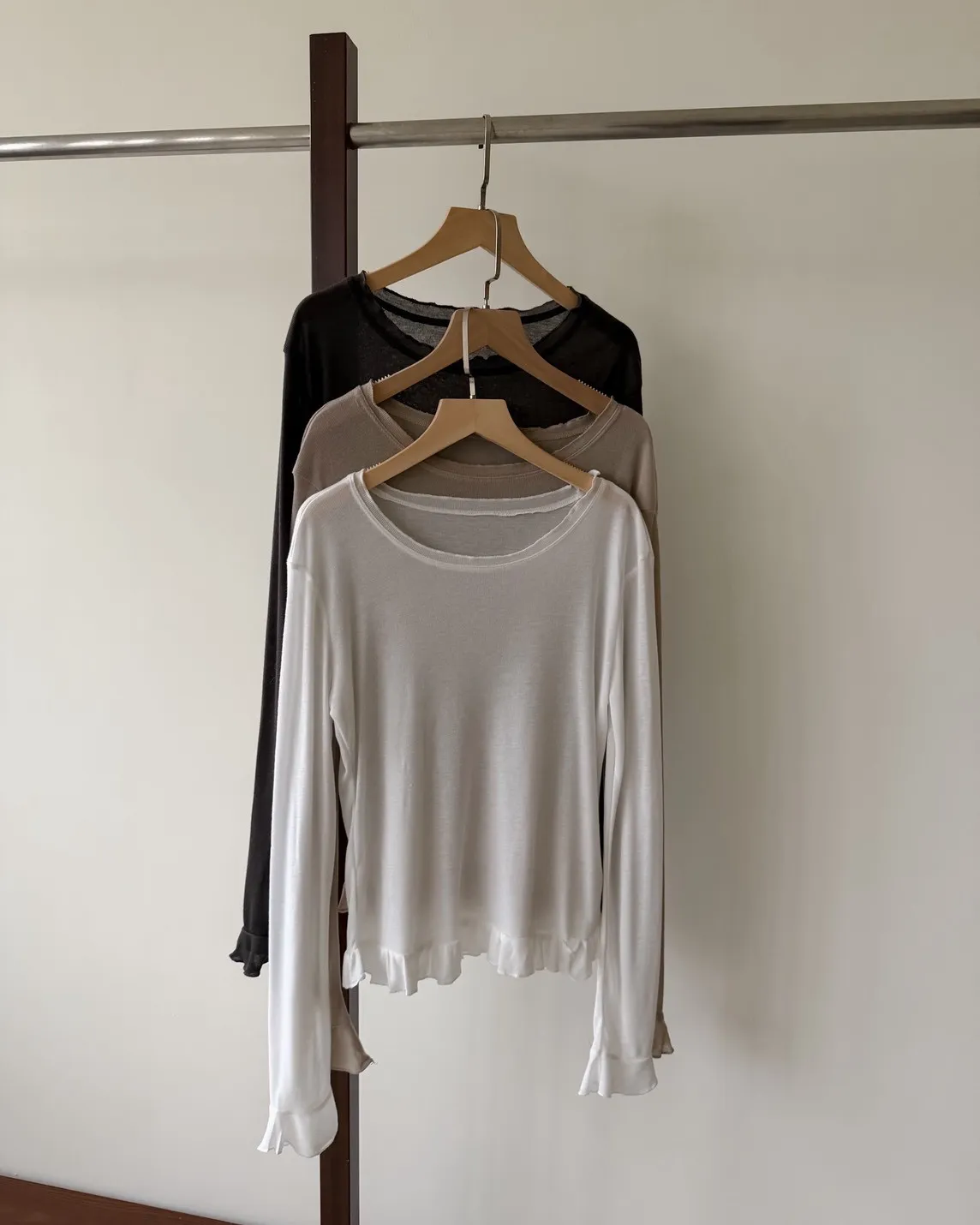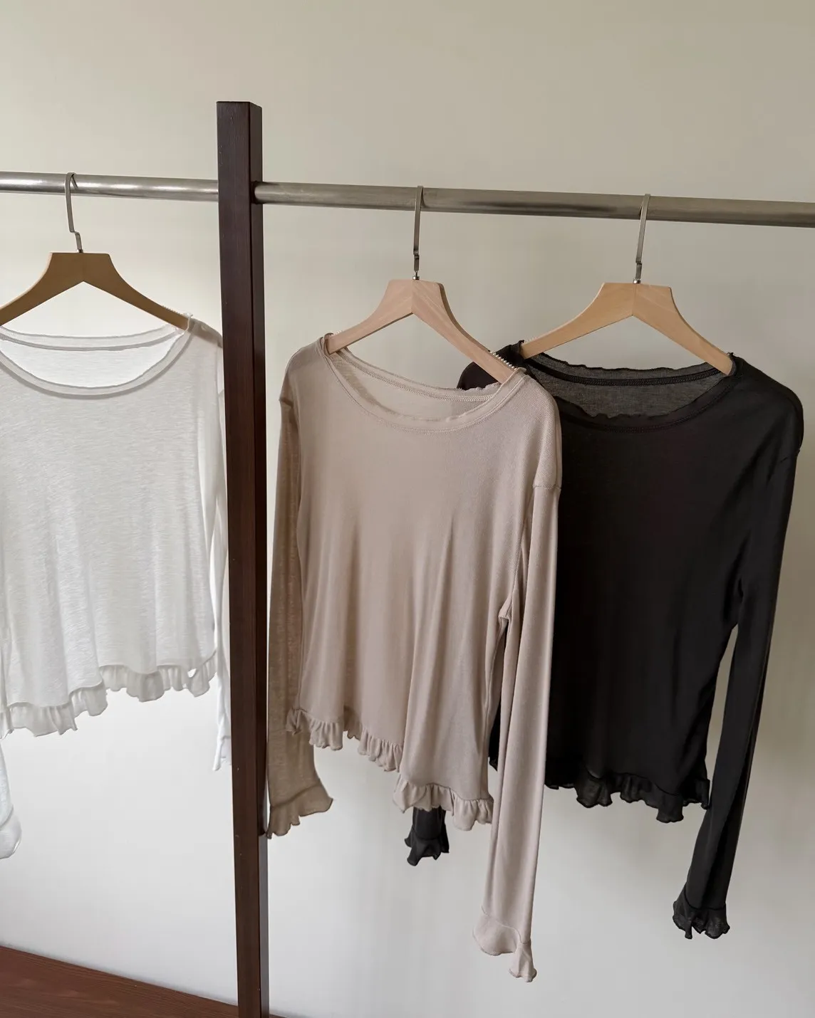 薄棉料 袖口/下擺 捲捲寬花邊 內搭單穿都好看