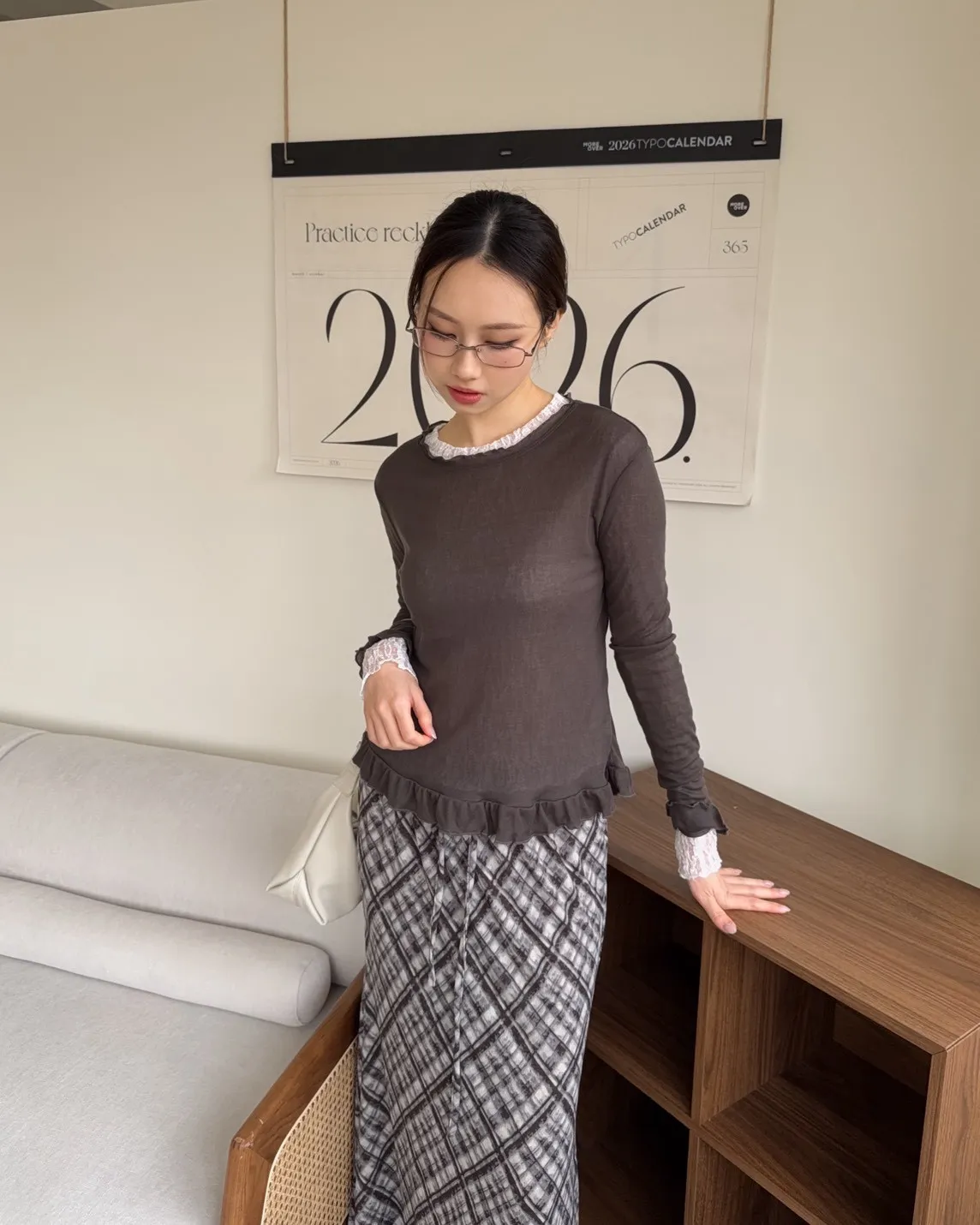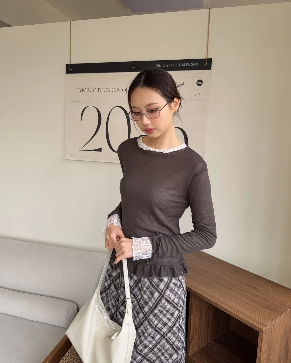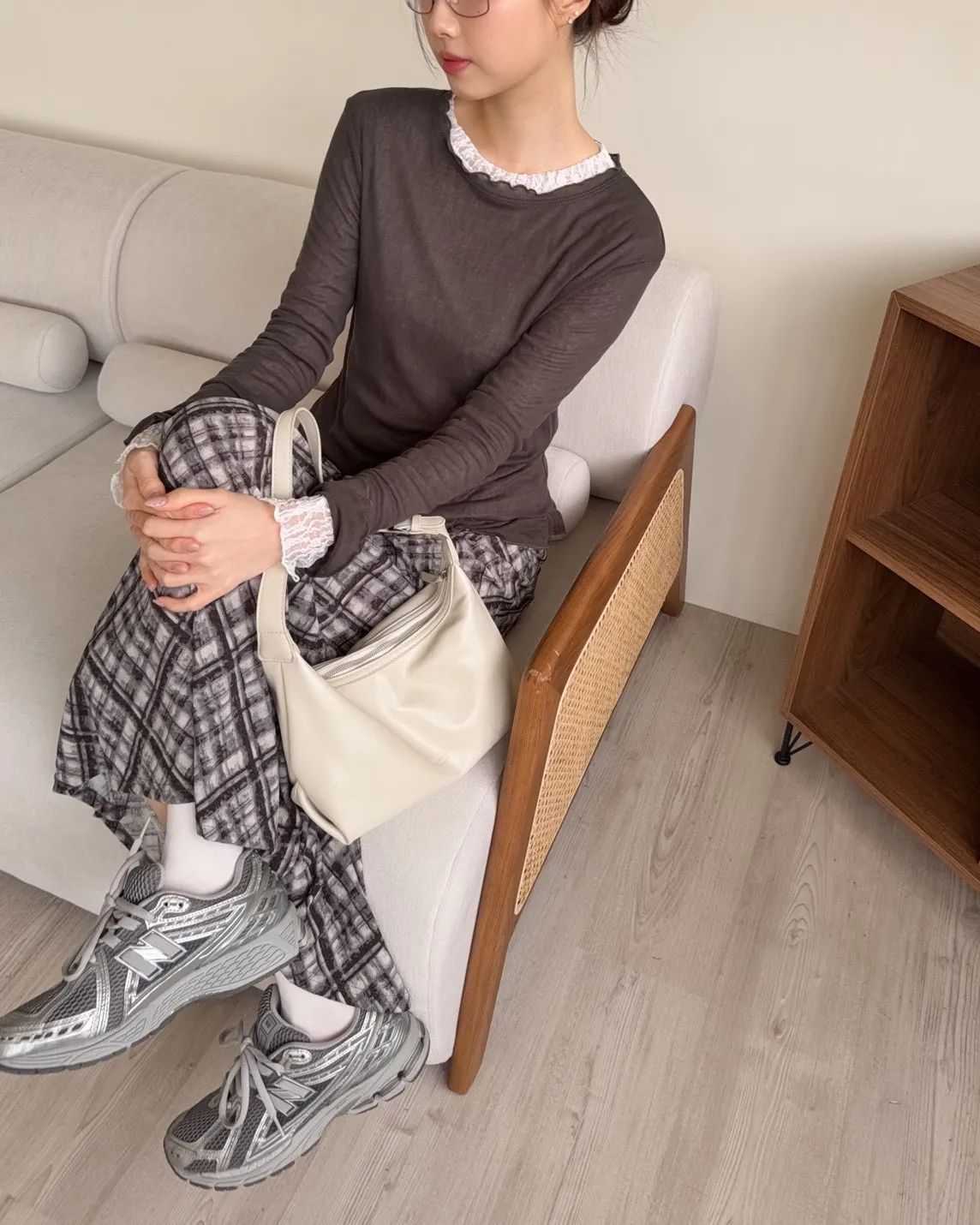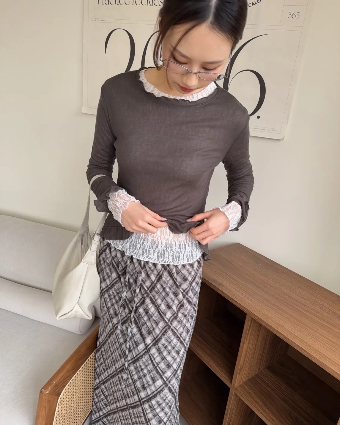 A0014捲捲花邊喇叭袖棉質上衣(白/奶茶/深灰)