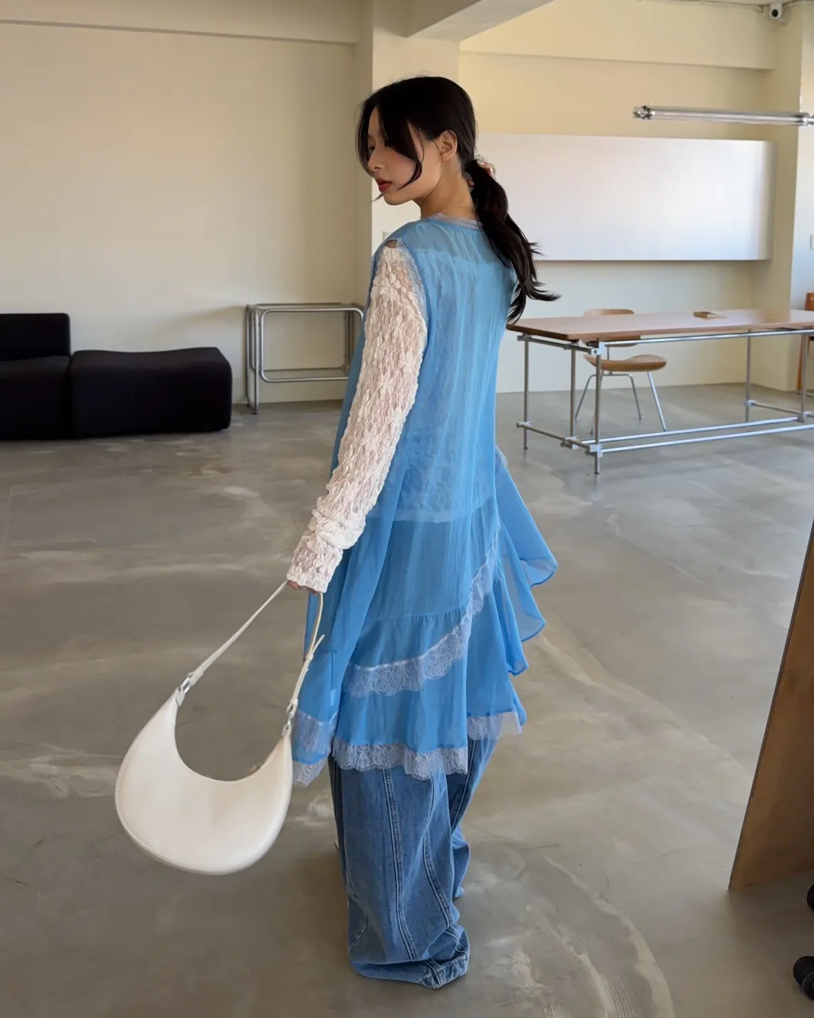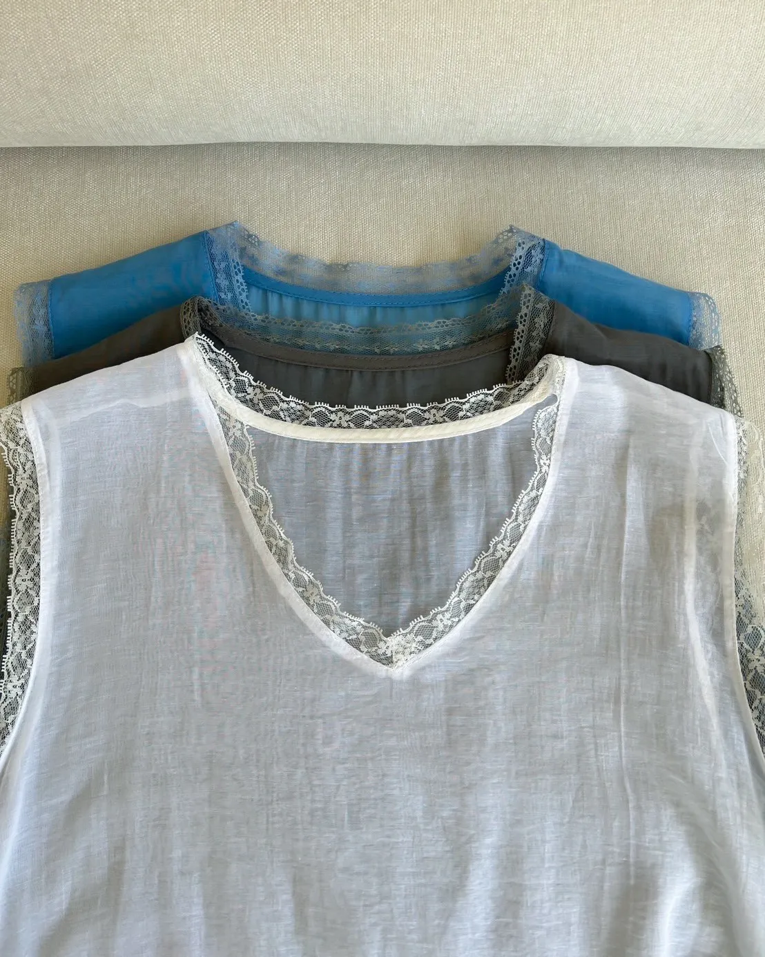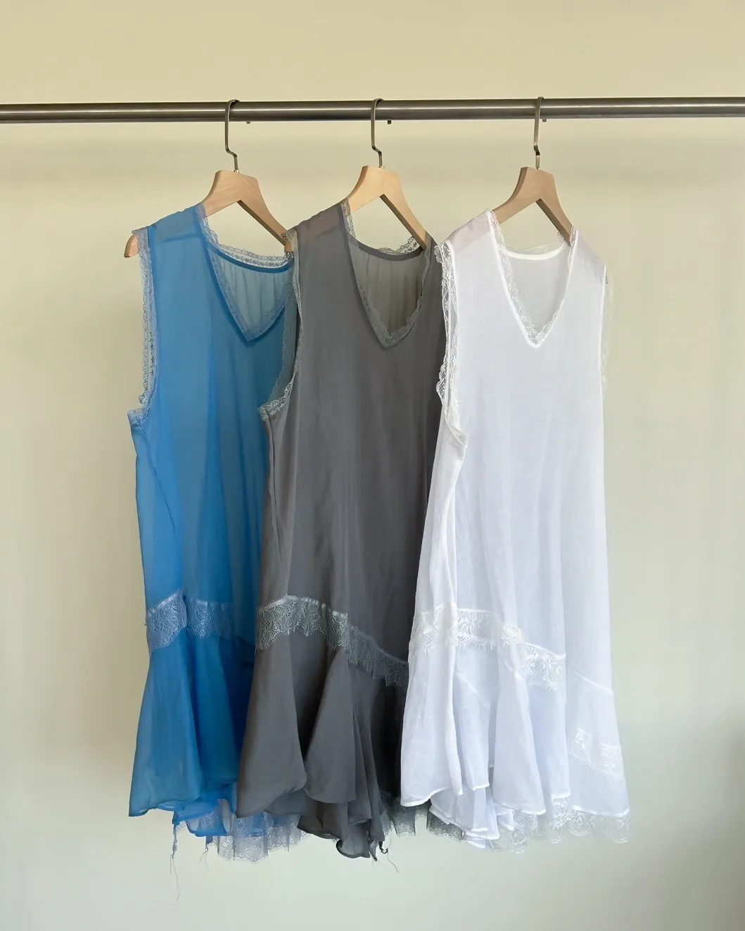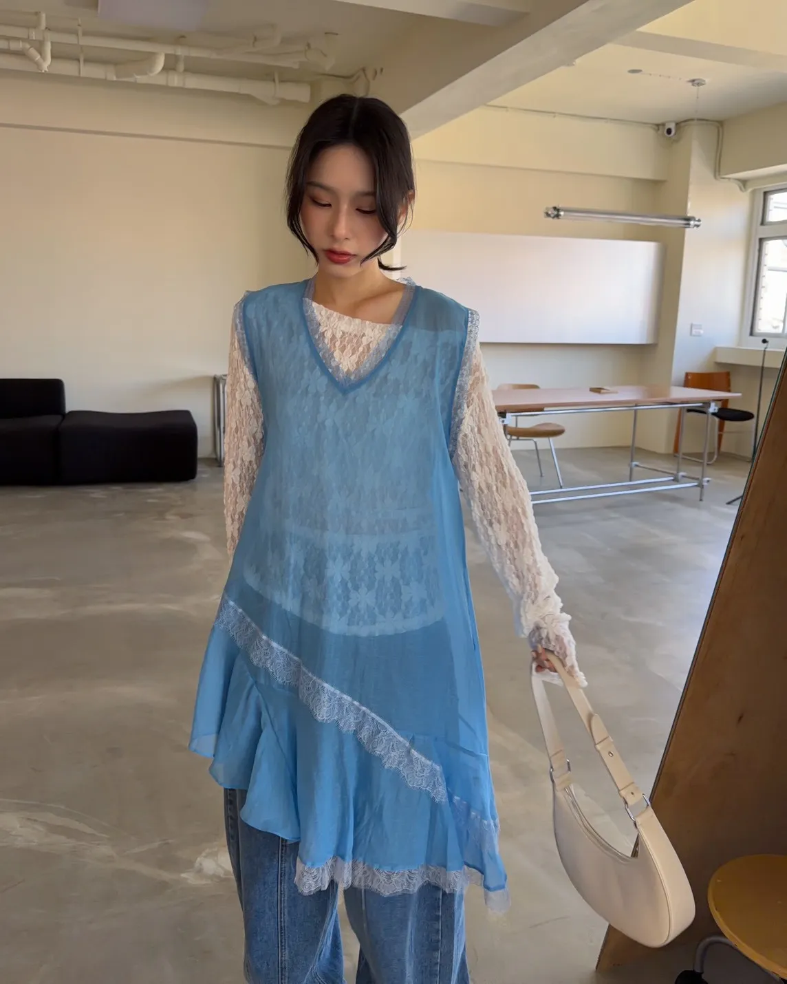 A0045蕾絲滾邊斜擺外搭洋(白/藍/灰)