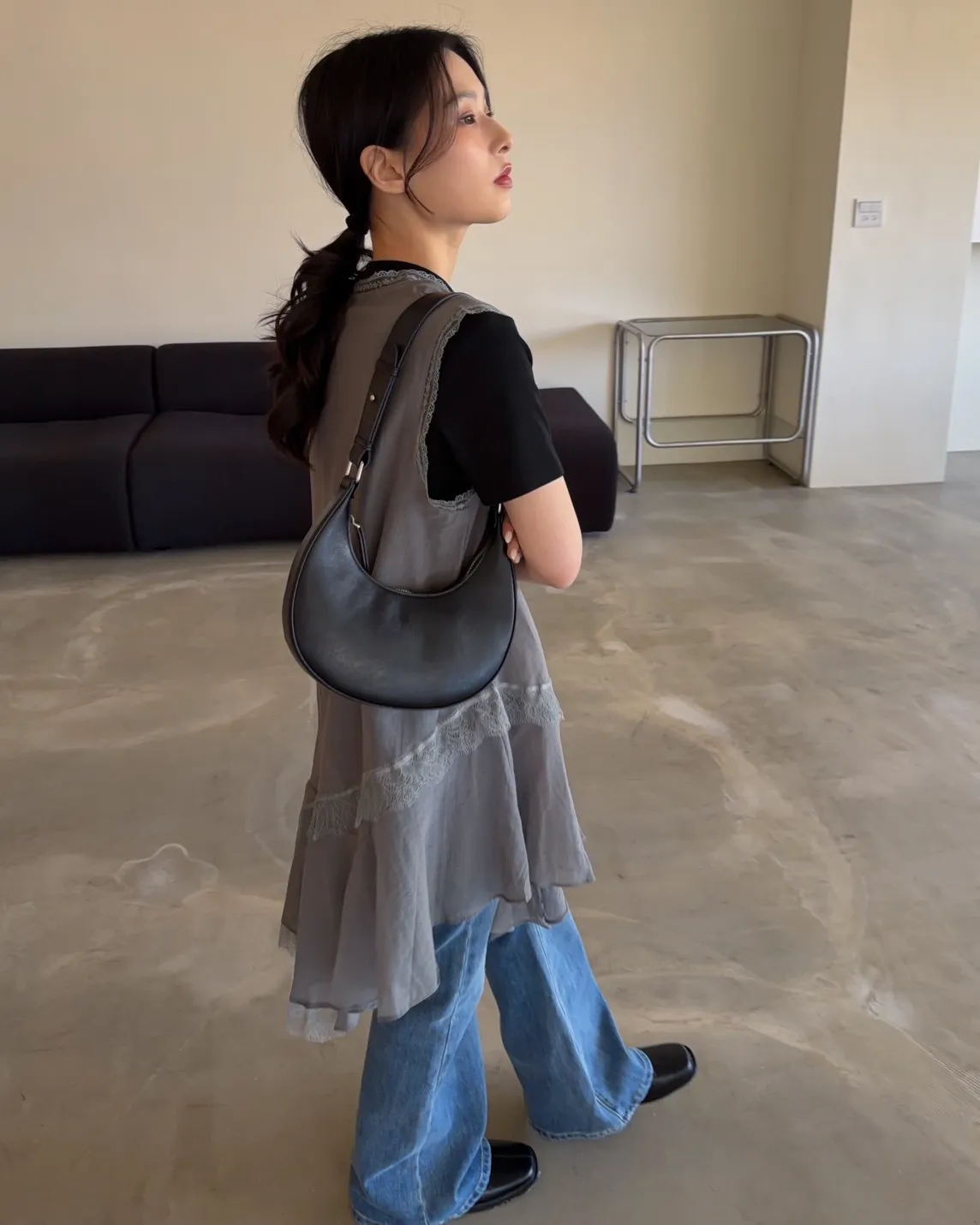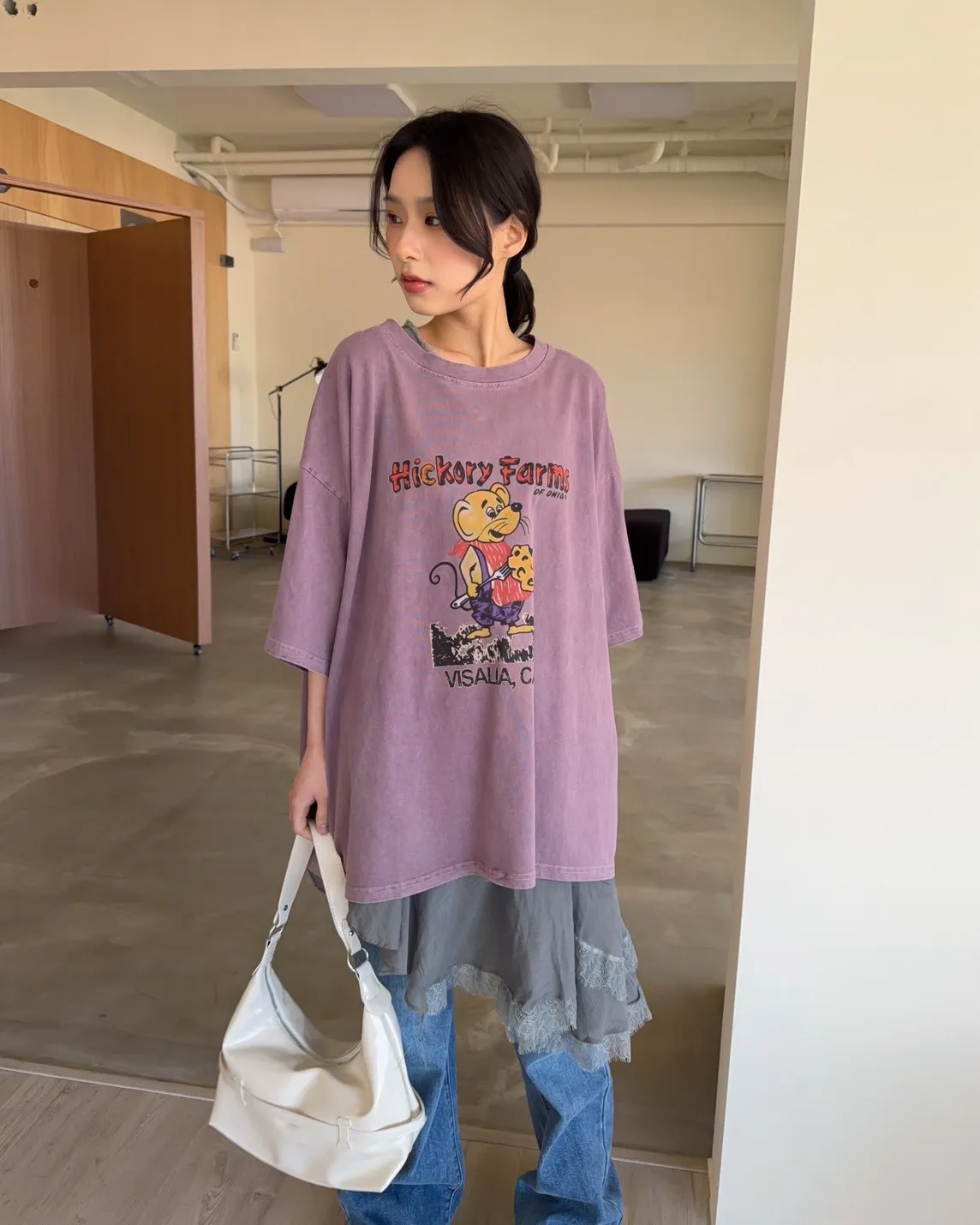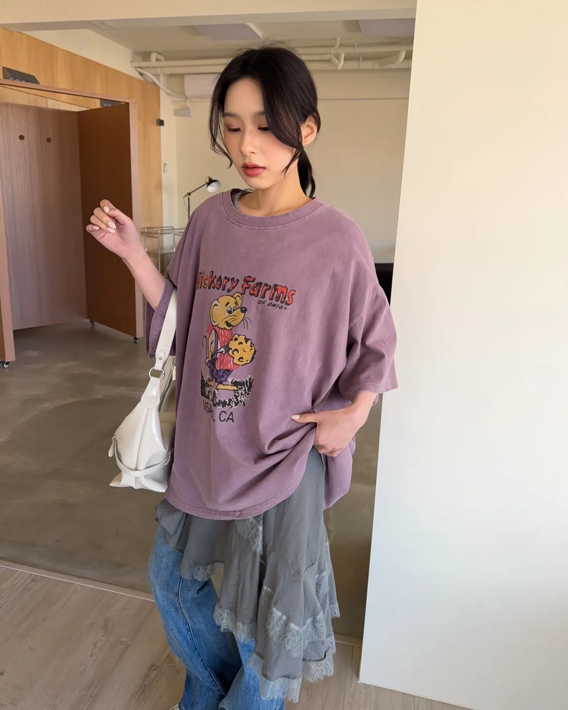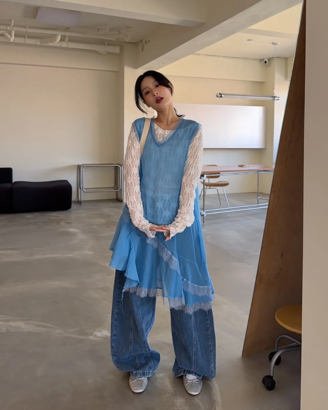 A0045蕾絲滾邊斜擺外搭洋(白/藍/灰)
