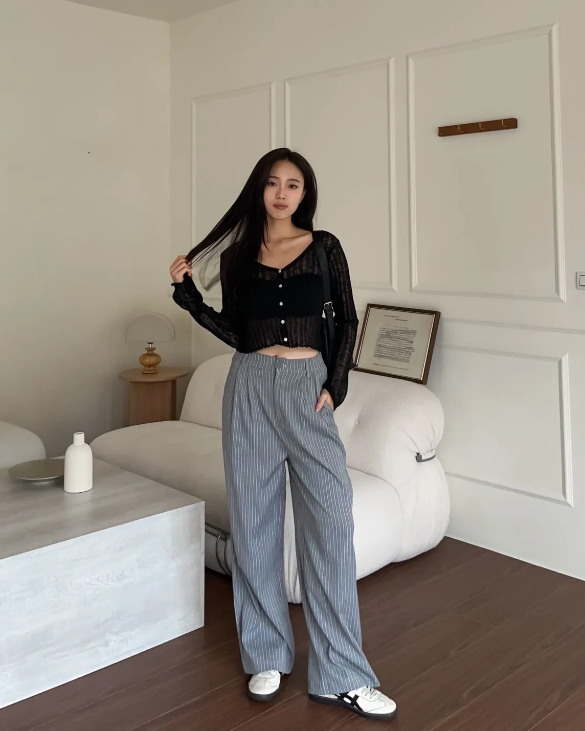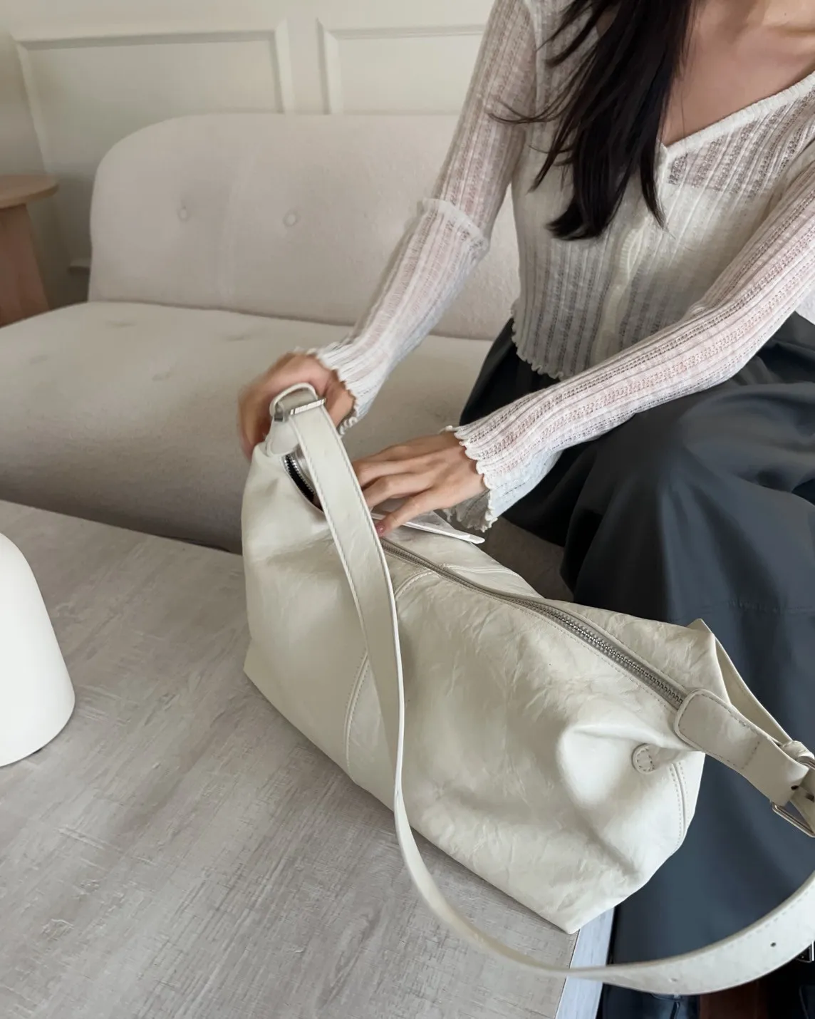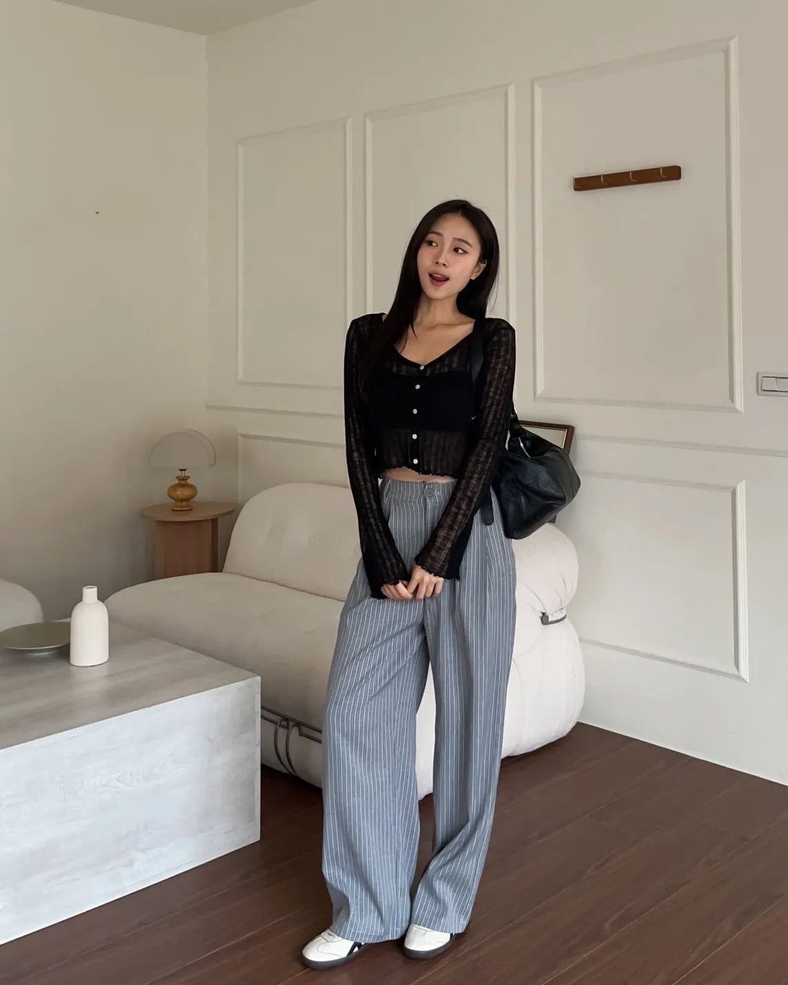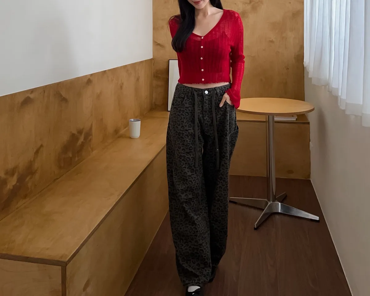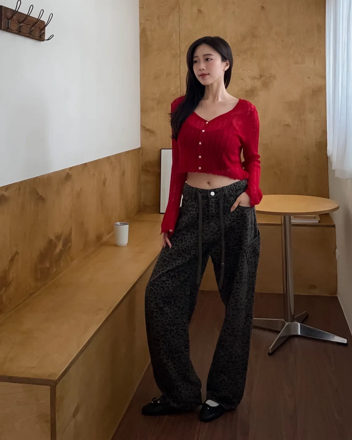 T0042喇叭袖捲邊鏤空針織上衣(米白/紅/灰/黑)