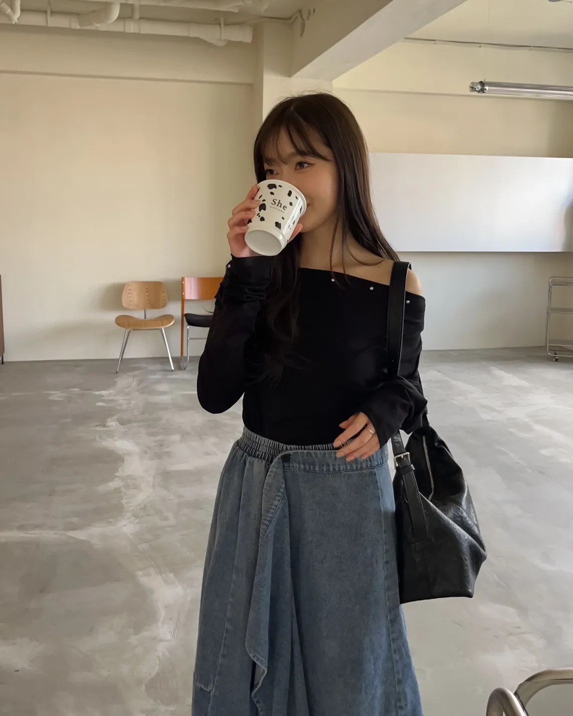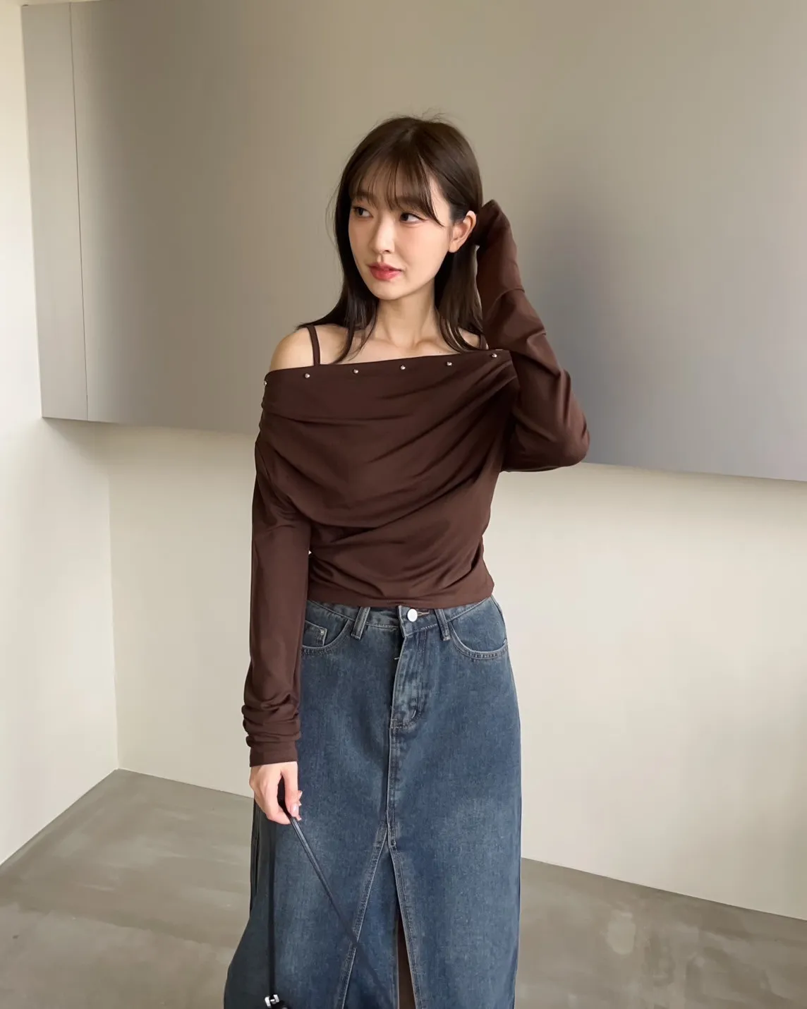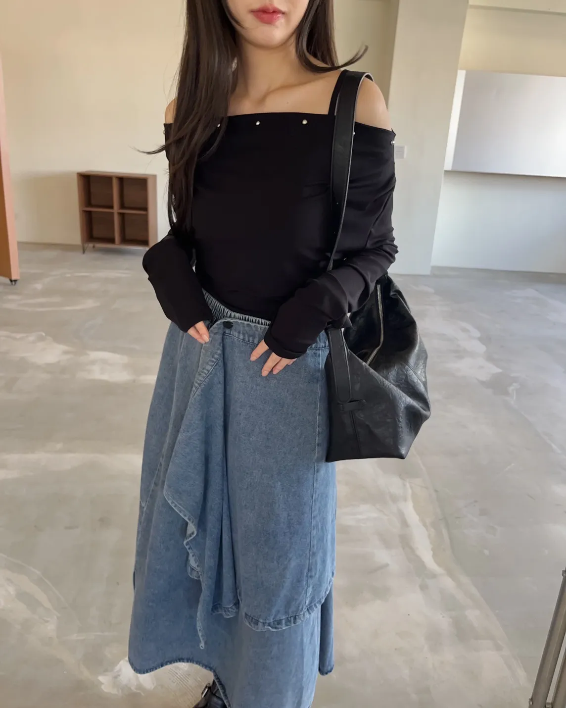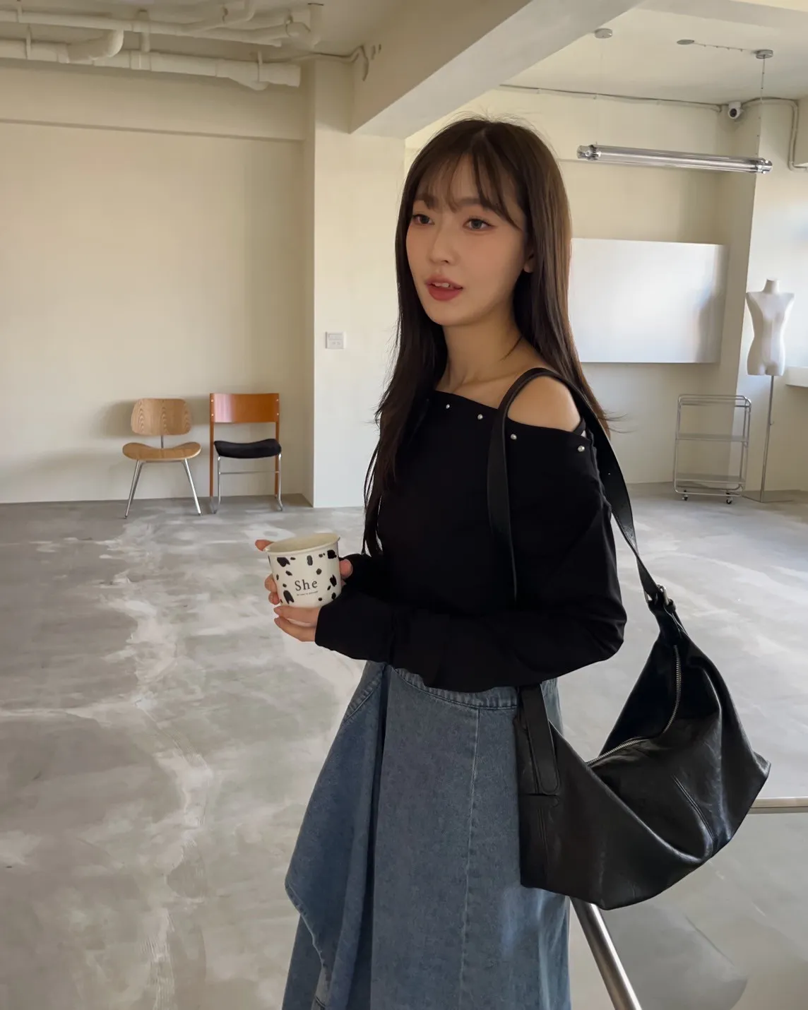 V0082個性假兩件鉚釘縮腰上衣(白/咖啡/灰/黑)(售完不補)