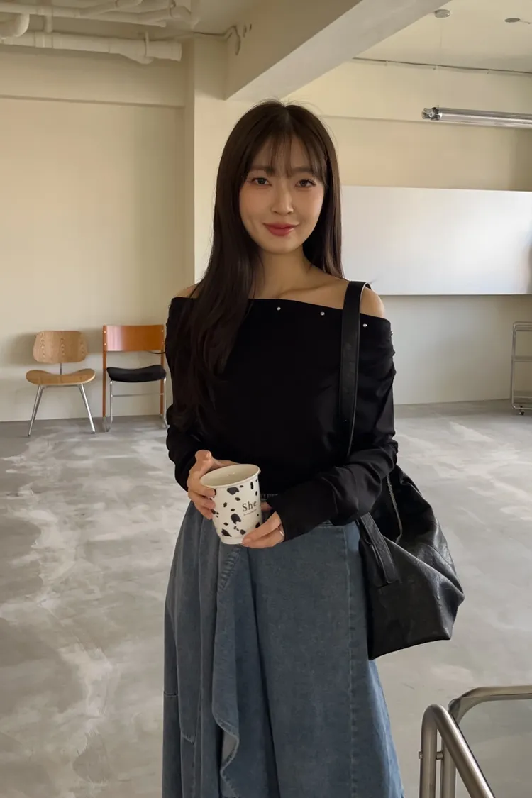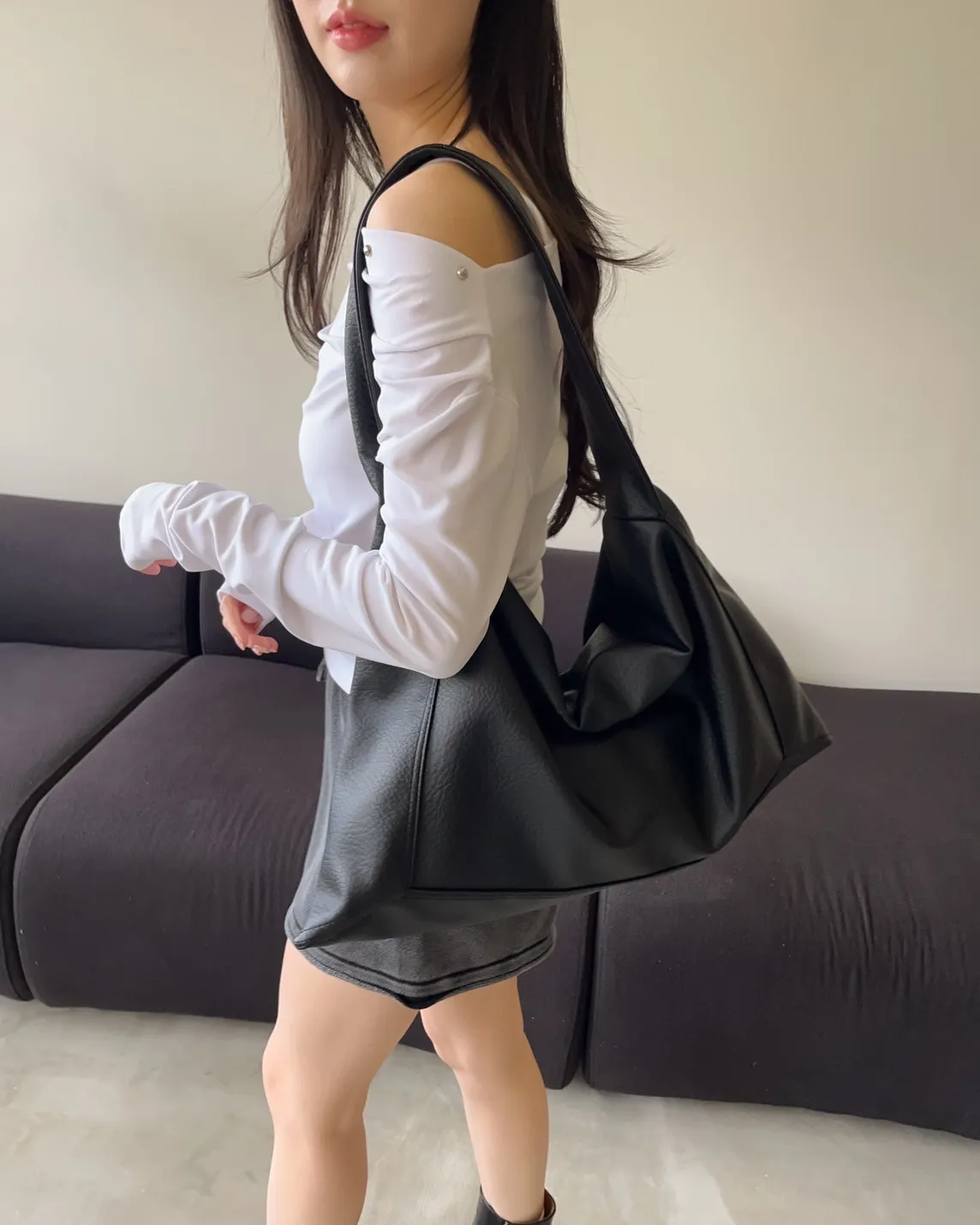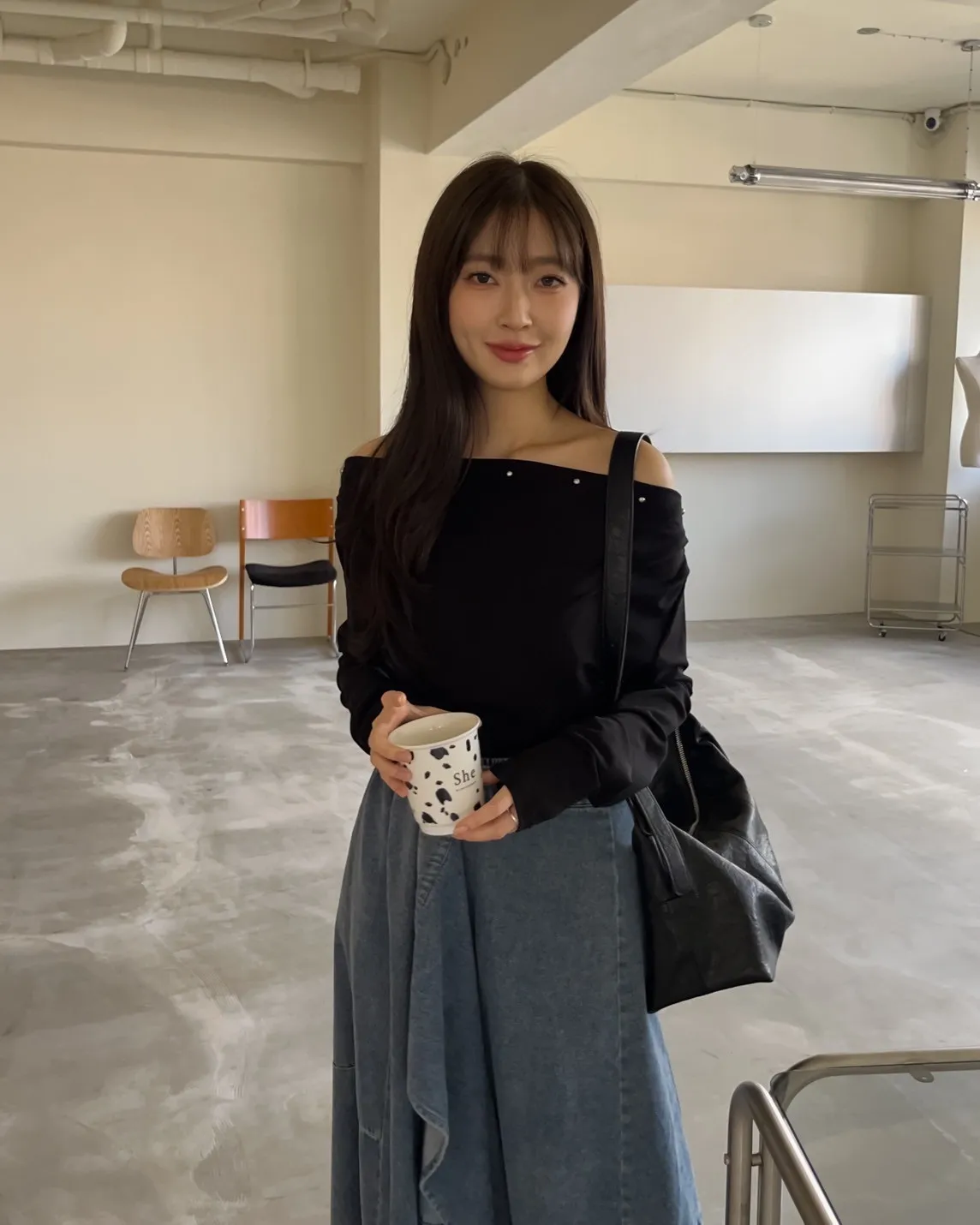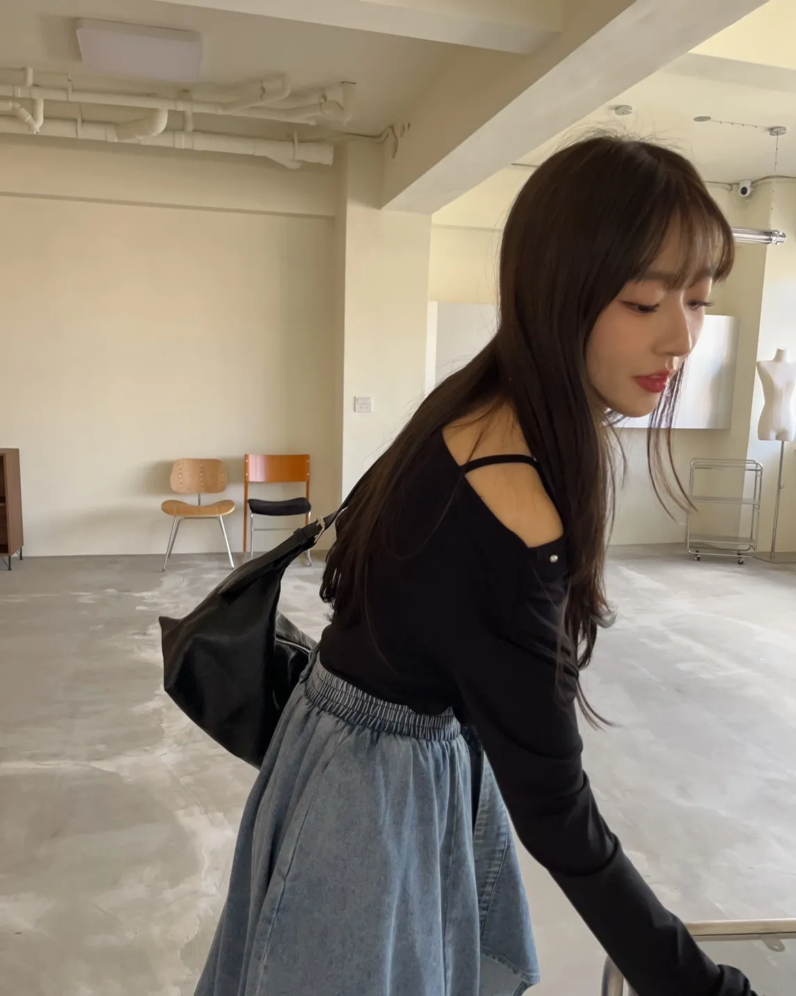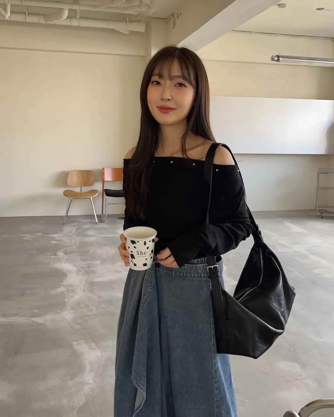 V0082個性假兩件鉚釘縮腰上衣(白/咖啡/灰/黑)(售完不補)