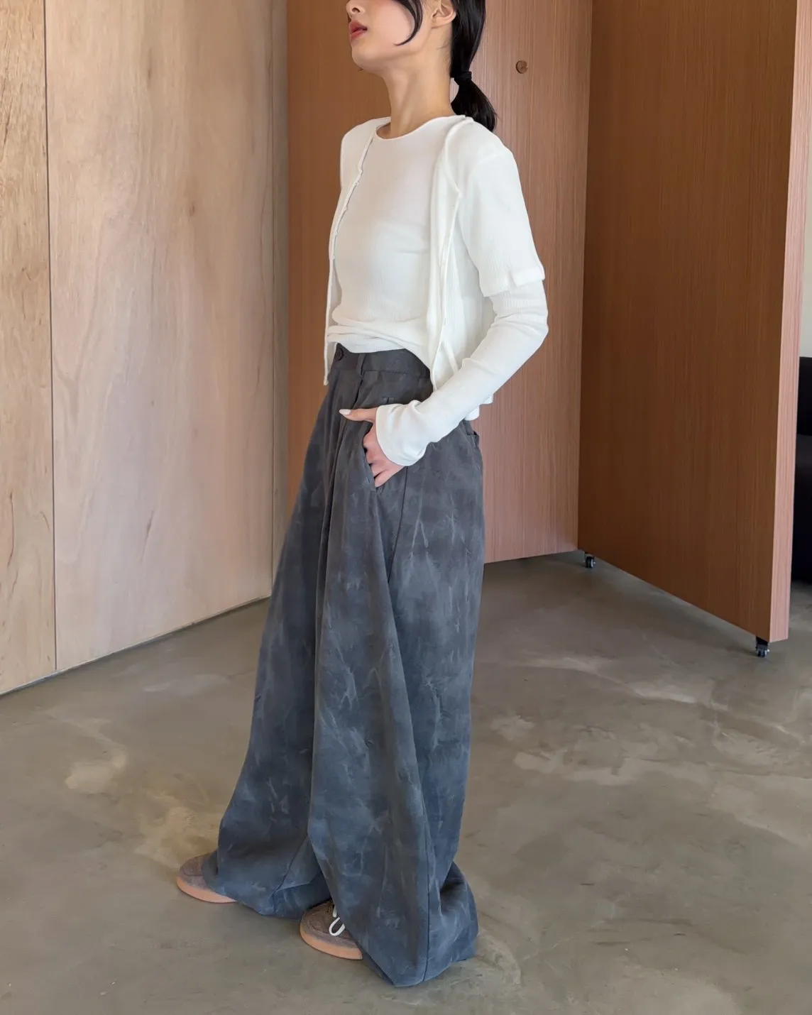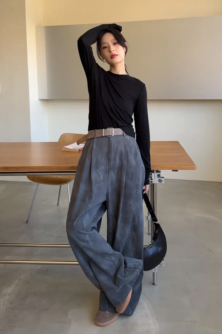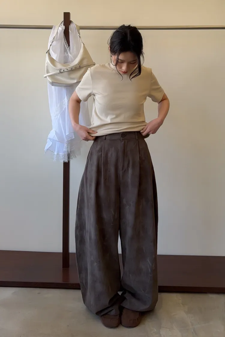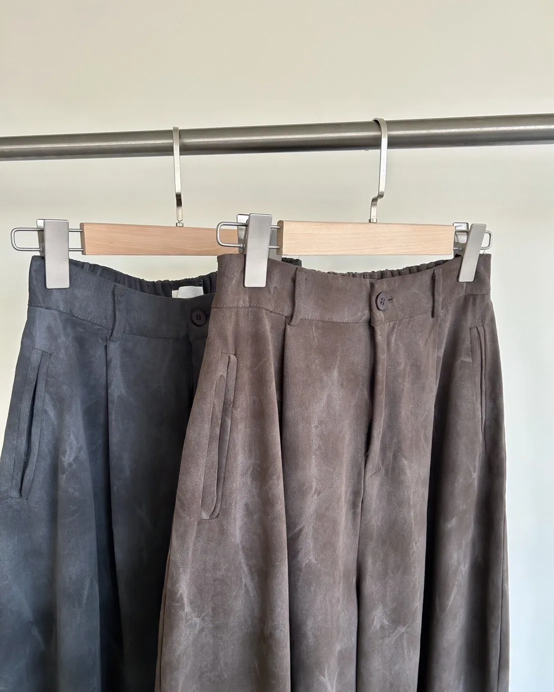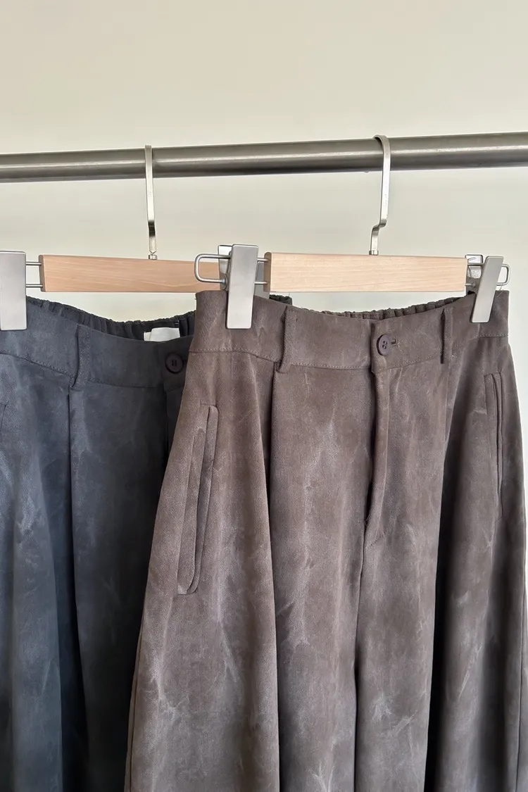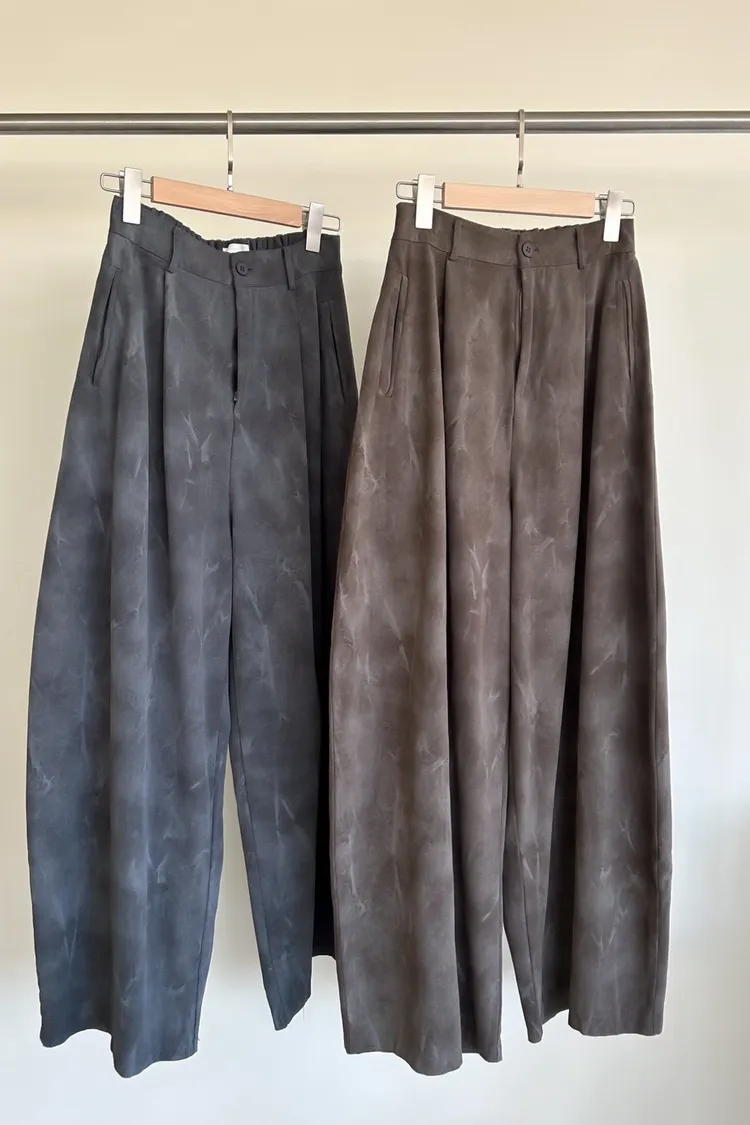 A0041煙霧淡染廓型褲(咖啡/灰)
