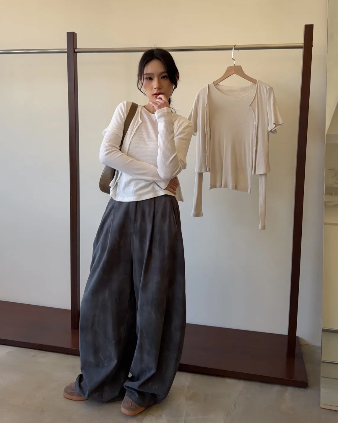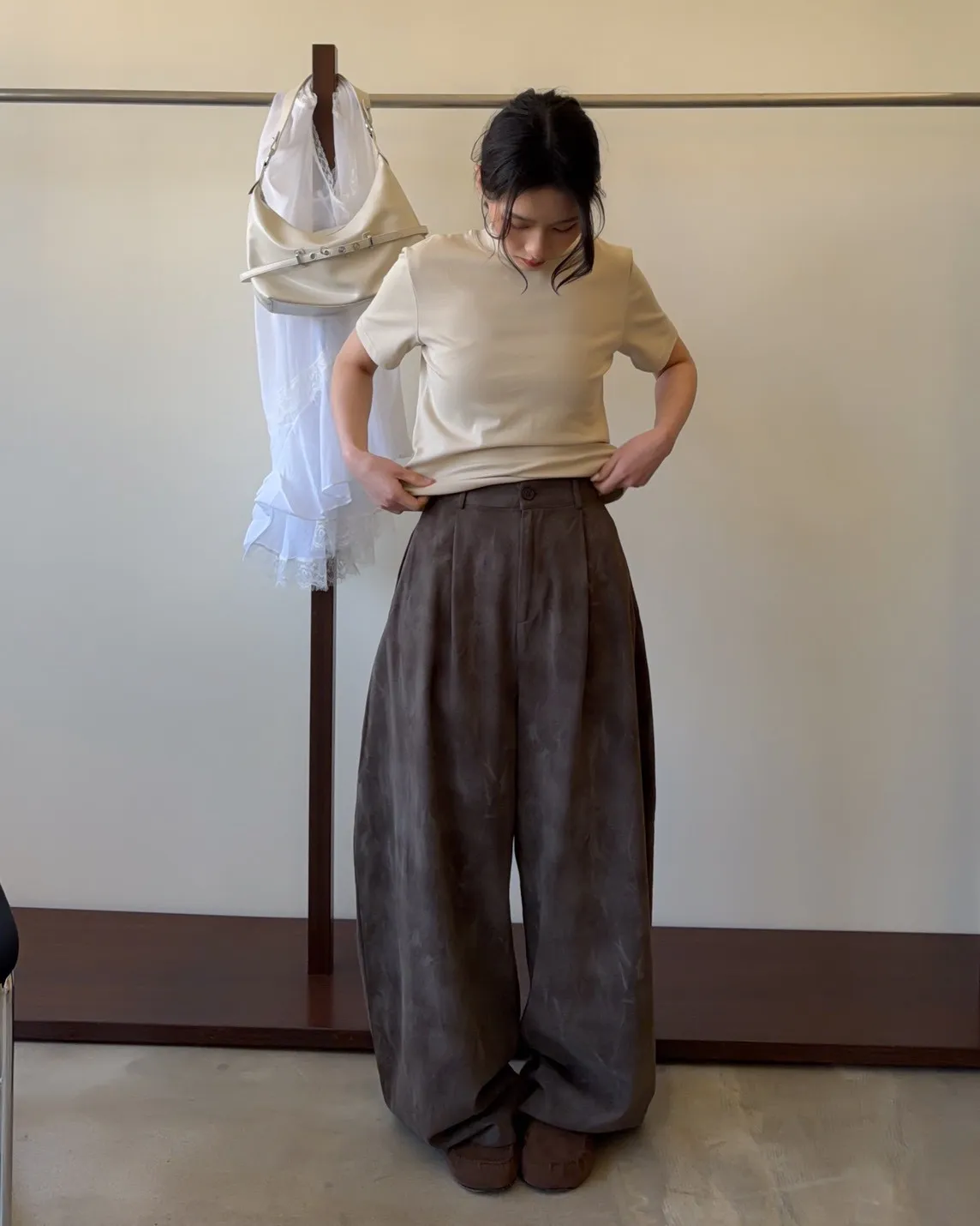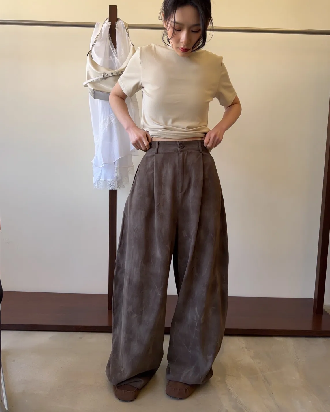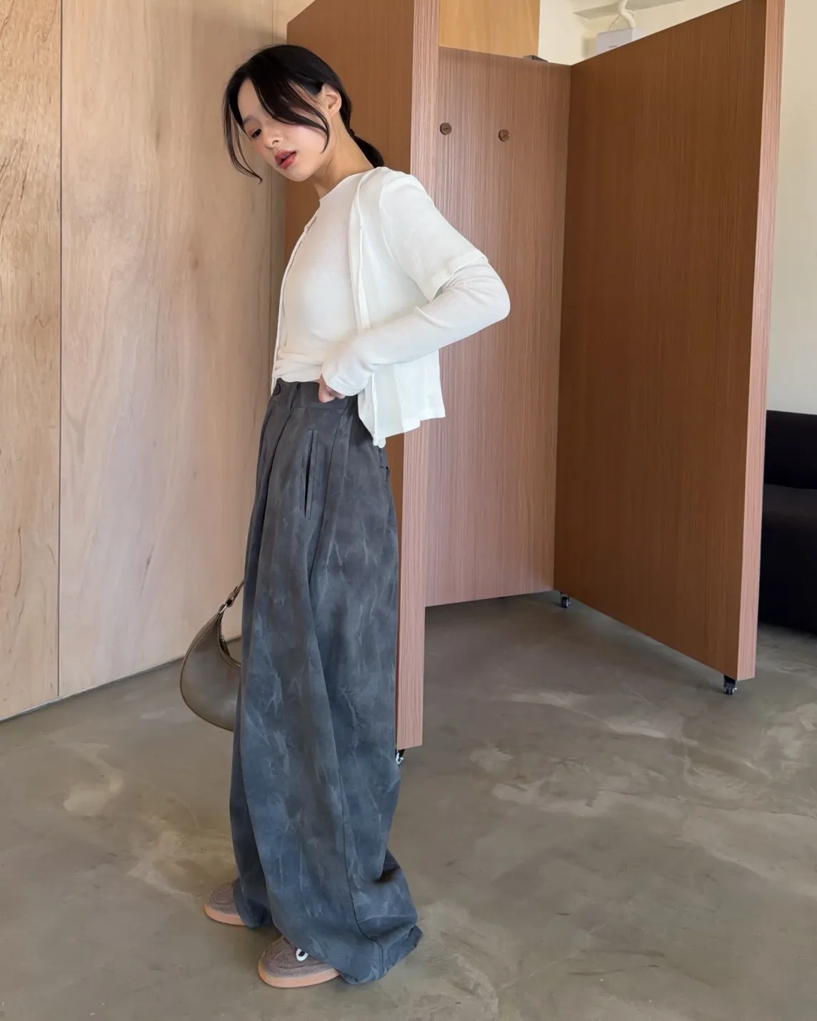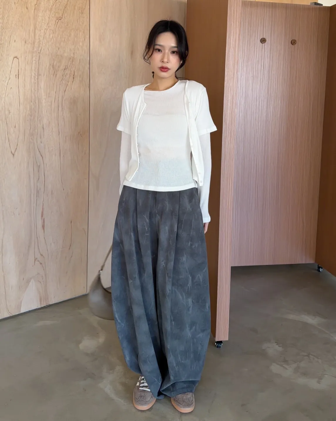 A0041煙霧淡染廓型褲(咖啡/灰)