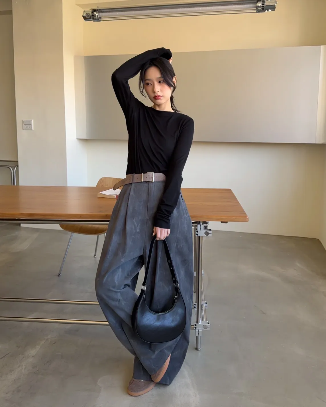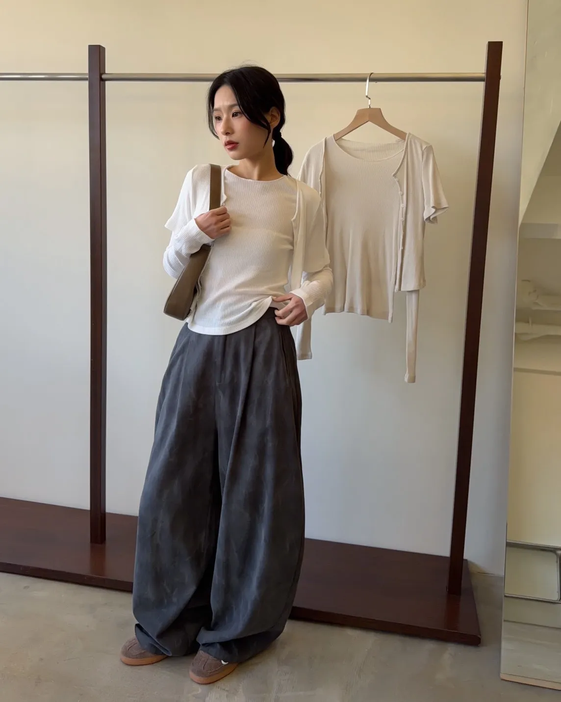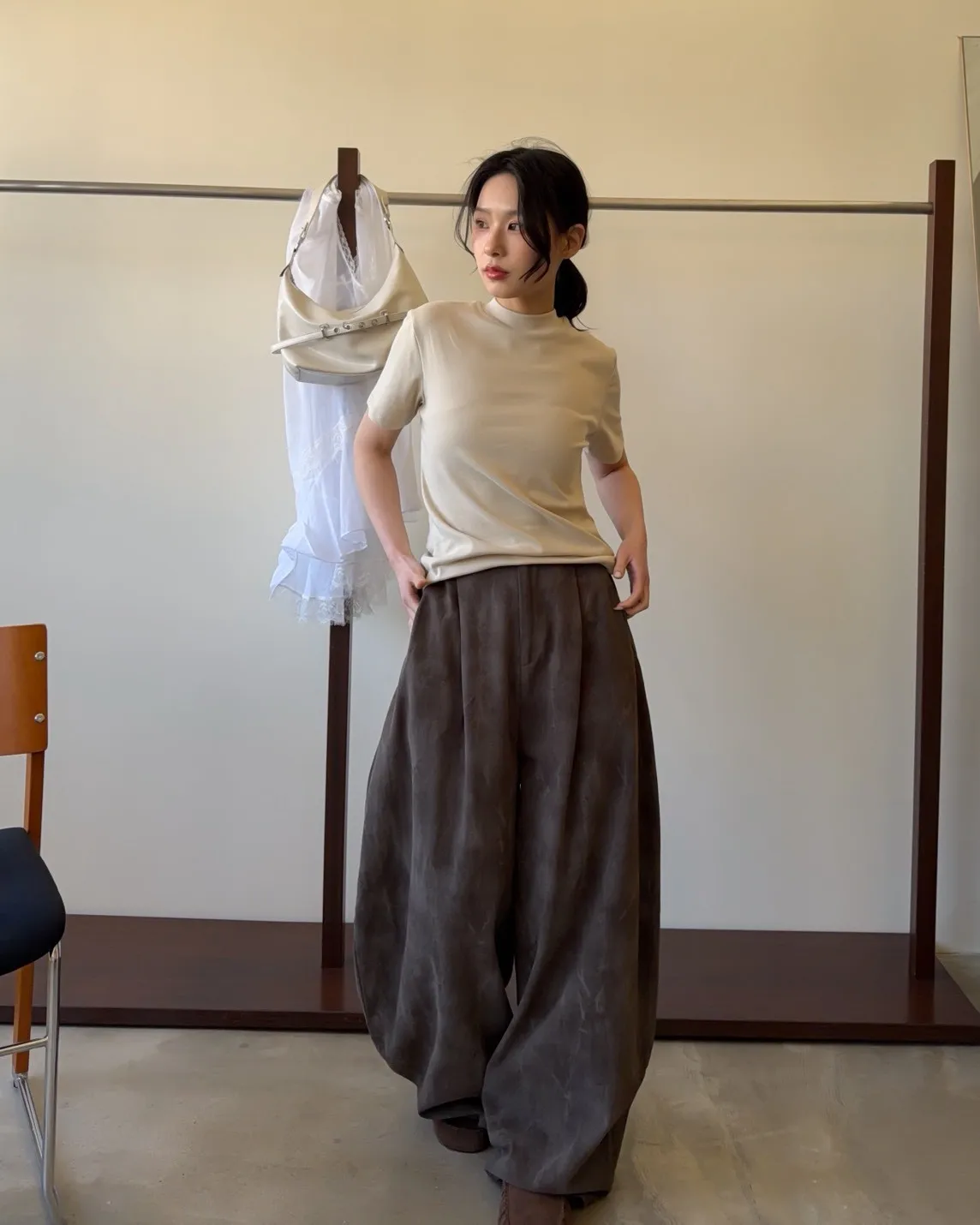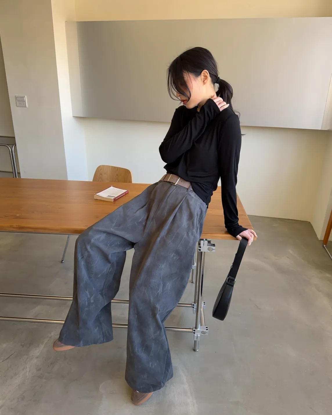 A0041煙霧淡染廓型褲(咖啡/灰)
