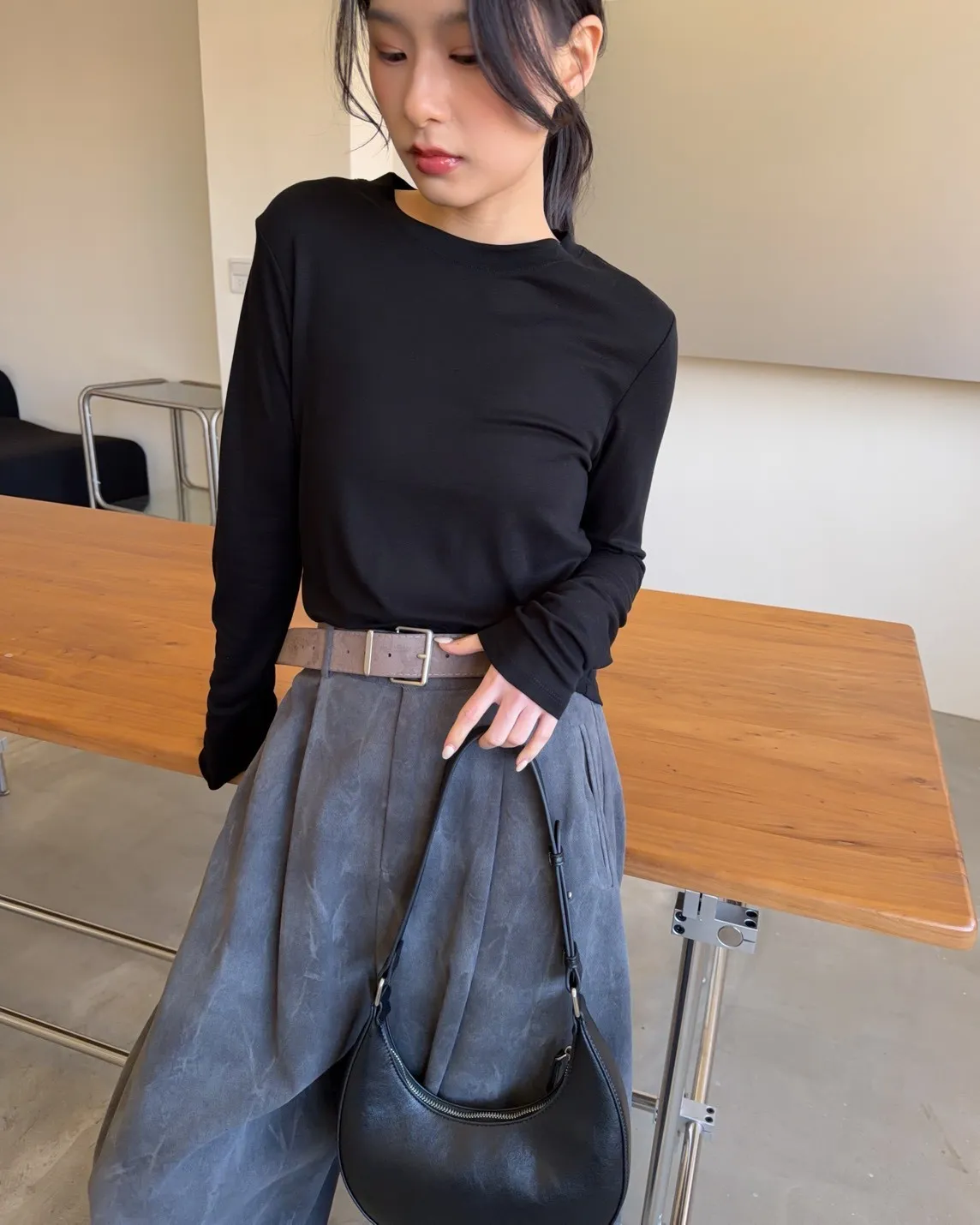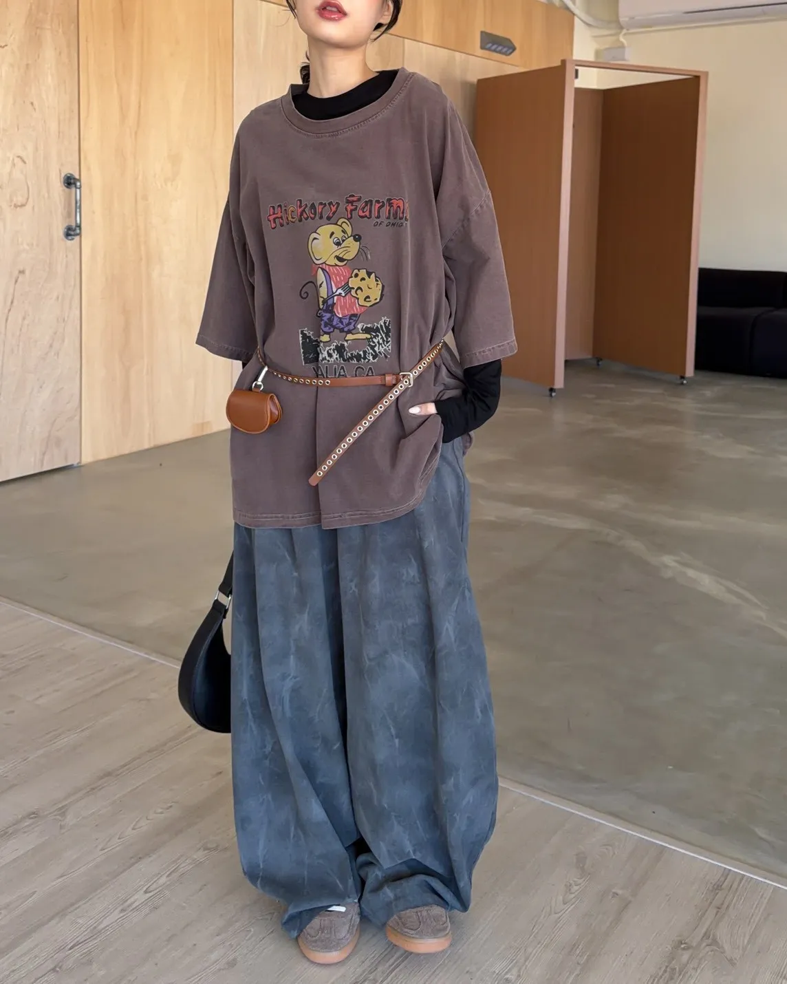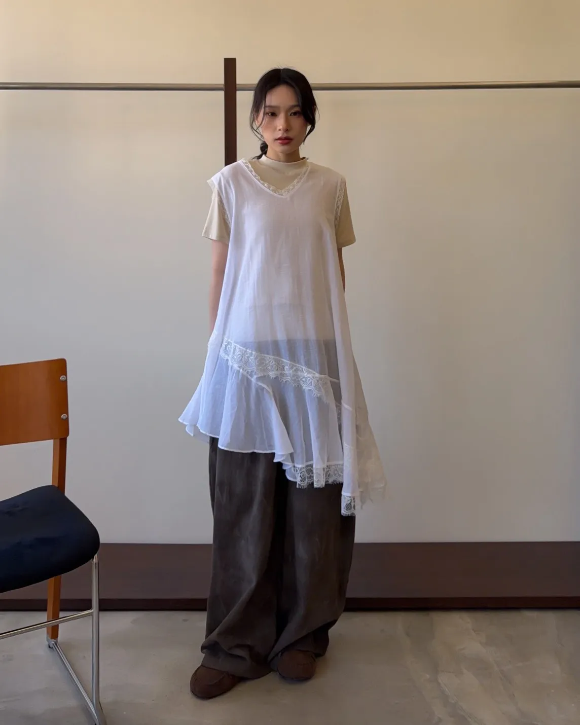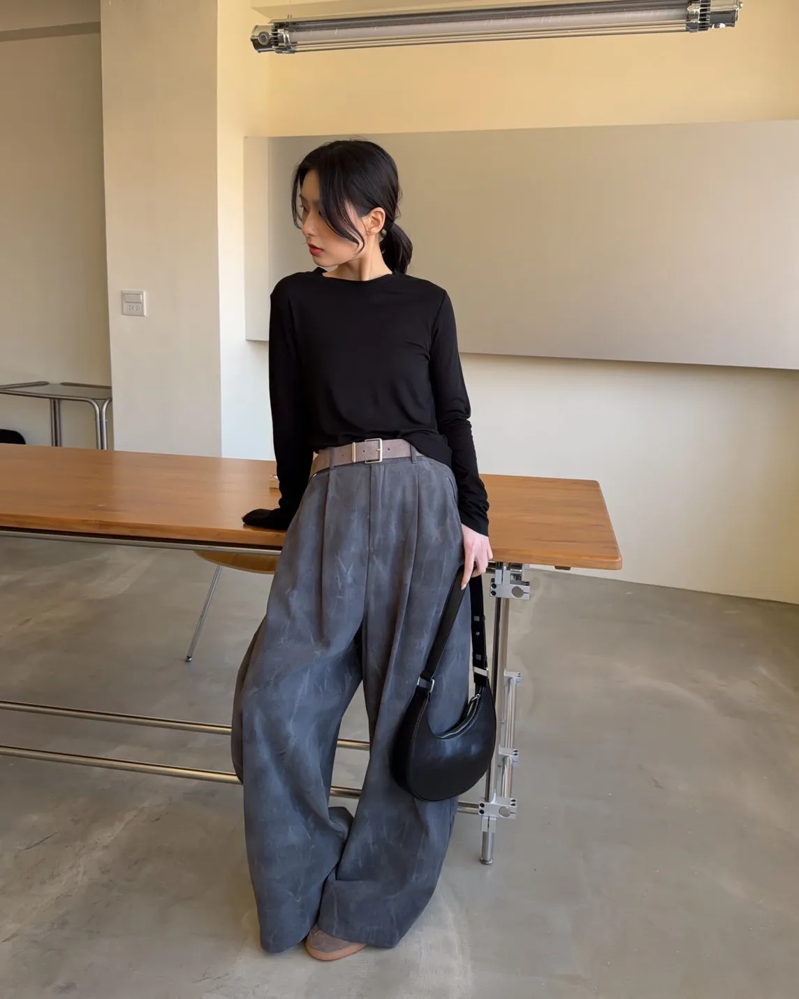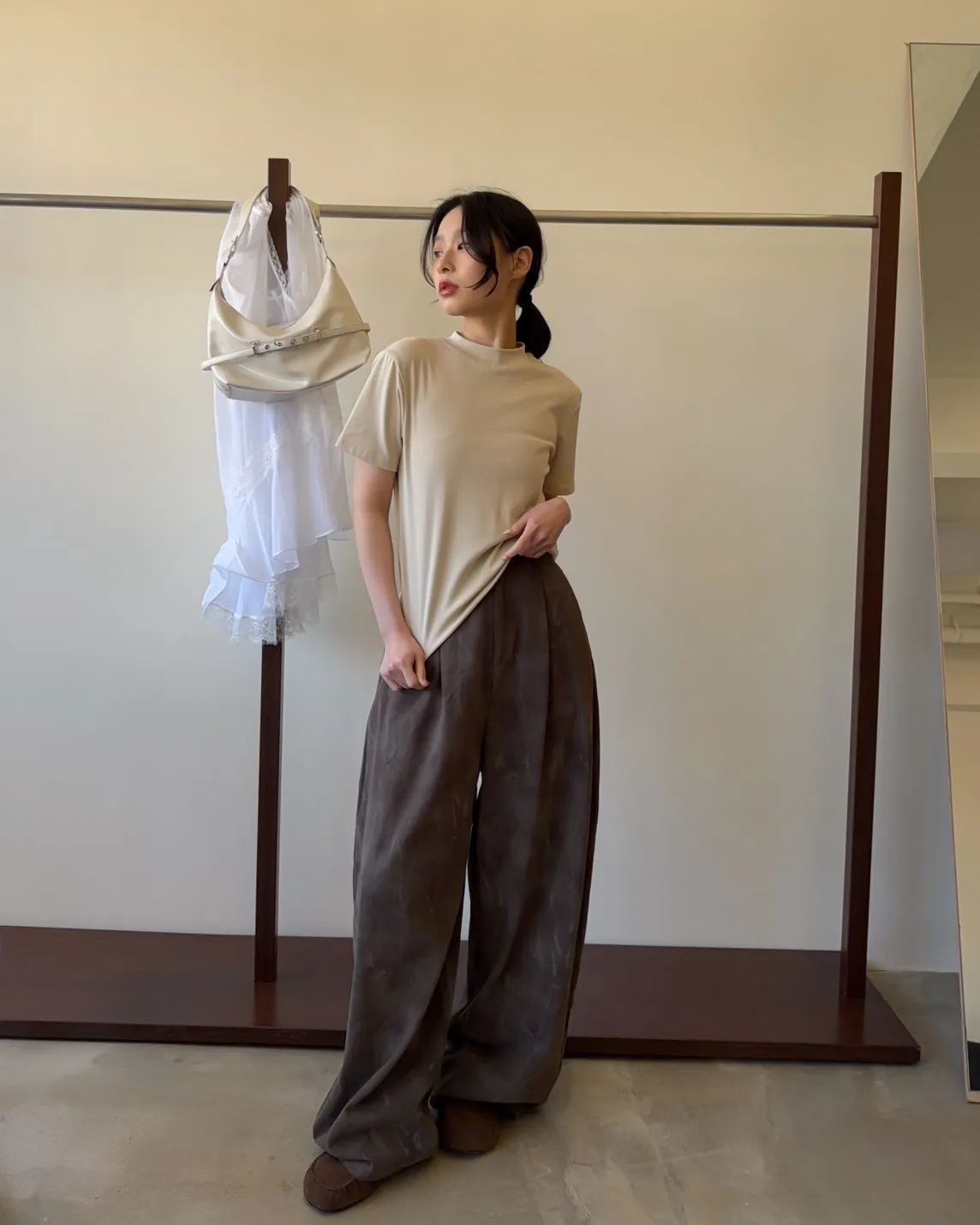 A0041煙霧淡染廓型褲(咖啡/灰)