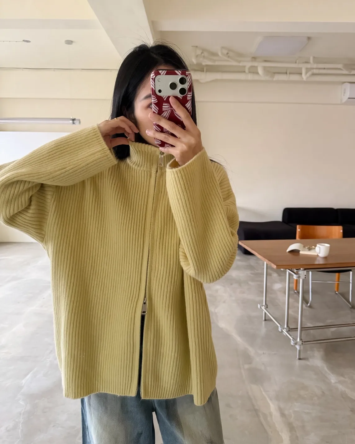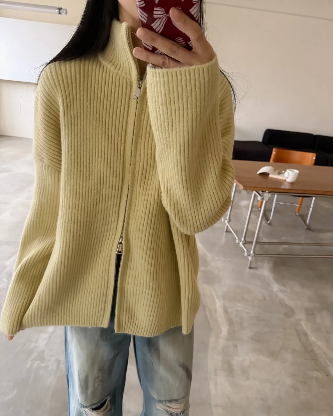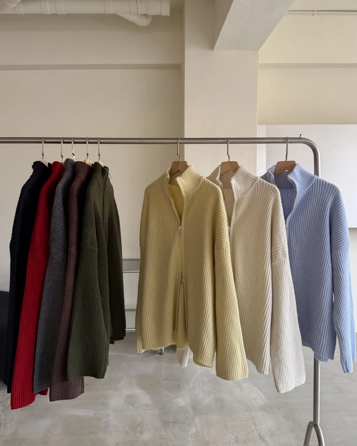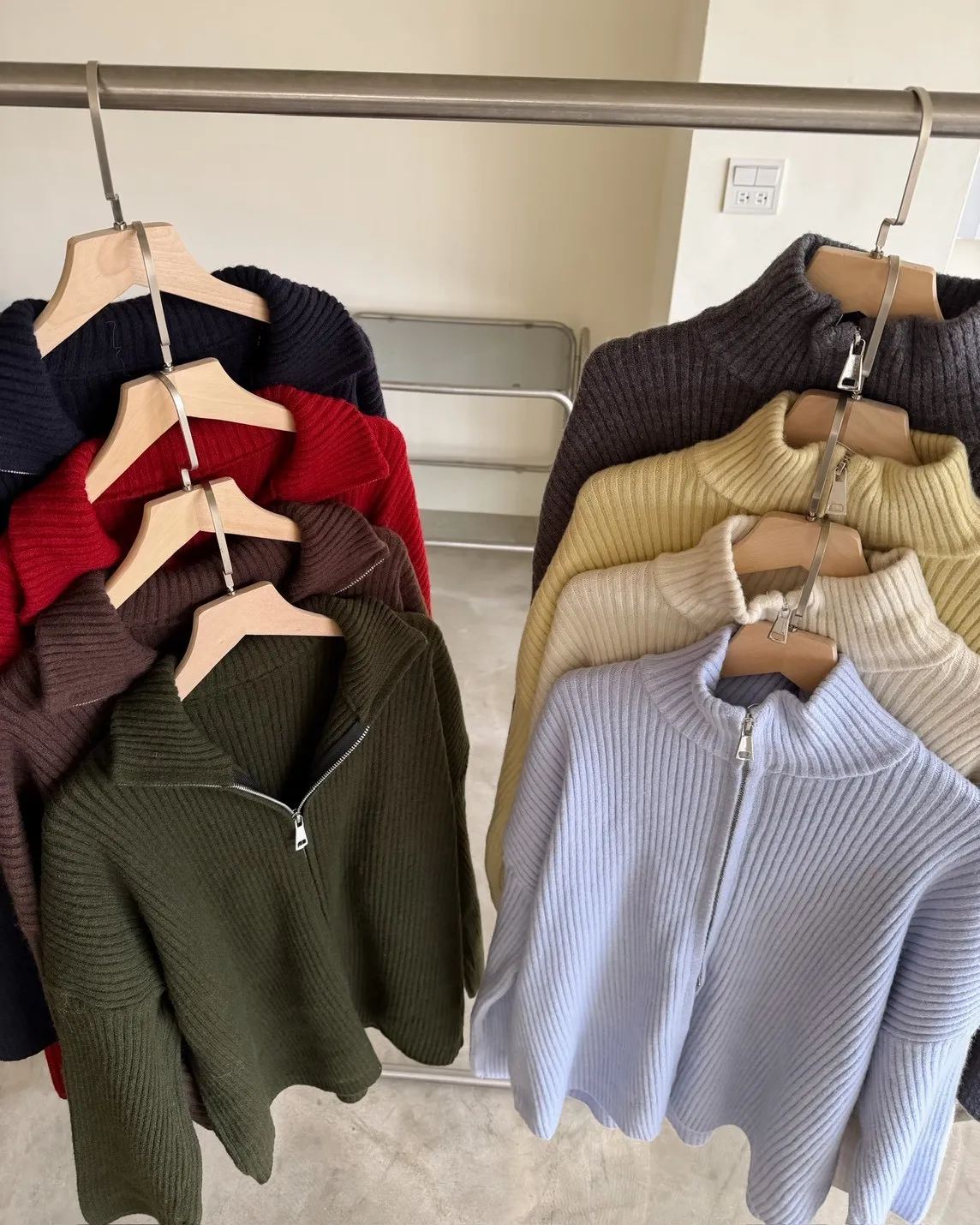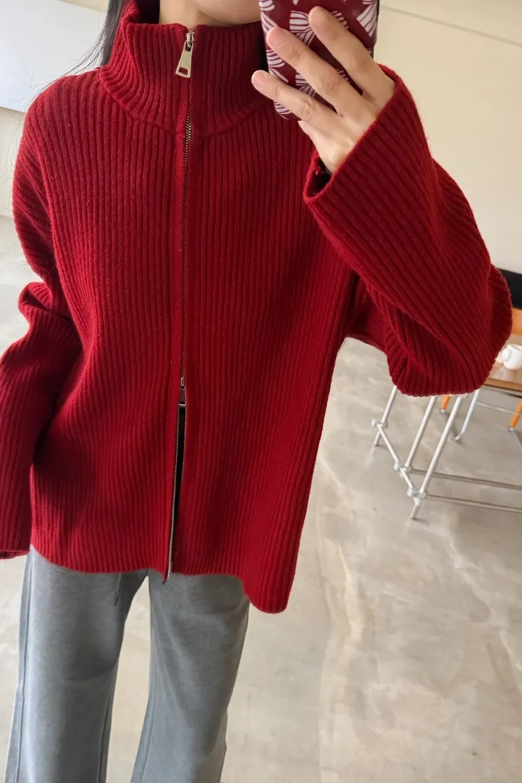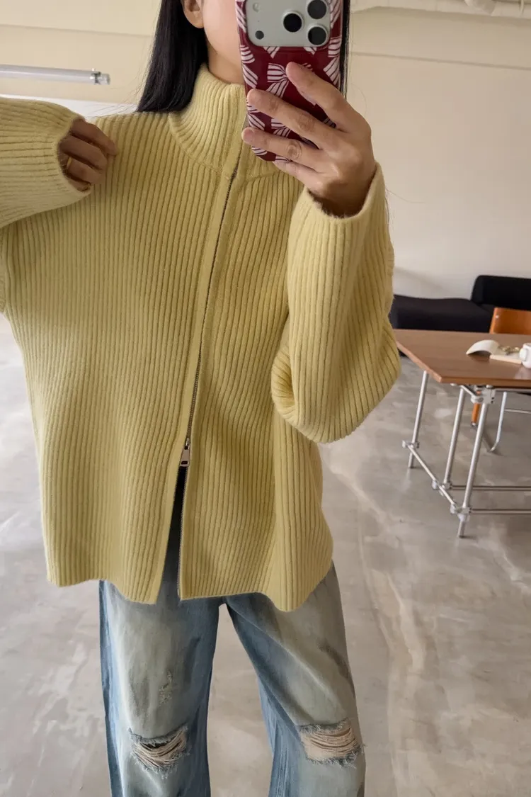 Y0033(八色)多色彩雙頭拉鍊立領坑紋外套(米白/咖啡/黃/紅/綠/淺藍/深藍/灰)