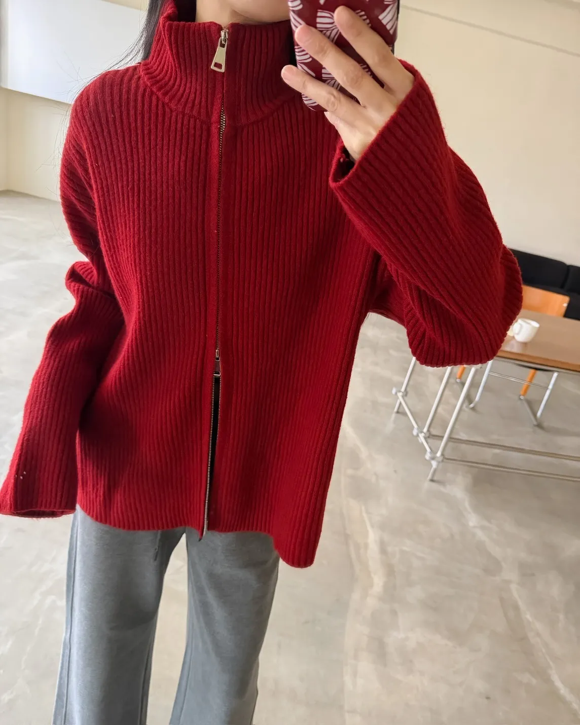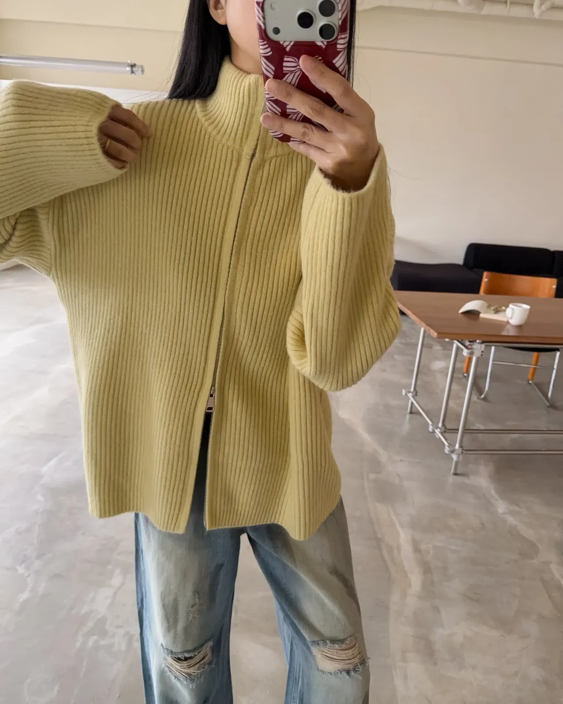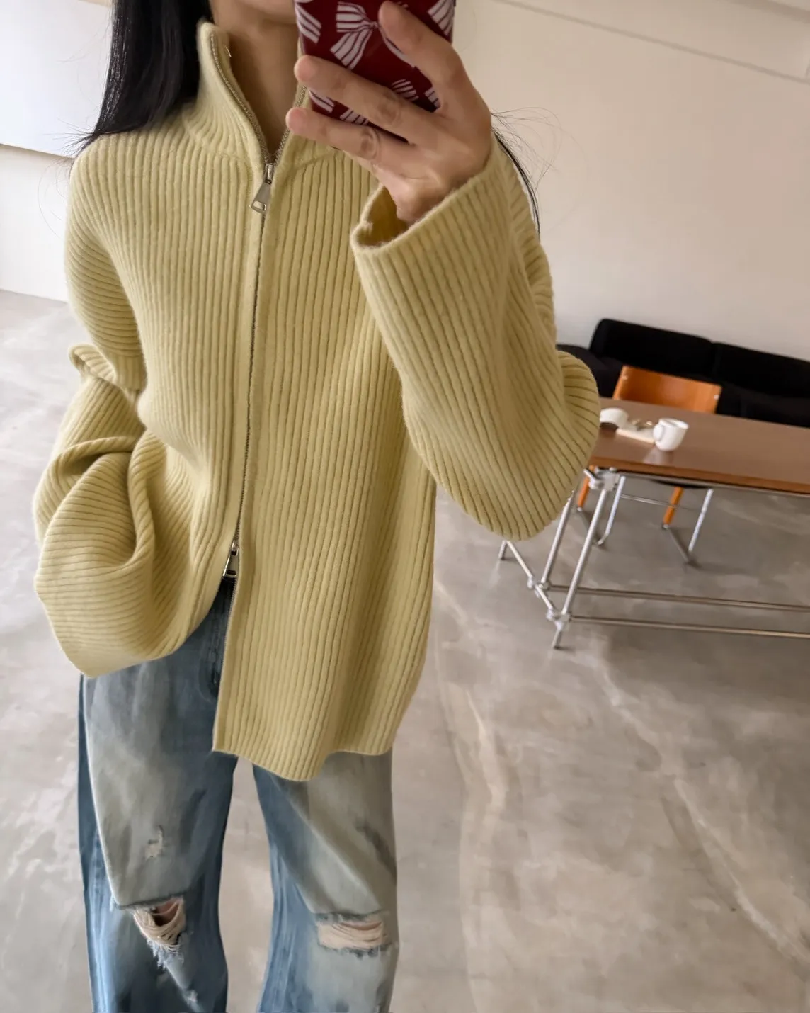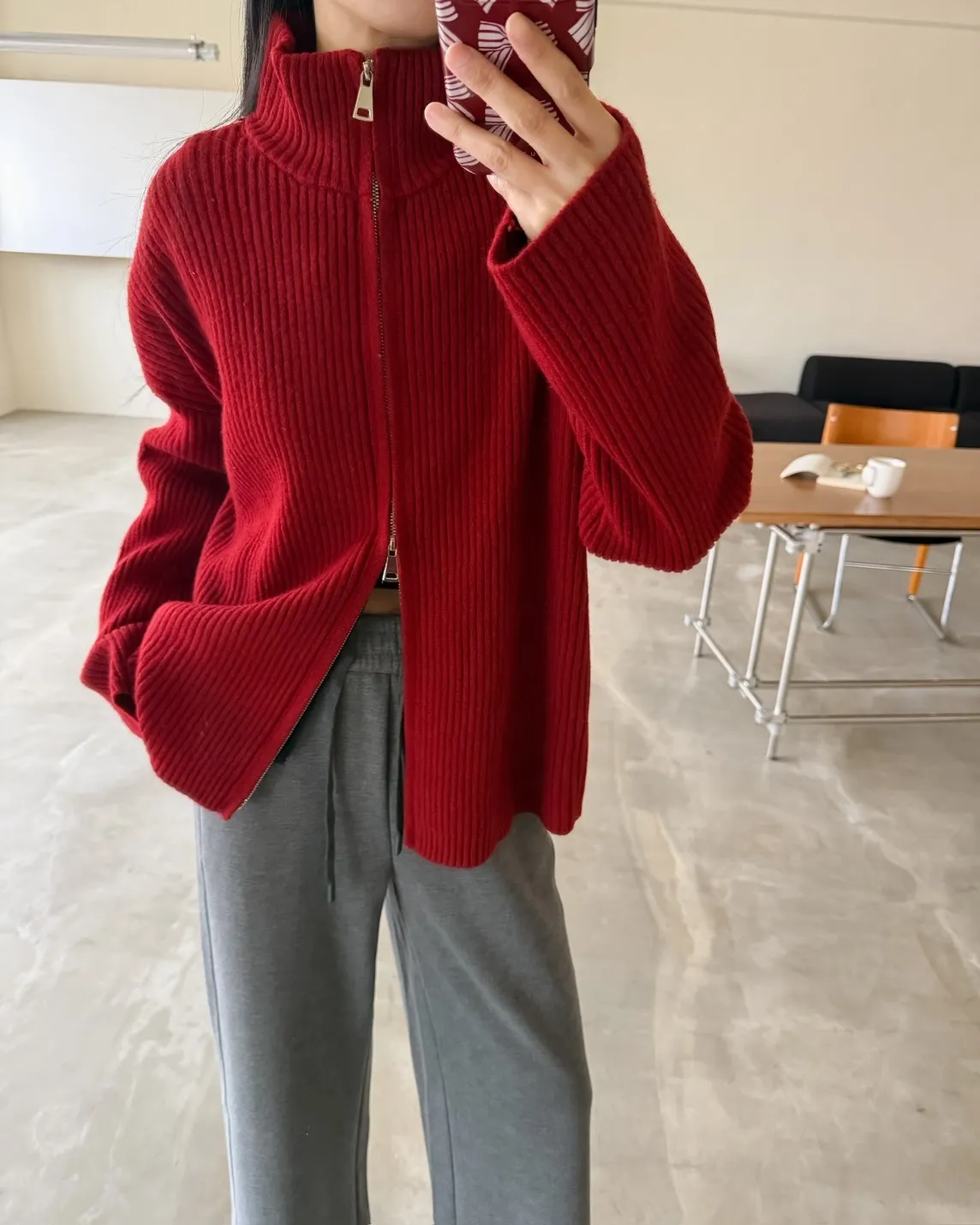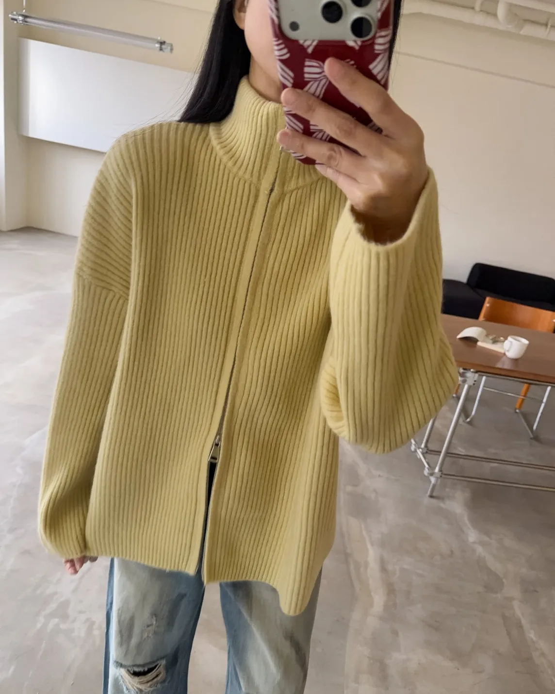 Y0033(八色)多色彩雙頭拉鍊立領坑紋外套(米白/咖啡/黃/紅/綠/淺藍/深藍/灰)