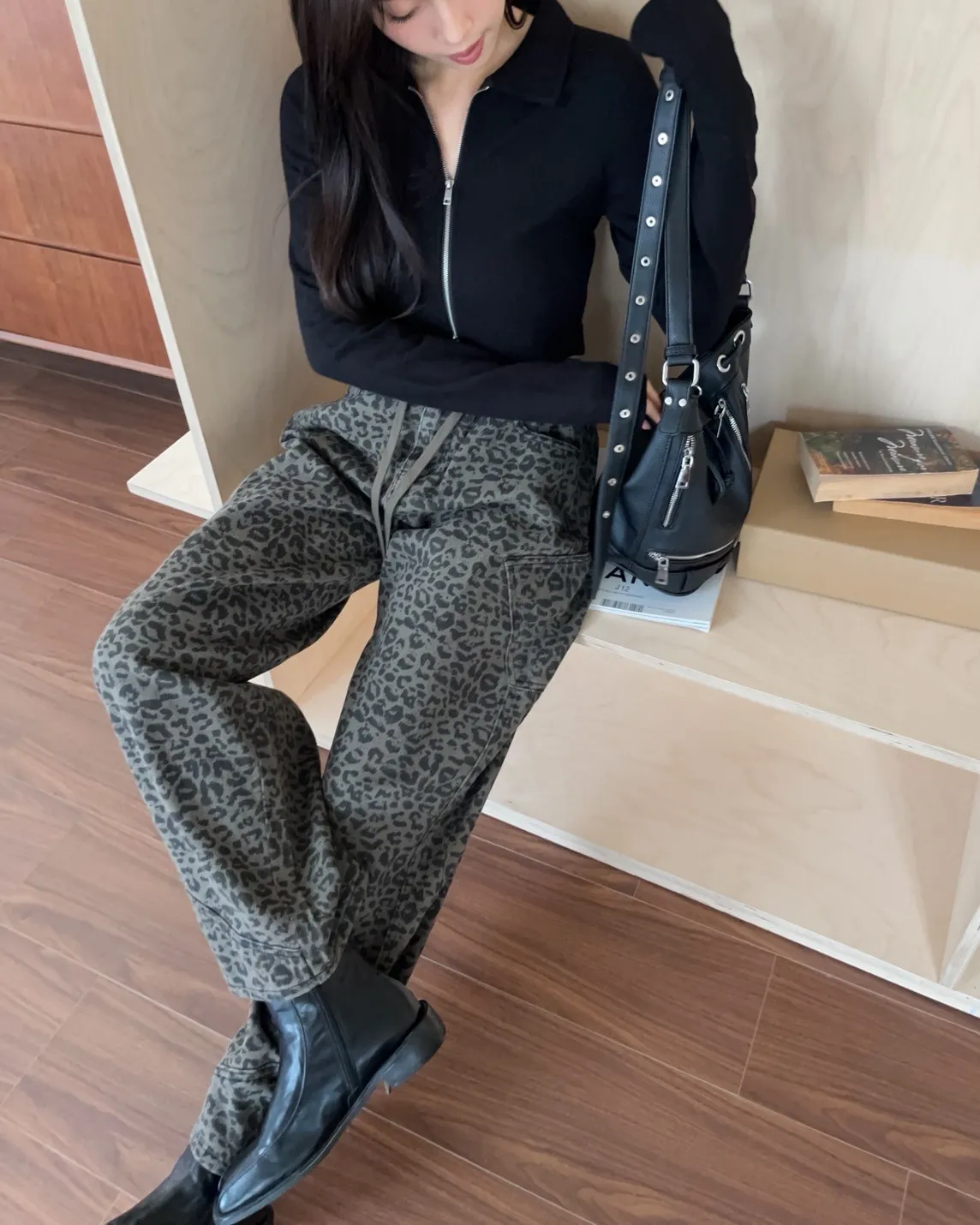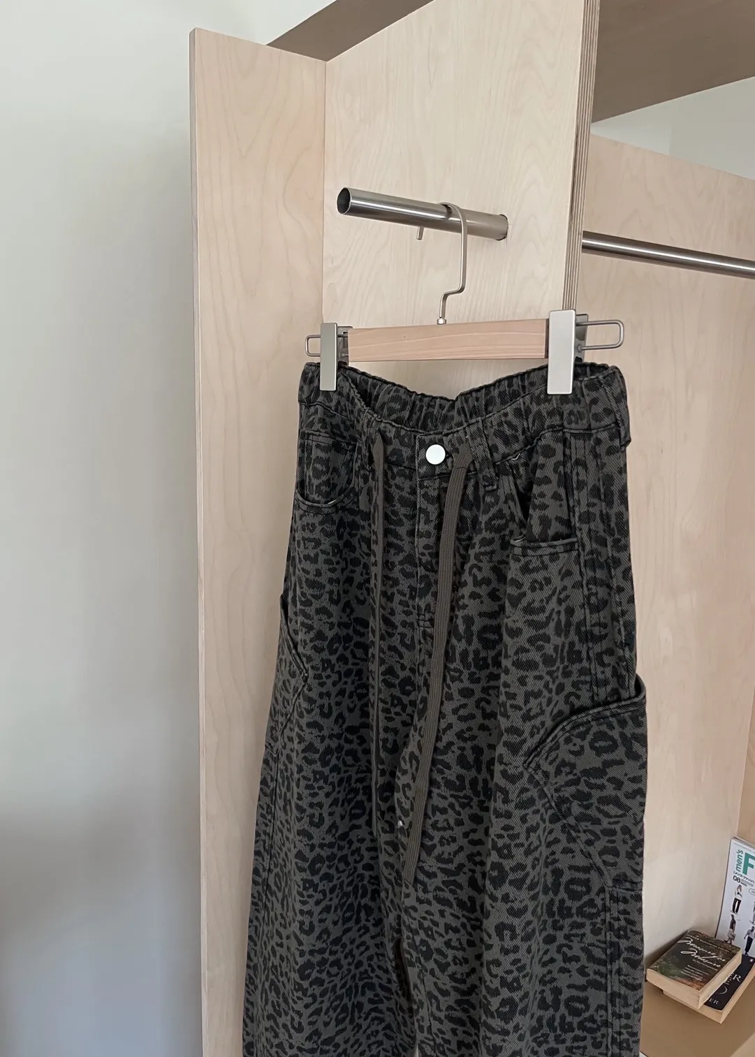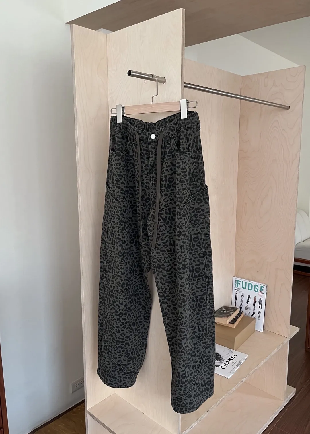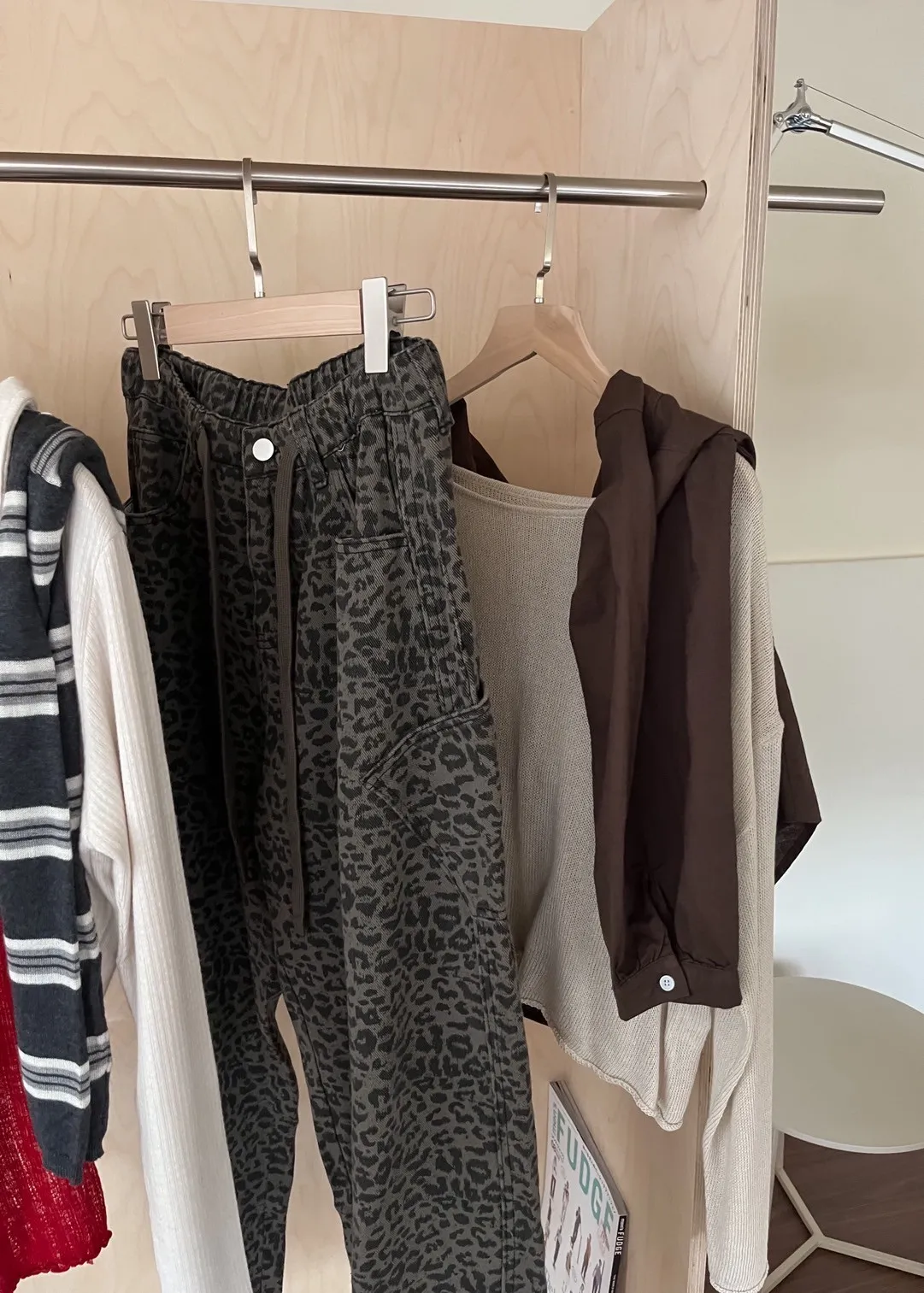 抽繩全鬆緊 建議尺寸S-L 兩側口袋 兩邊斜口袋 豹紋 褲腳有按扣 可以反折固定 小個女孩也安心入手~