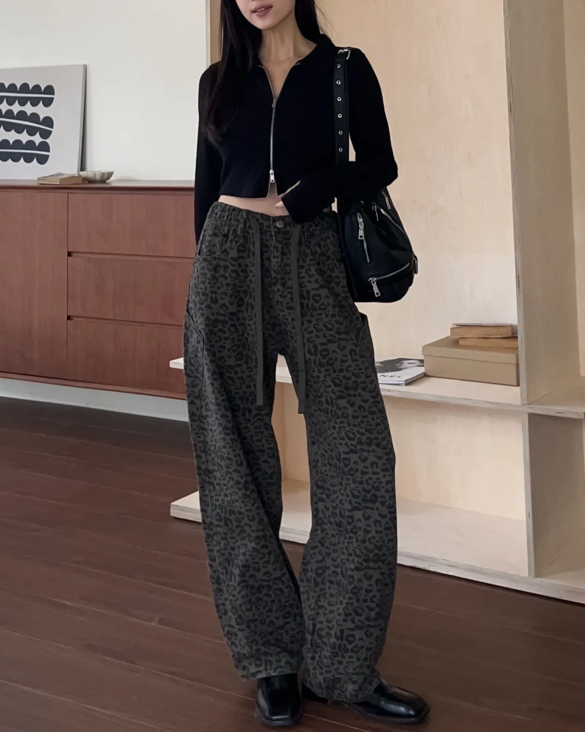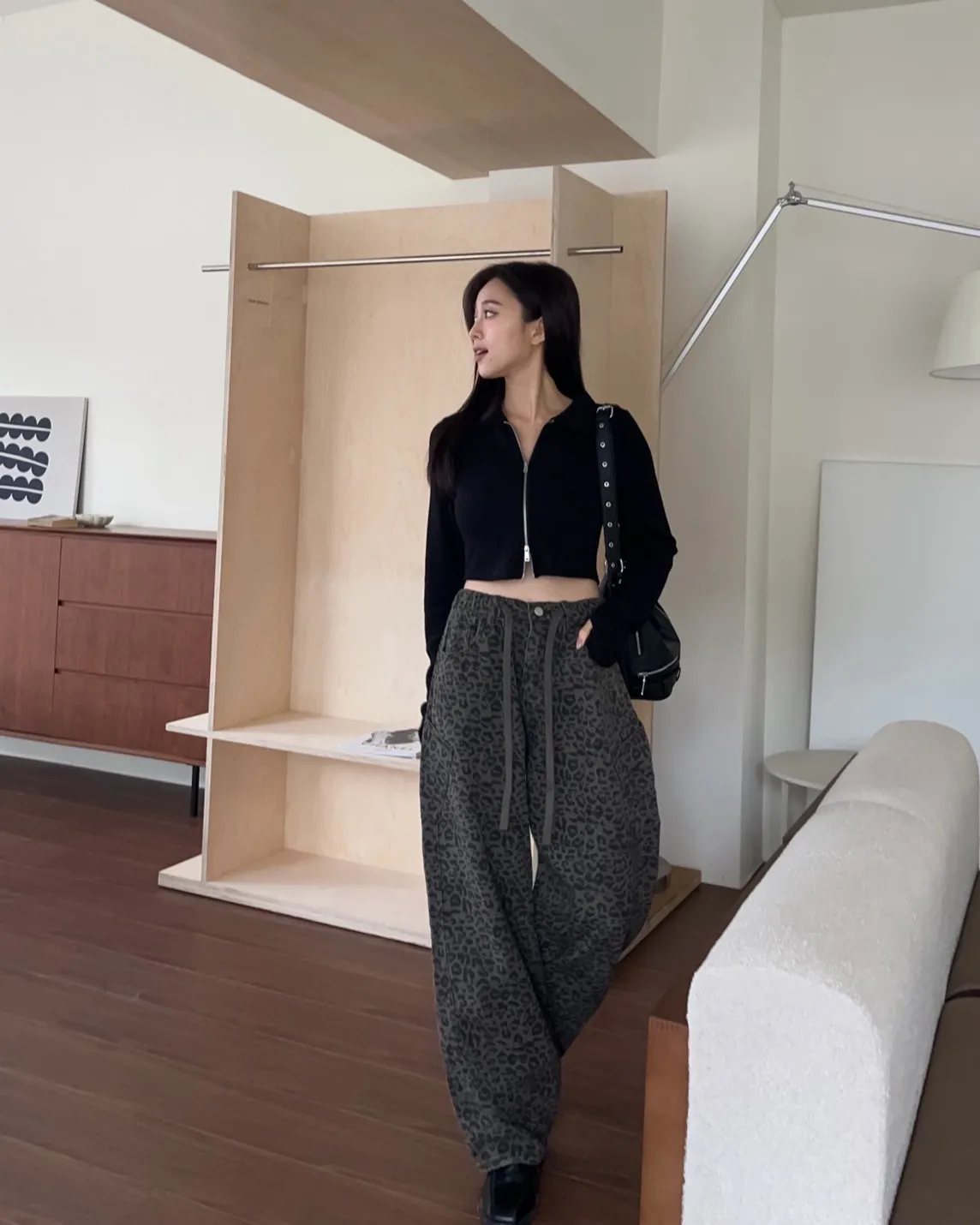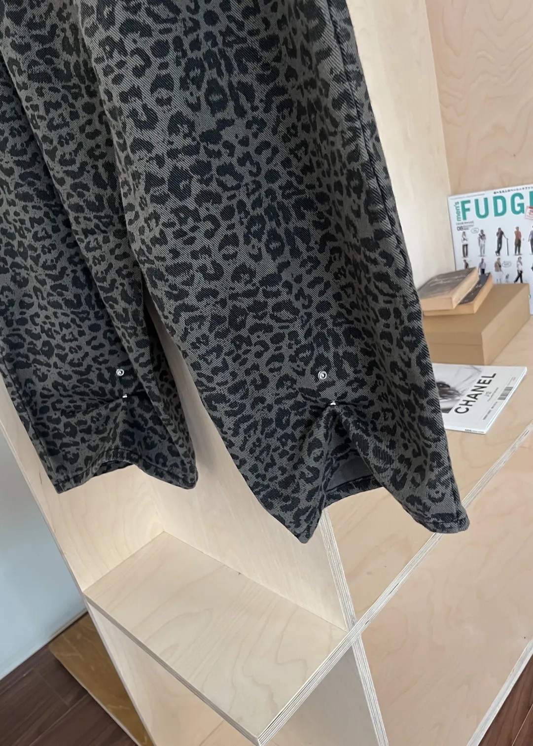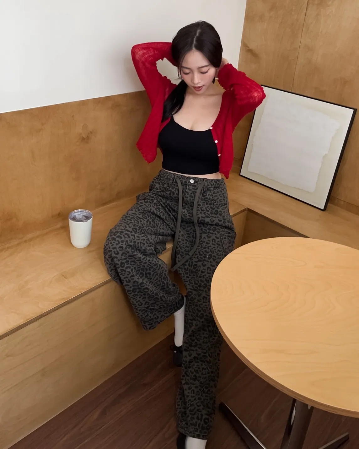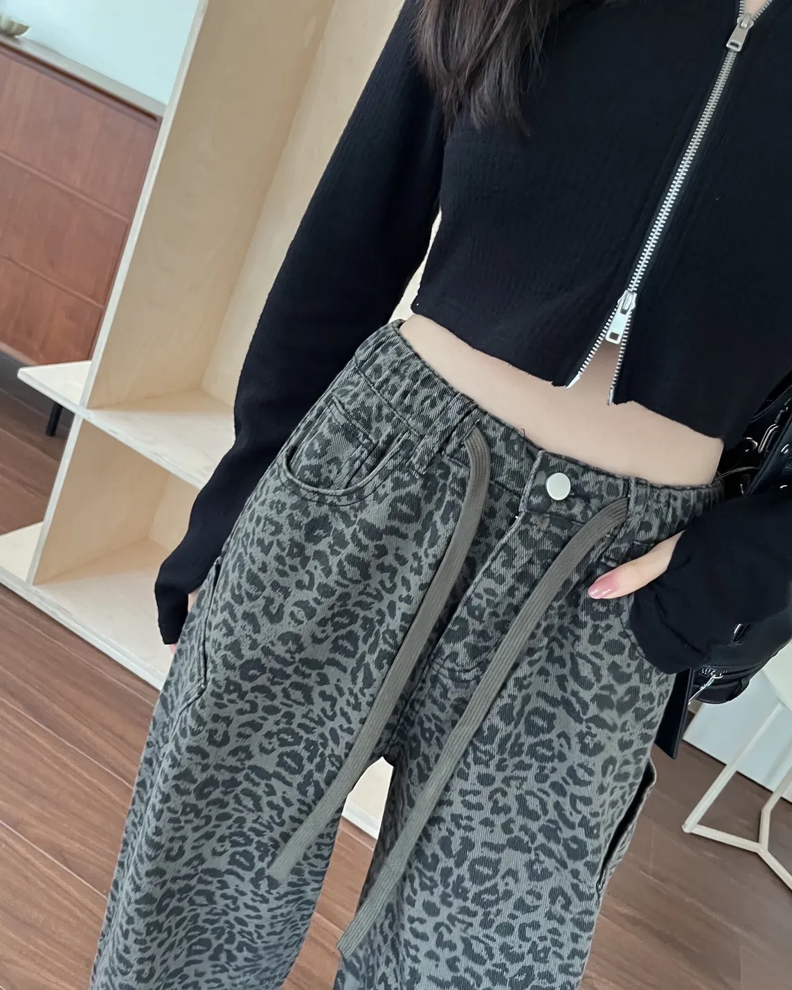 抽繩全鬆緊 建議尺寸S-L 兩側口袋 兩邊斜口袋 豹紋 褲腳有按扣 可以反折固定 小個女孩也安心入手~