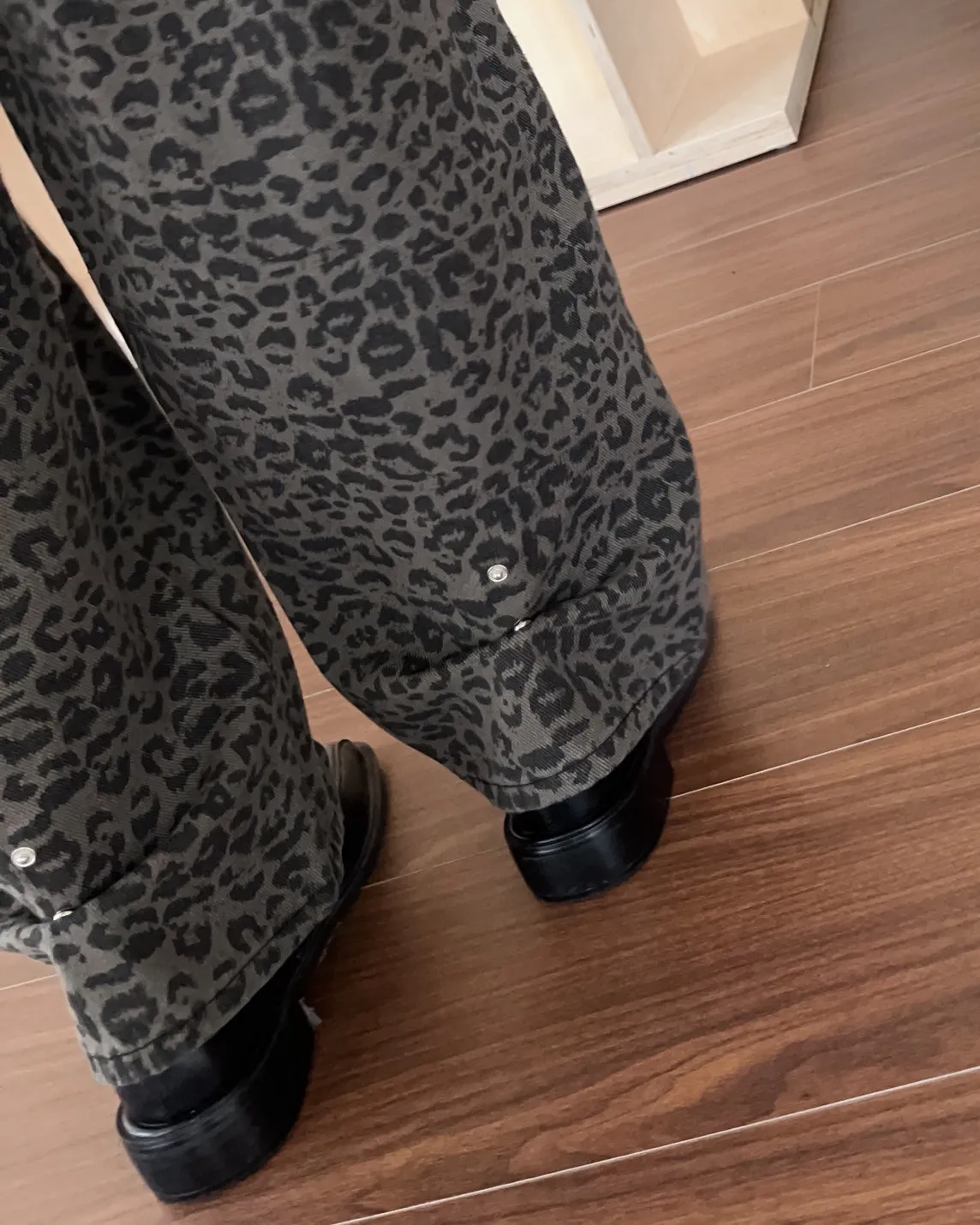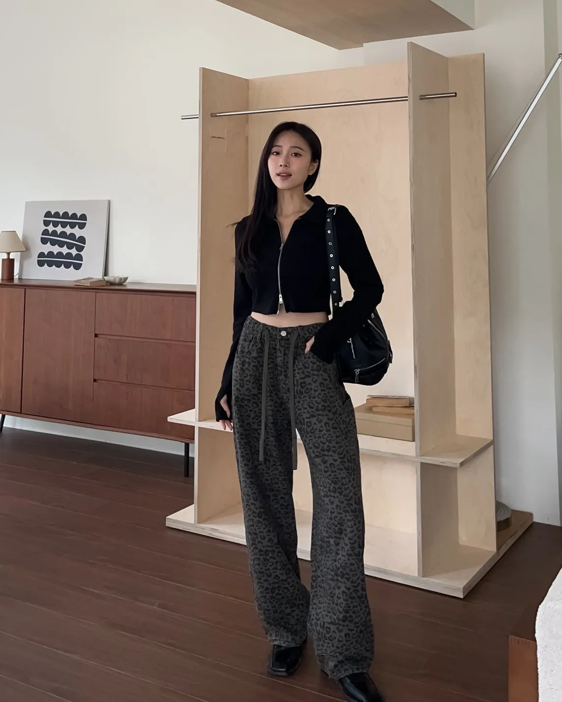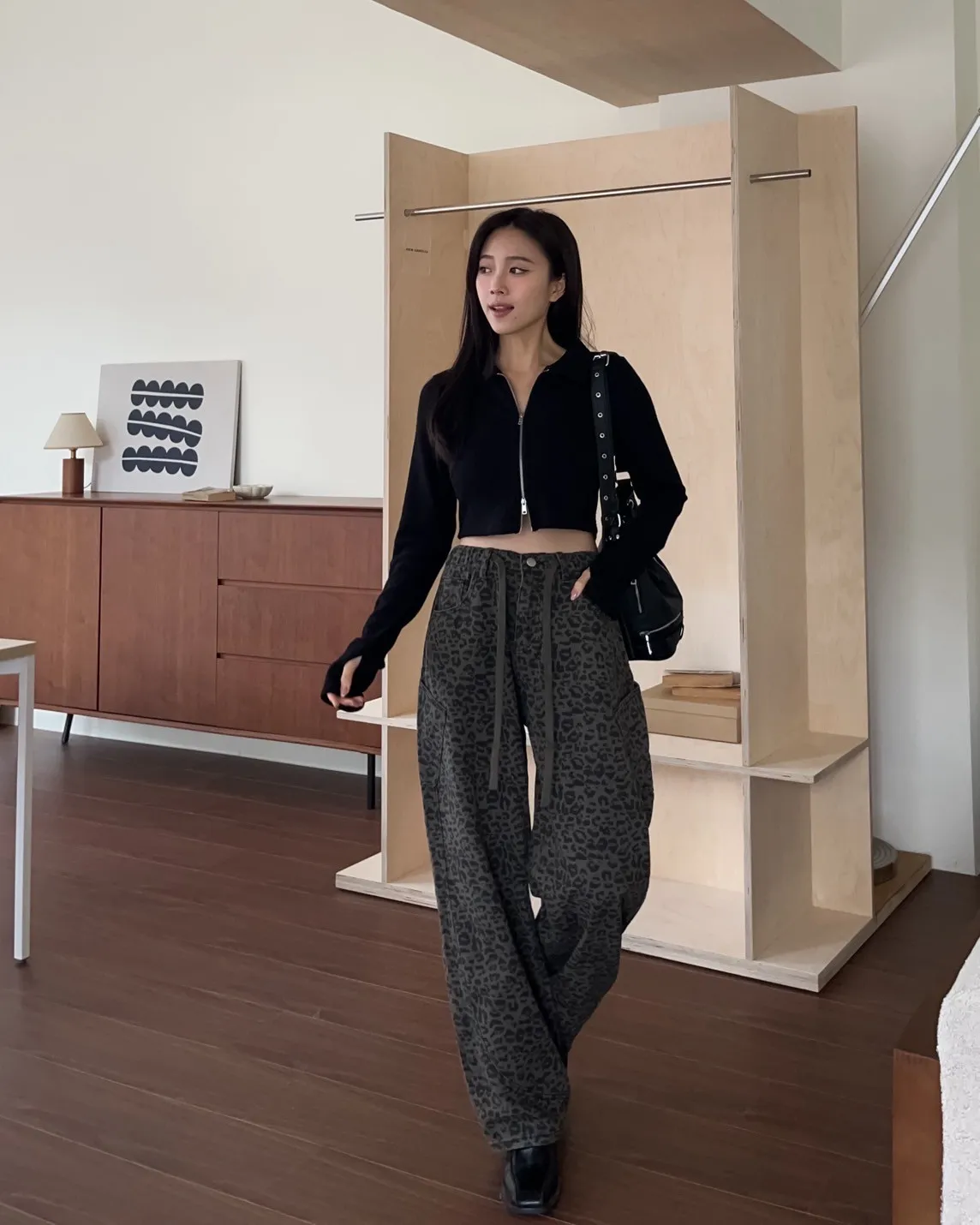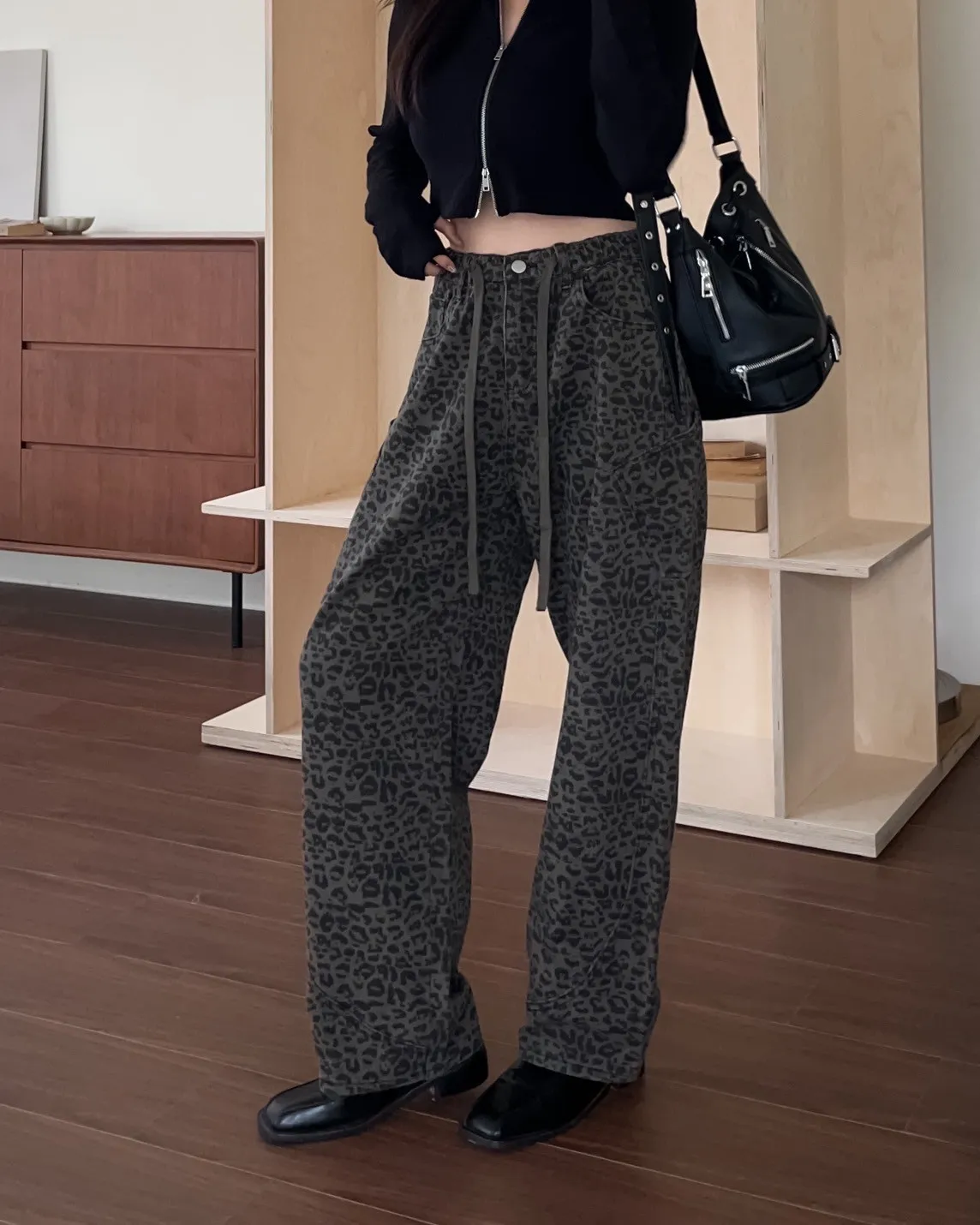 抽繩全鬆緊 建議尺寸S-L 兩側口袋 兩邊斜口袋 豹紋 褲腳有按扣 可以反折固定 小個女孩也安心入手~