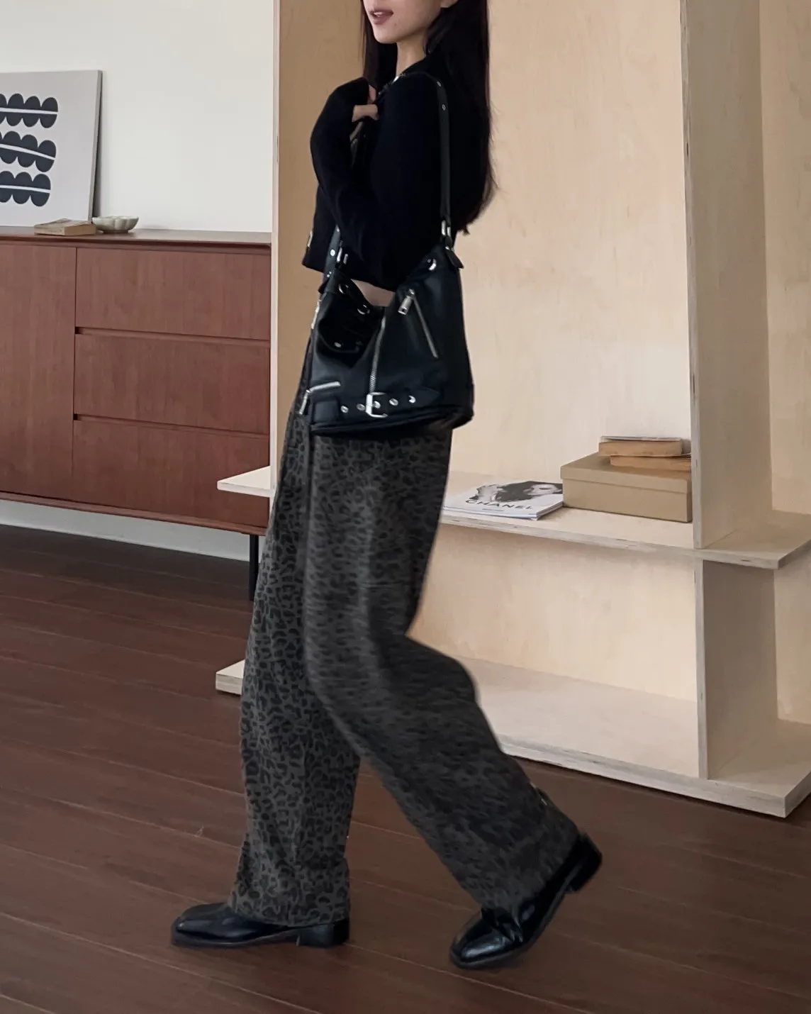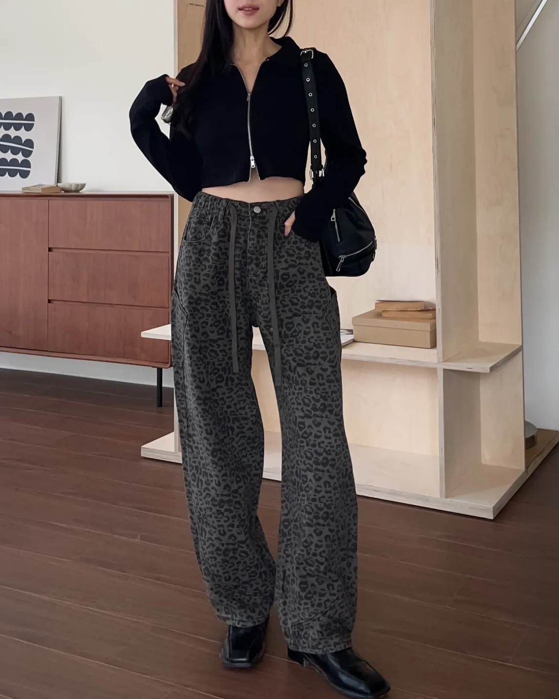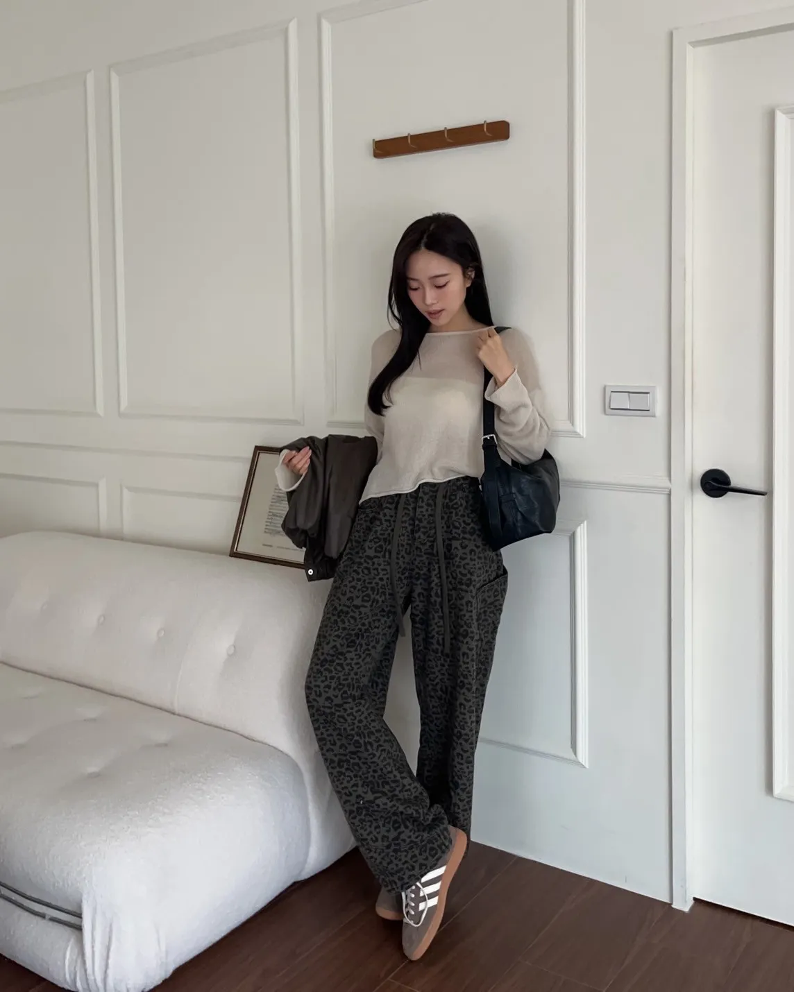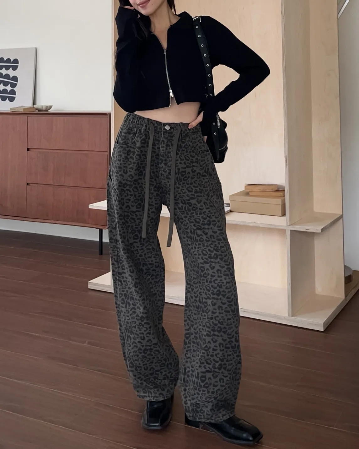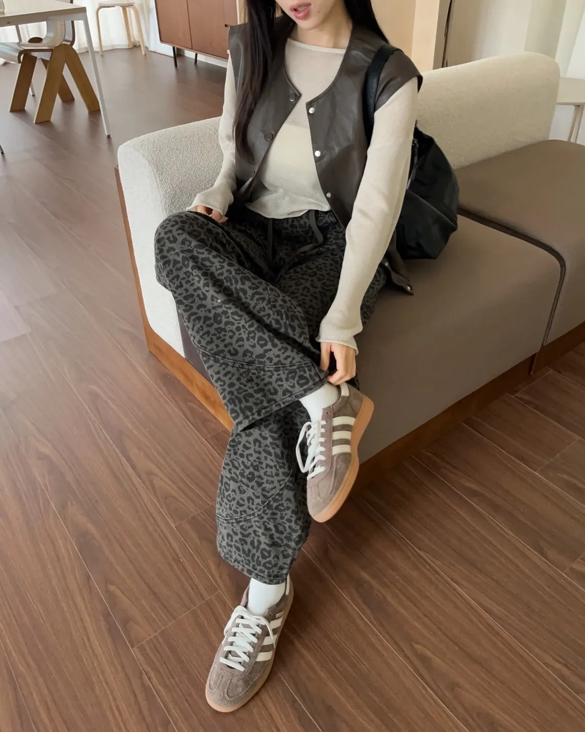 抽繩全鬆緊 建議尺寸S-L 兩側口袋 兩邊斜口袋 豹紋 褲腳有按扣 可以反折固定 小個女孩也安心入手~