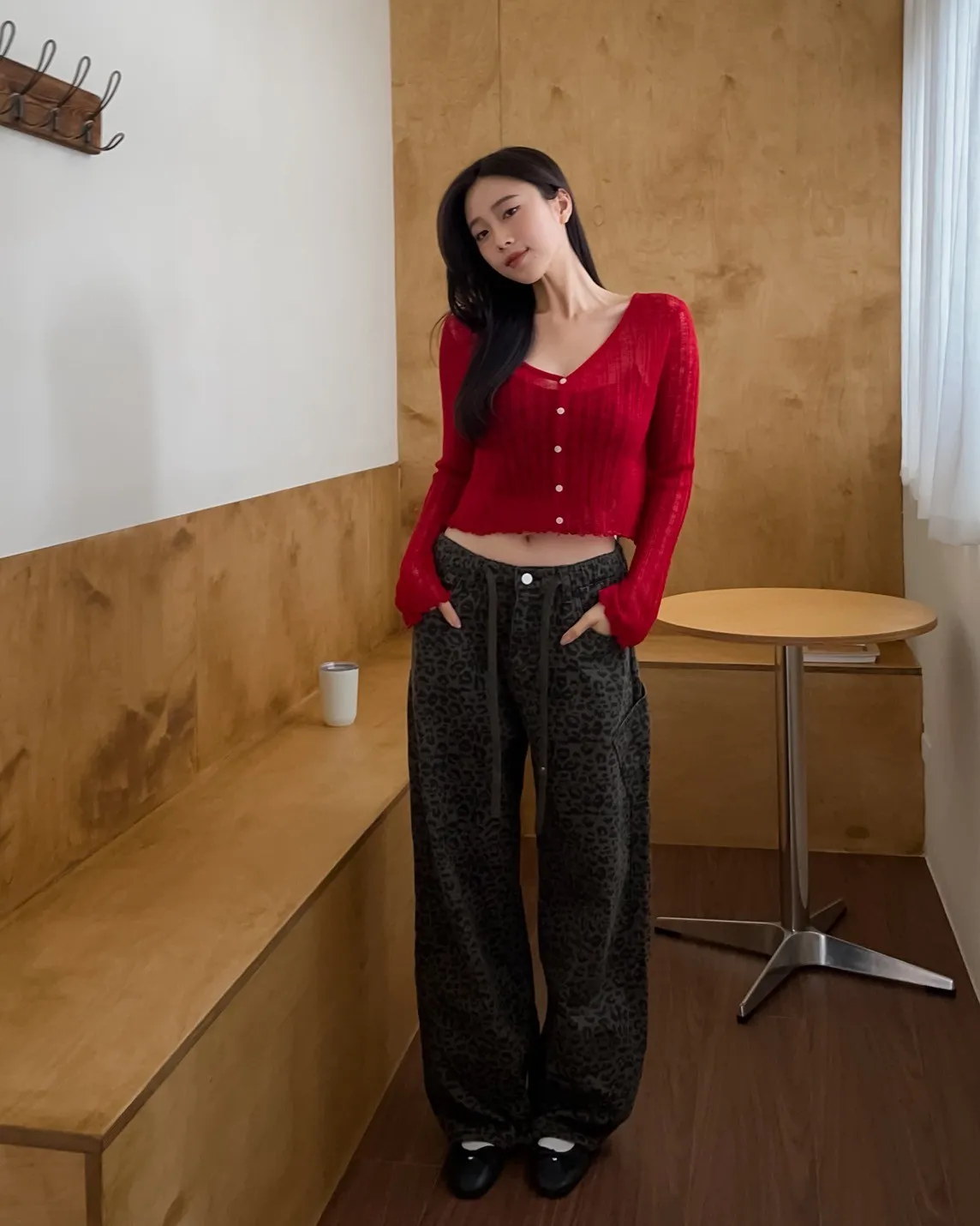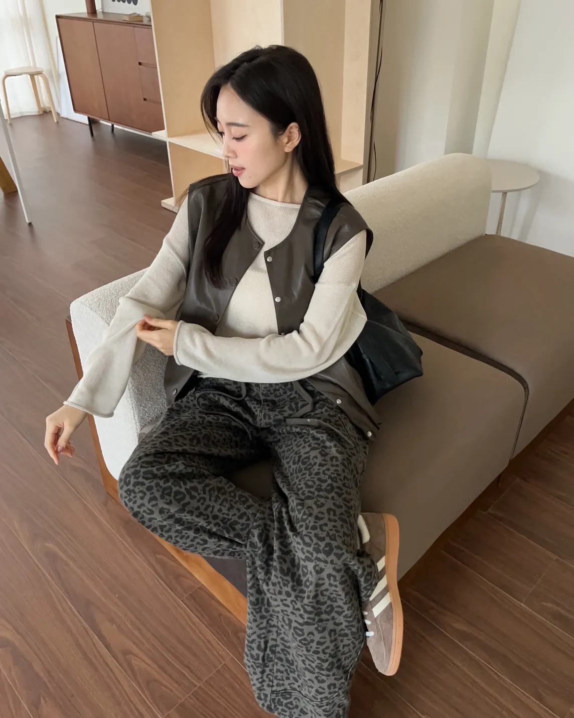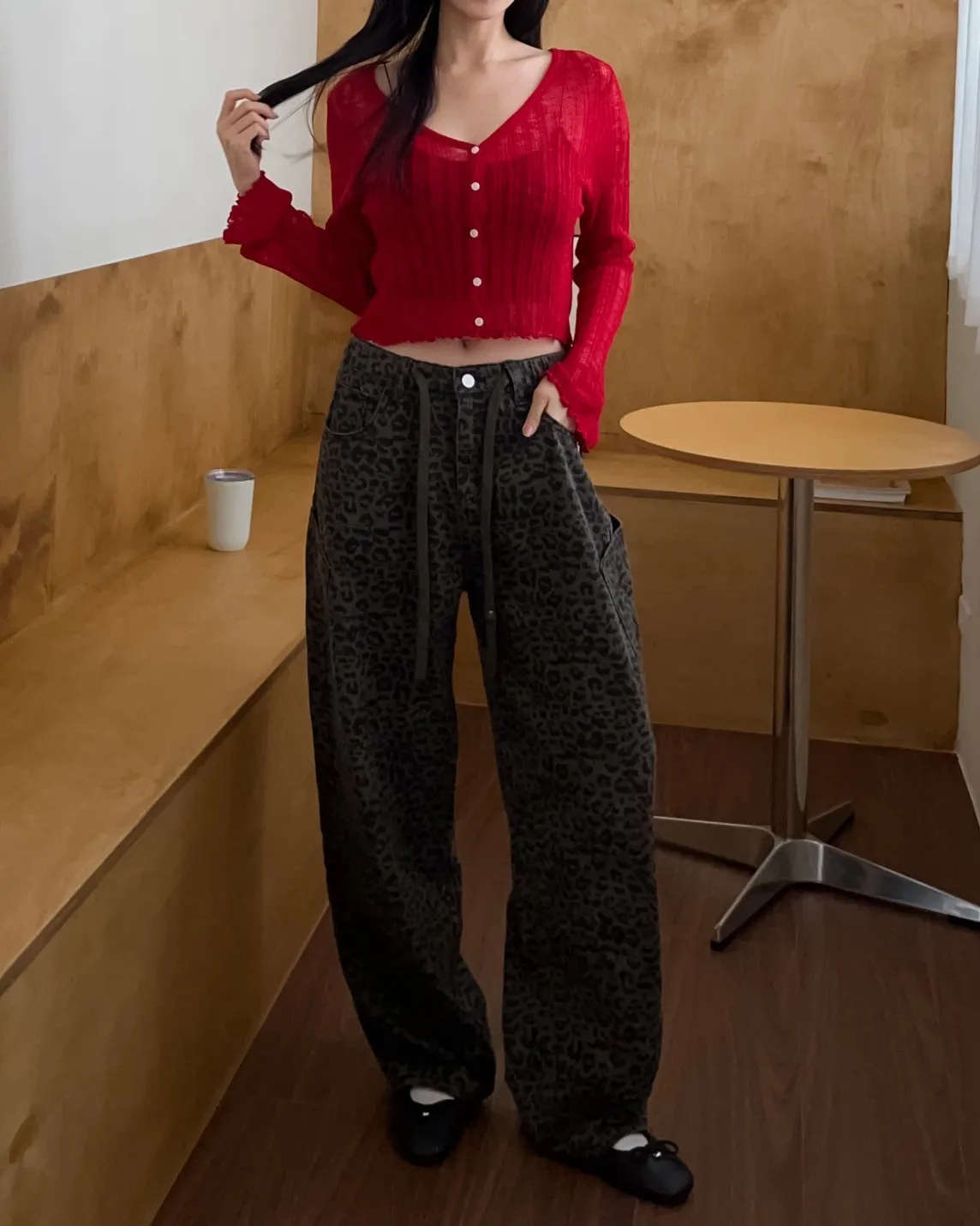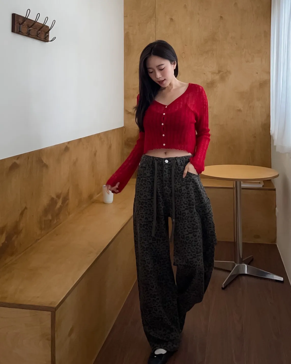 抽繩全鬆緊 建議尺寸S-L 兩側口袋 兩邊斜口袋 豹紋 褲腳有按扣 可以反折固定 小個女孩也安心入手~