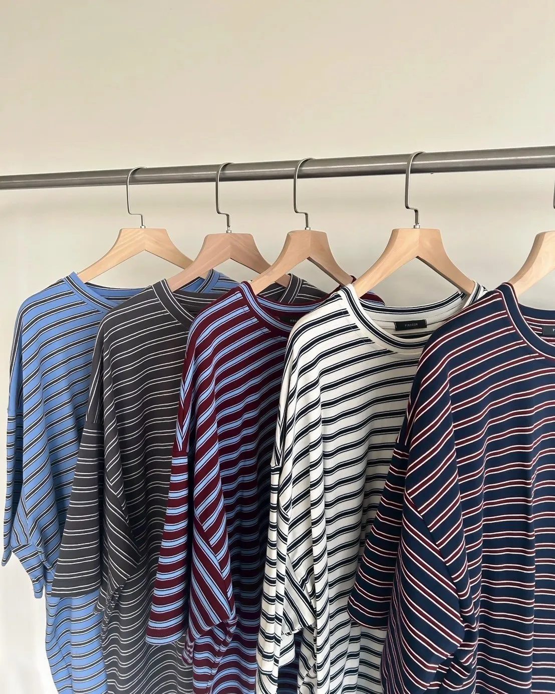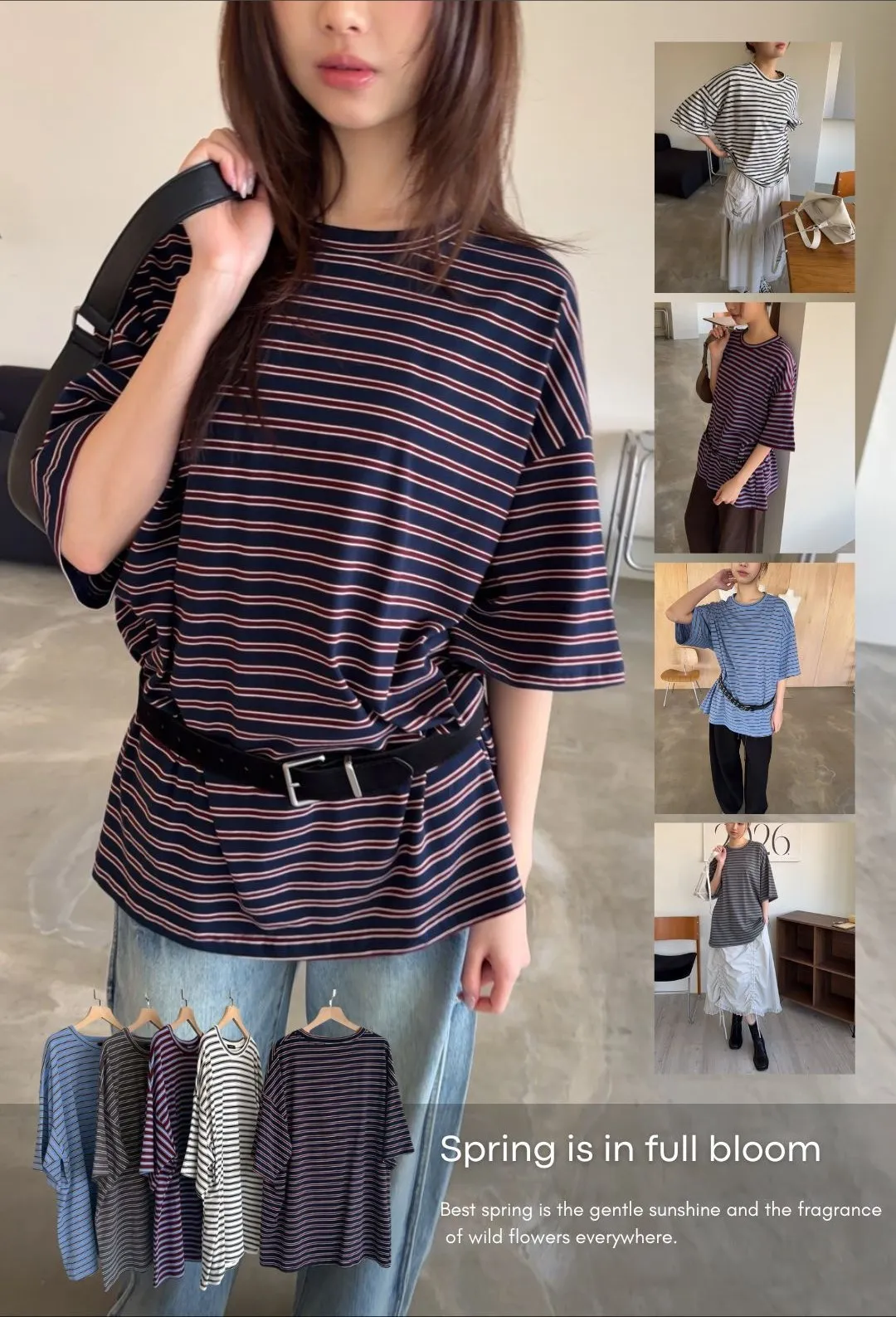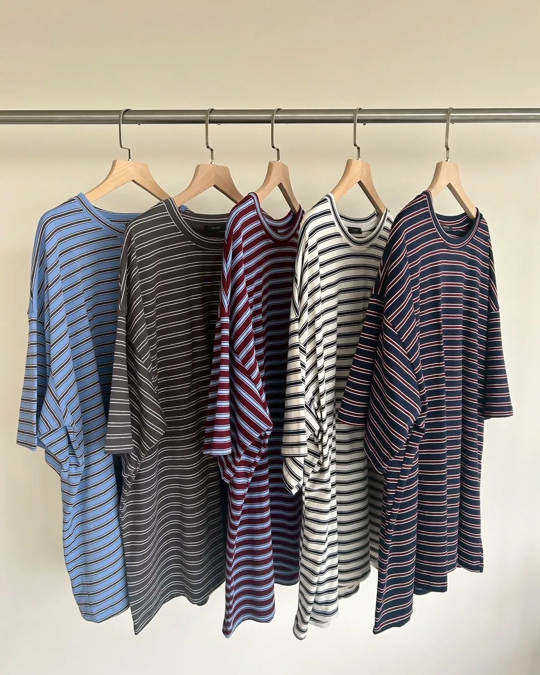 A0055(五色)經典撞色條紋寬鬆大T(米/灰綠/紅/淺藍/深藍)