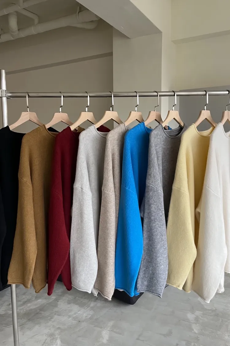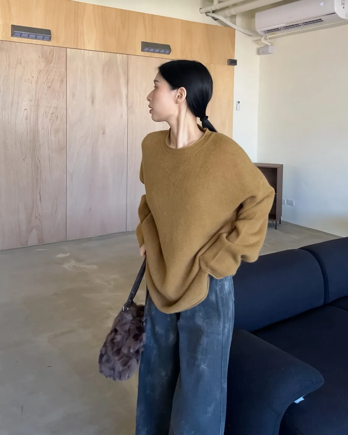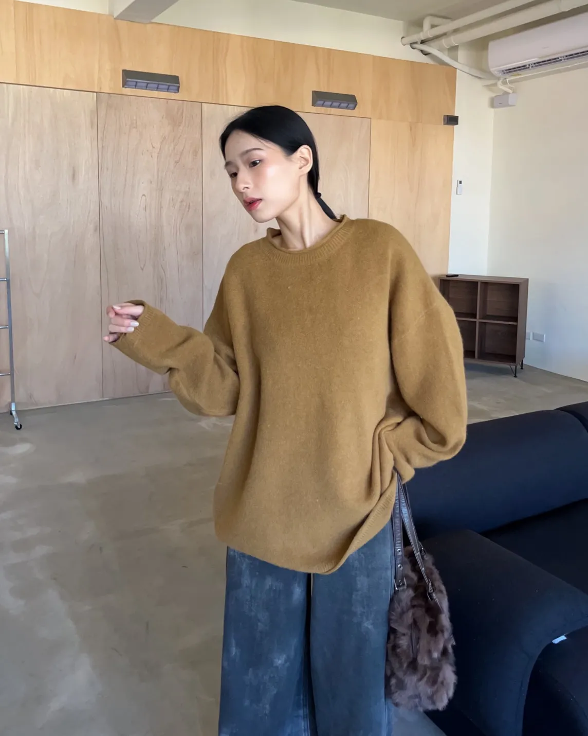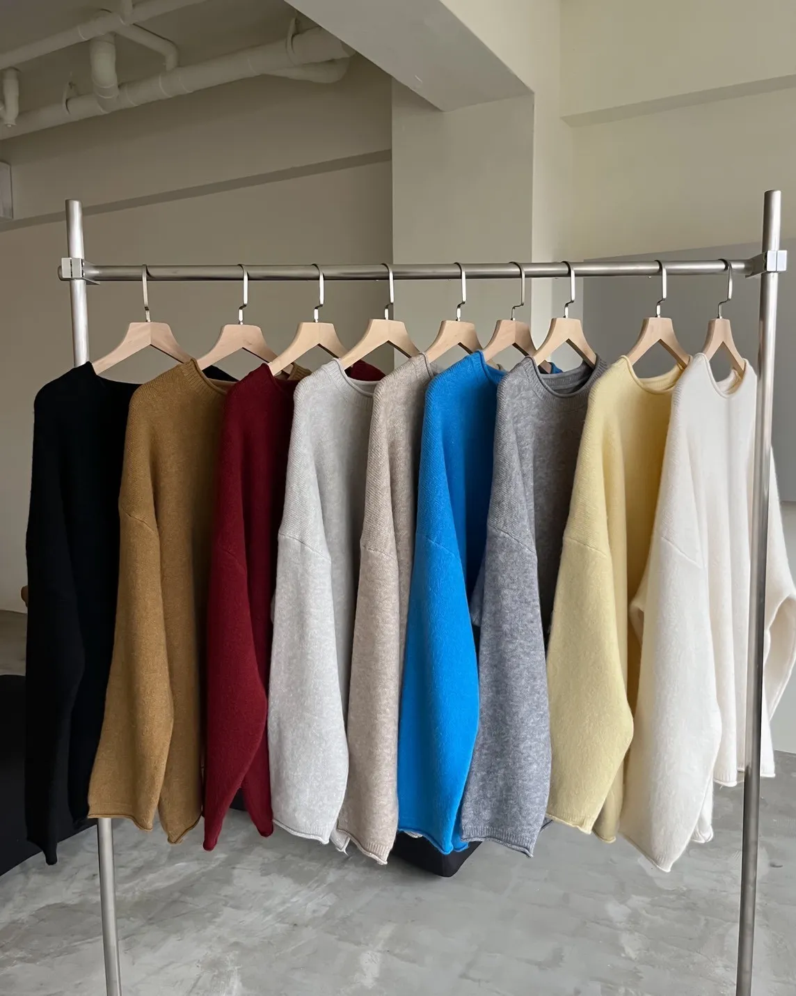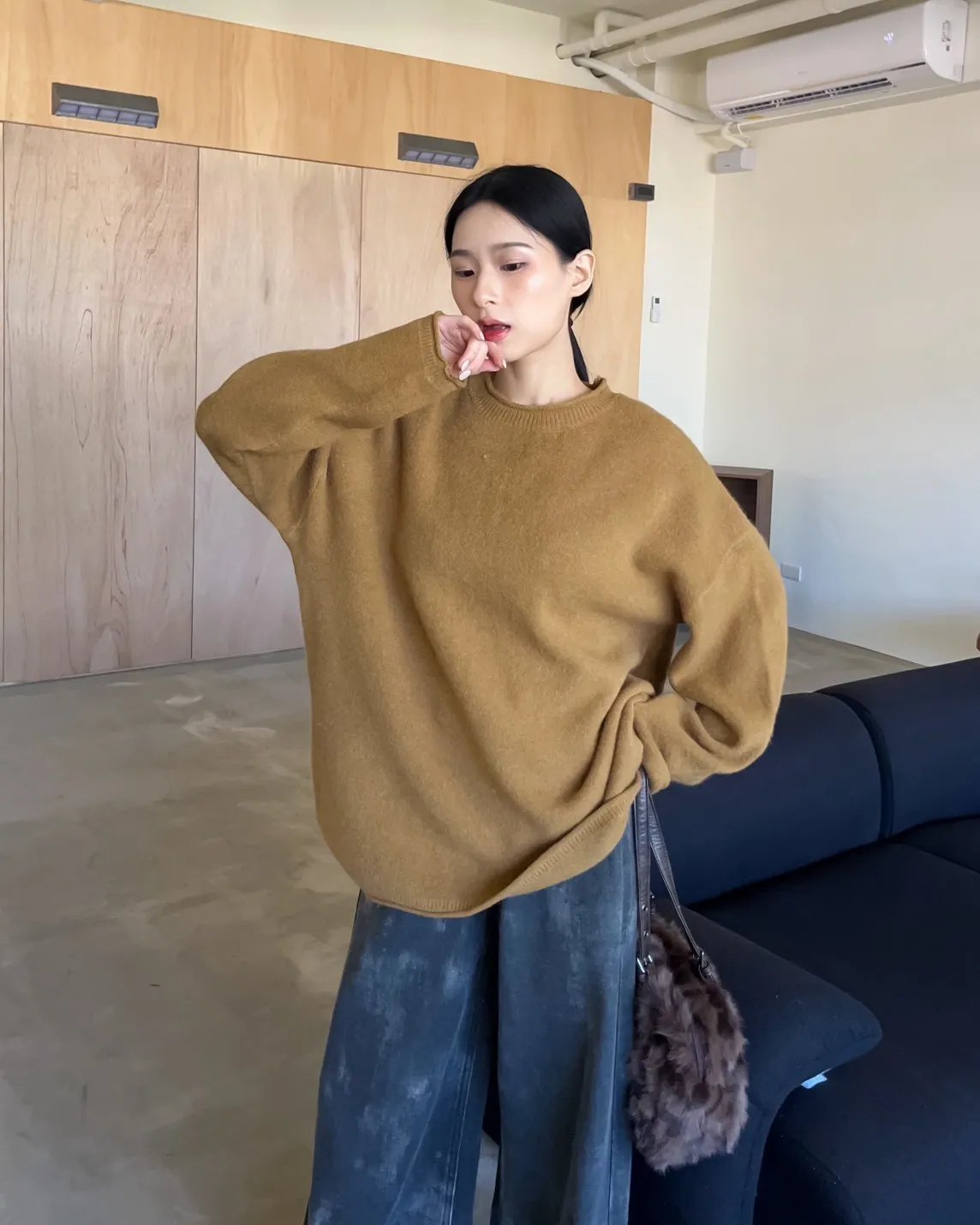 W0035(九色)療癒色系~QQ邊寬鬆大毛衣(米白/灰杏/奶茶/駝/黃/紅/藍/灰/黑)