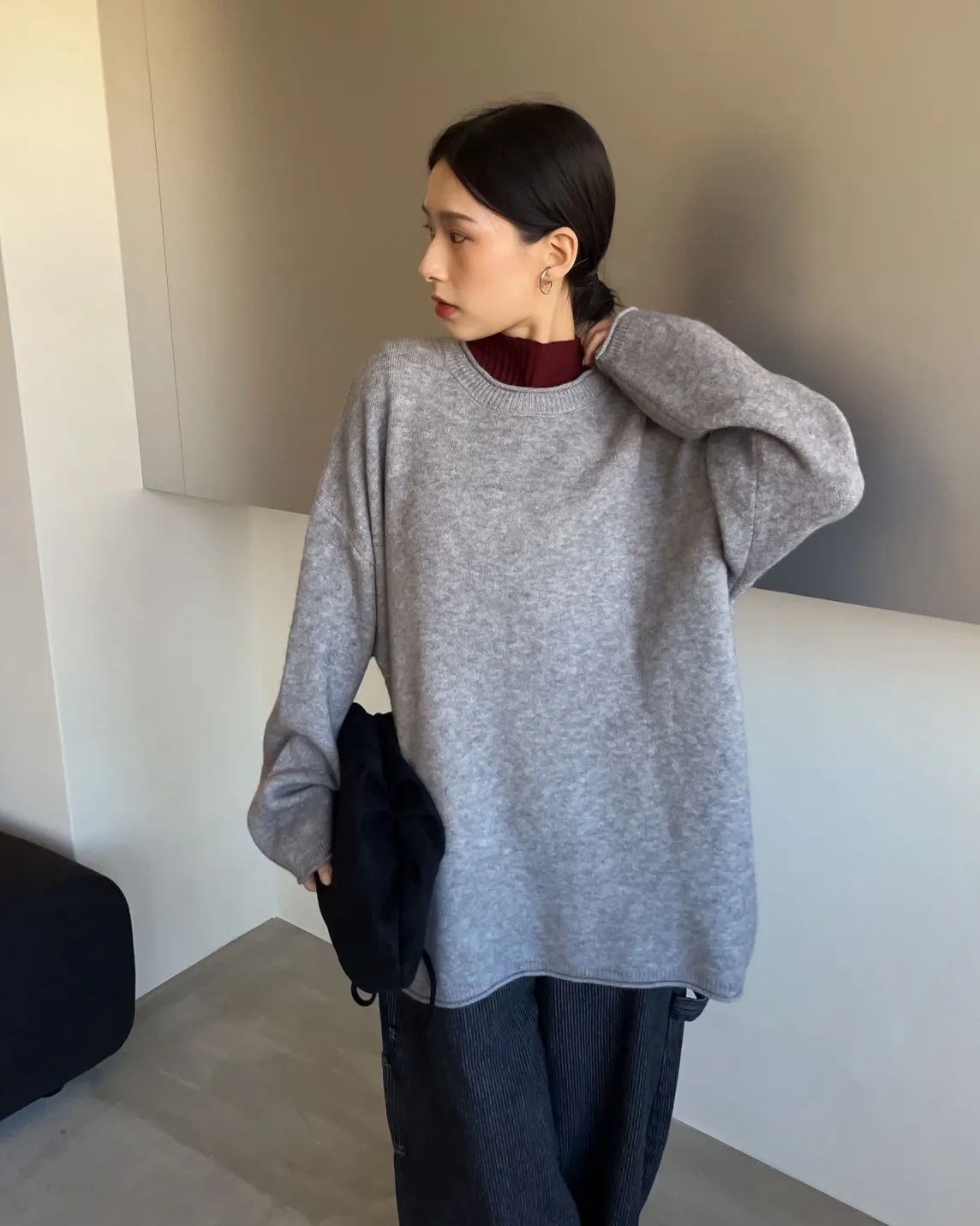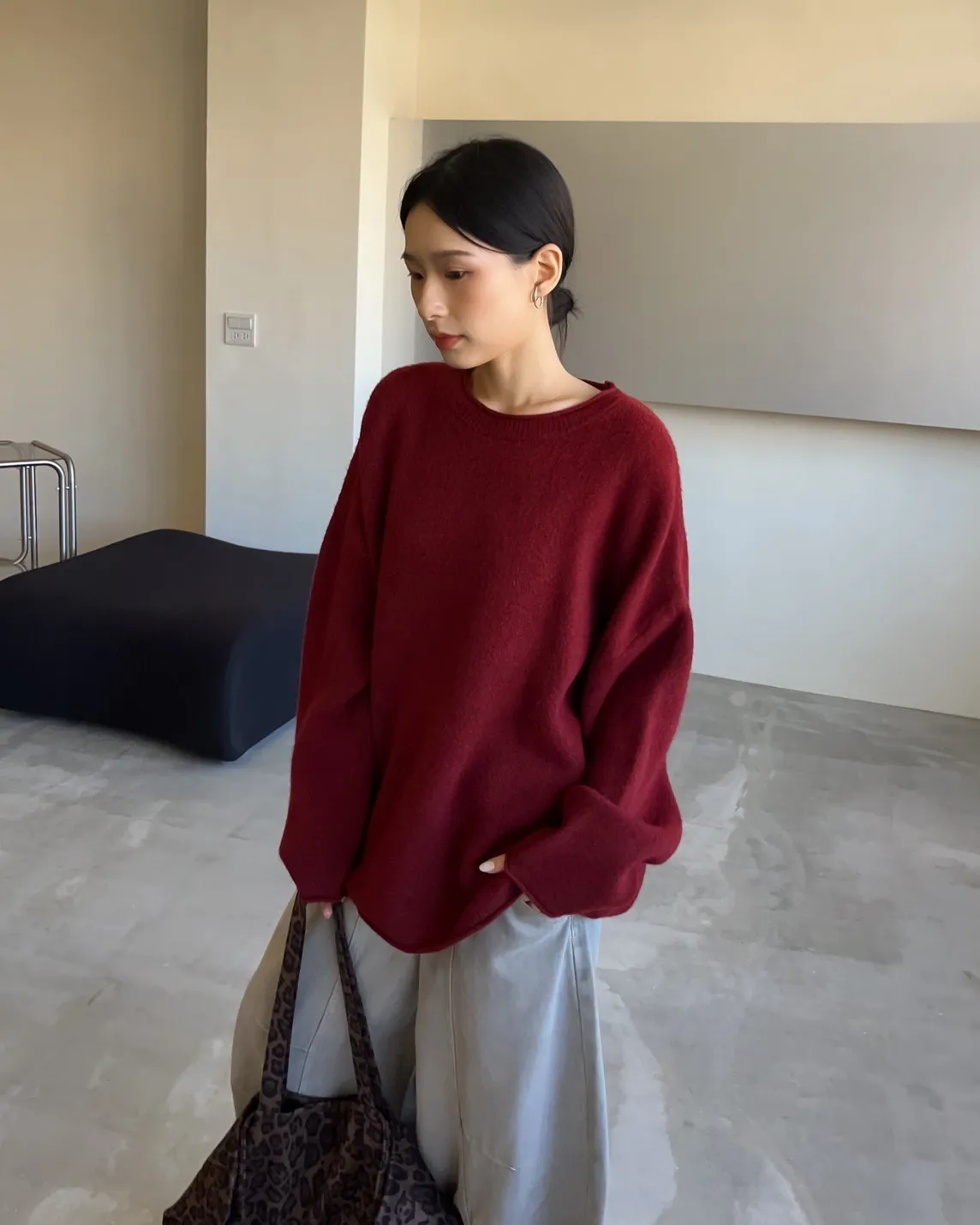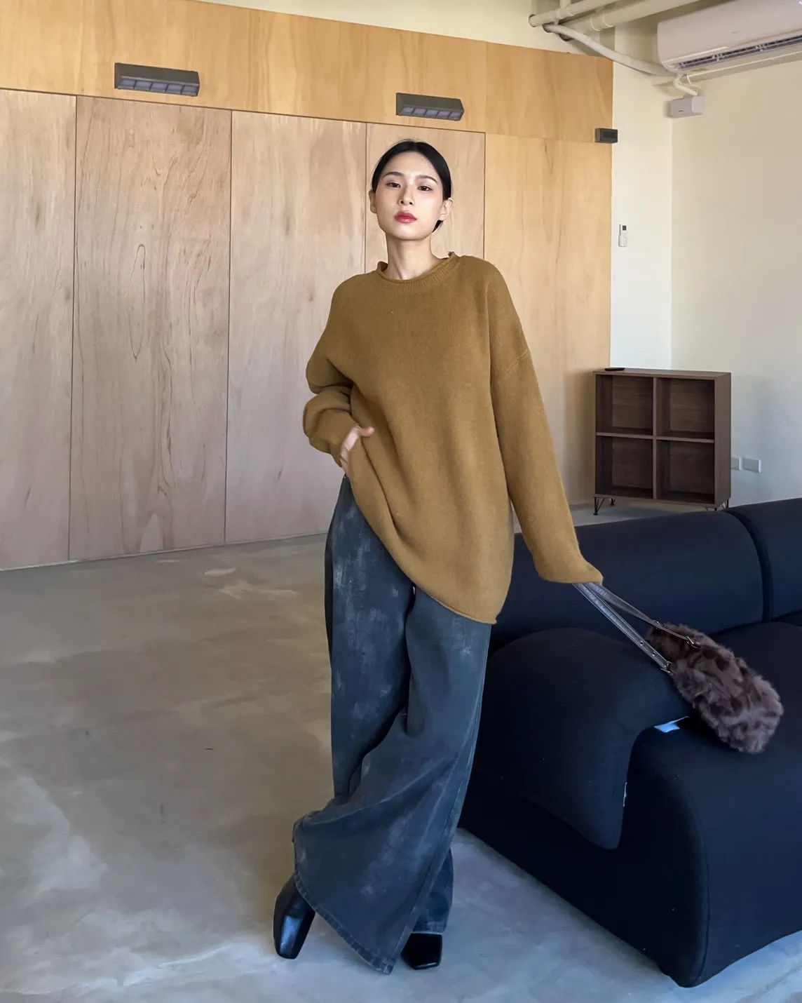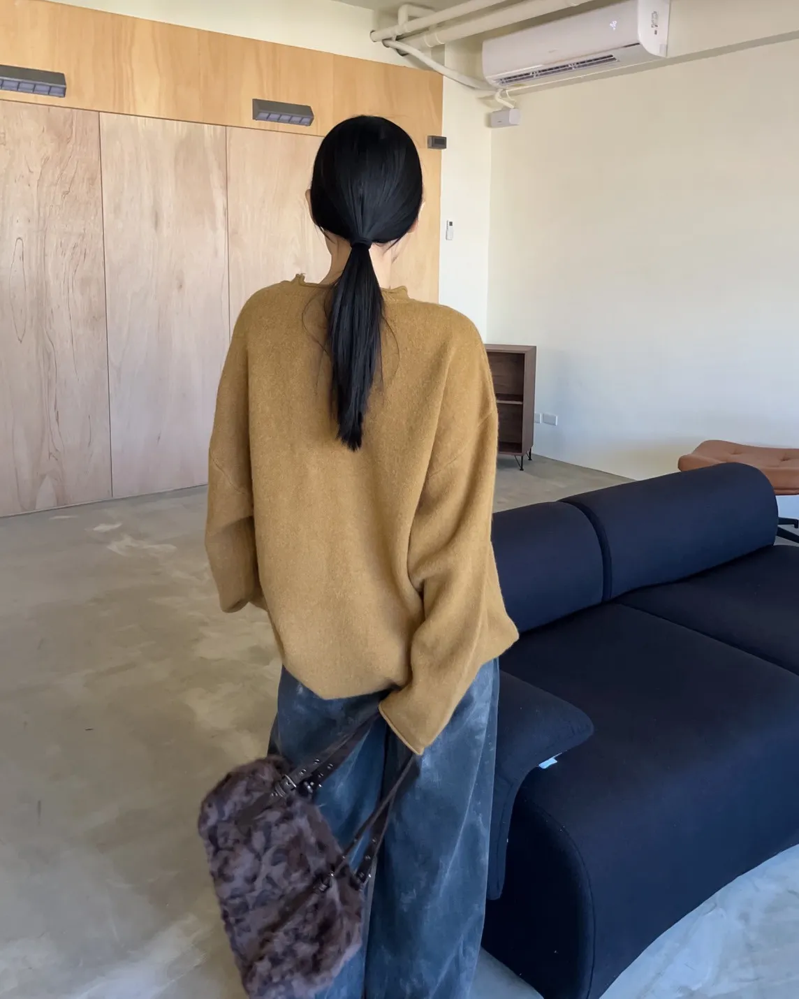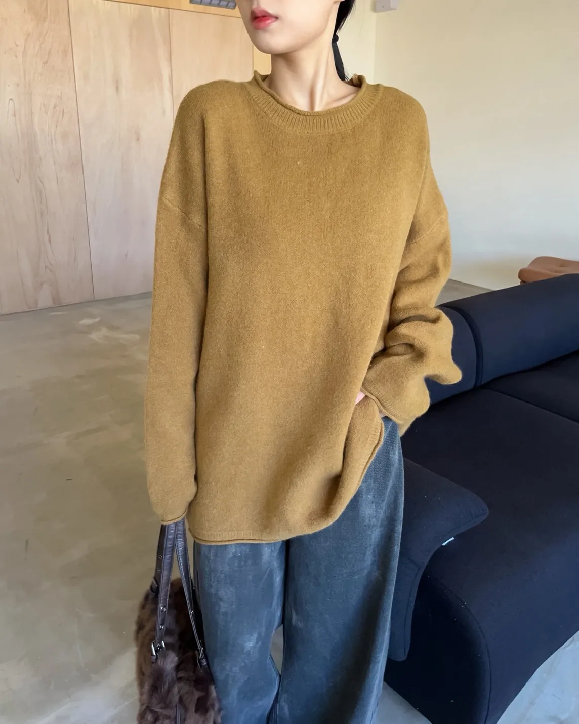 W0035(九色)療癒色系~QQ邊寬鬆大毛衣(米白/灰杏/奶茶/駝/黃/紅/藍/灰/黑)
