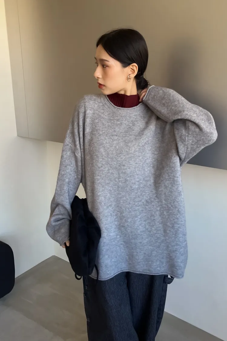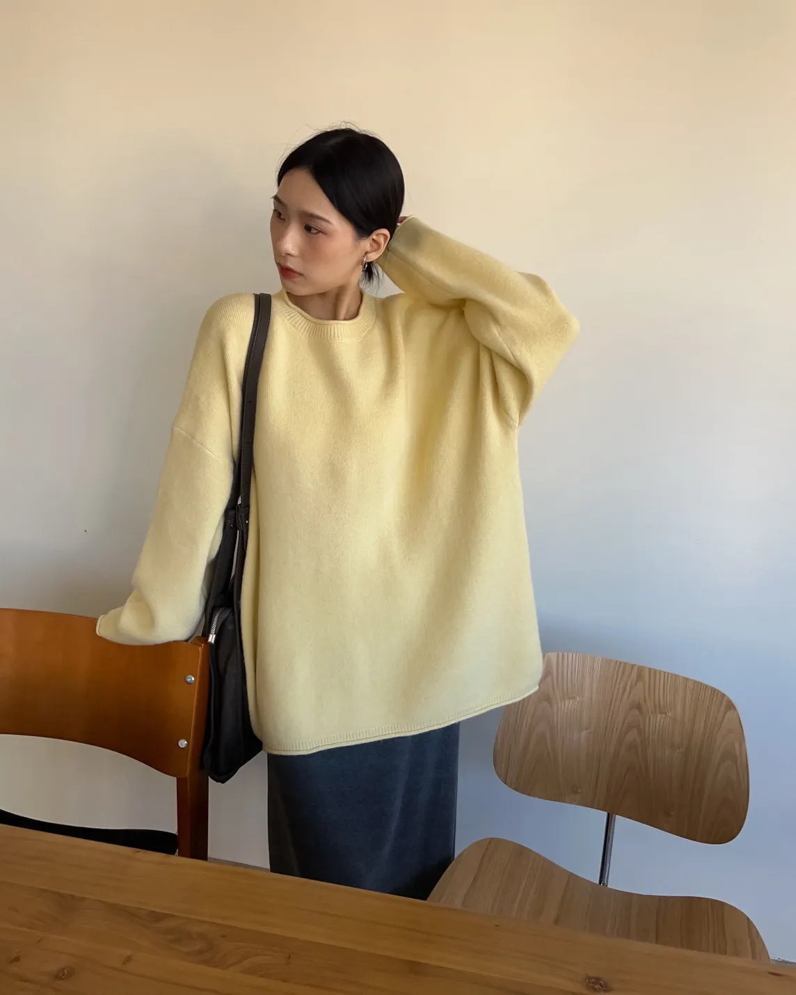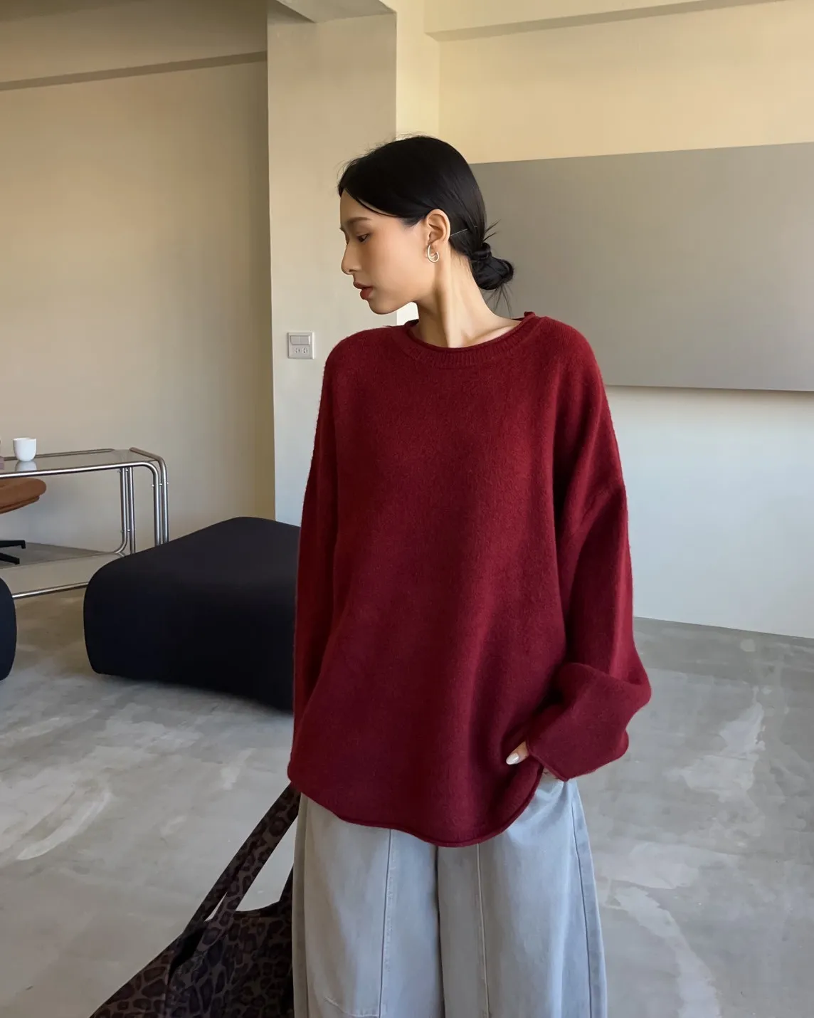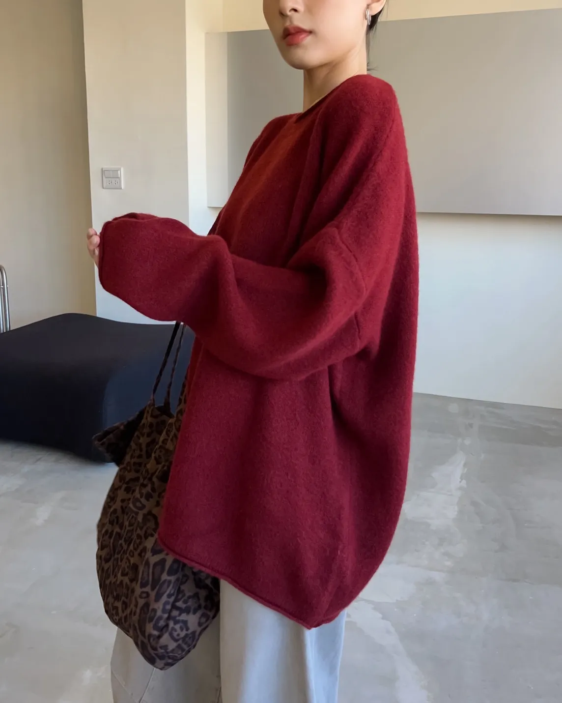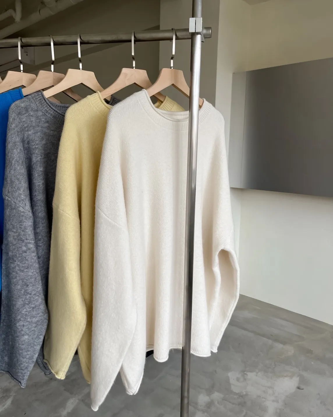 W0035(九色)療癒色系~QQ邊寬鬆大毛衣(米白/灰杏/奶茶/駝/黃/紅/藍/灰/黑)