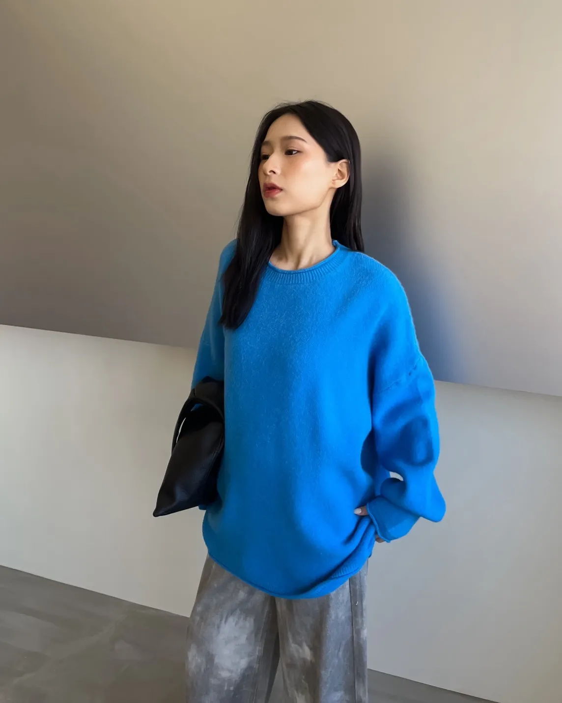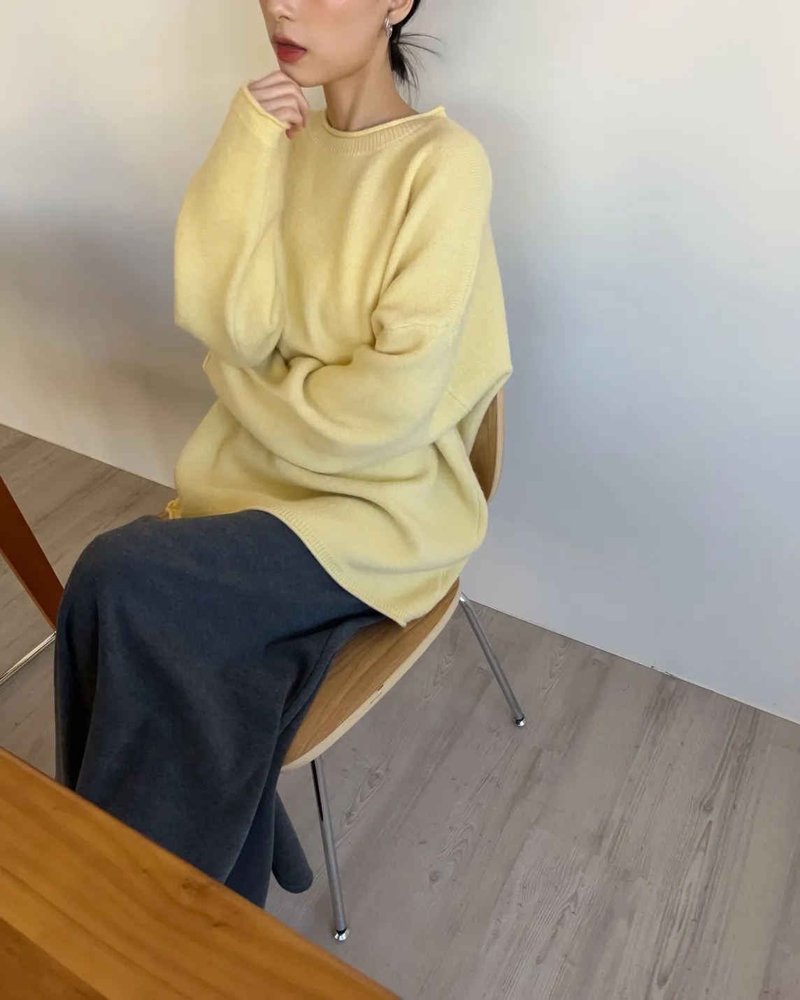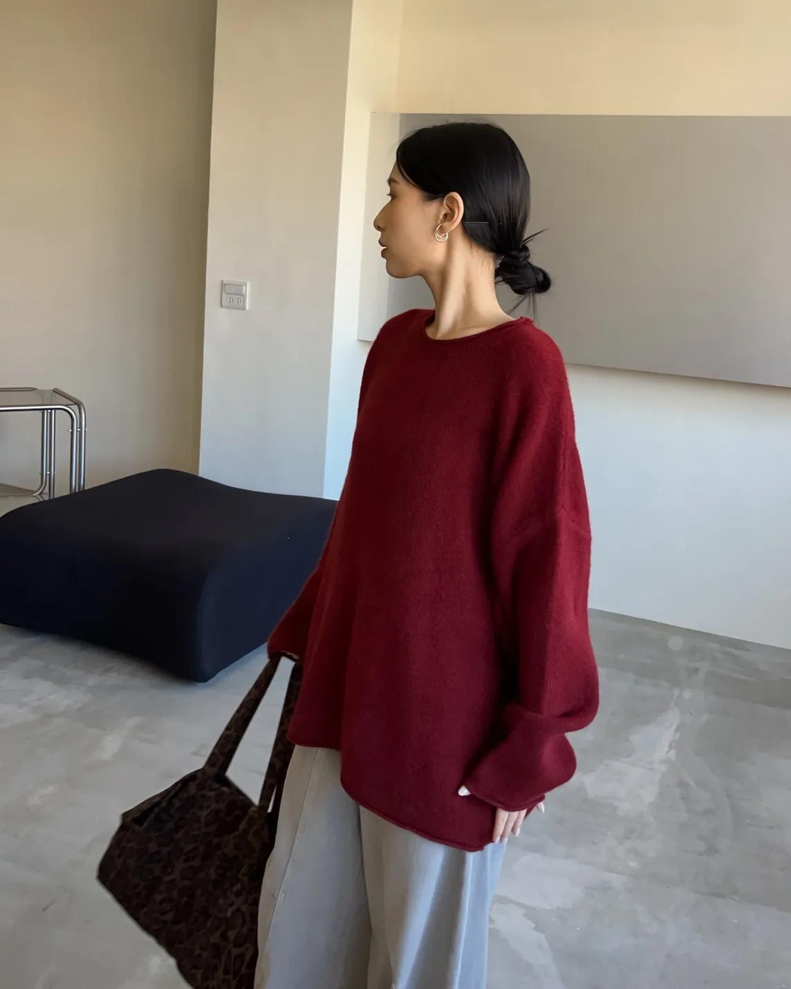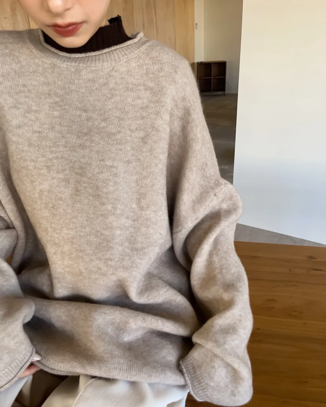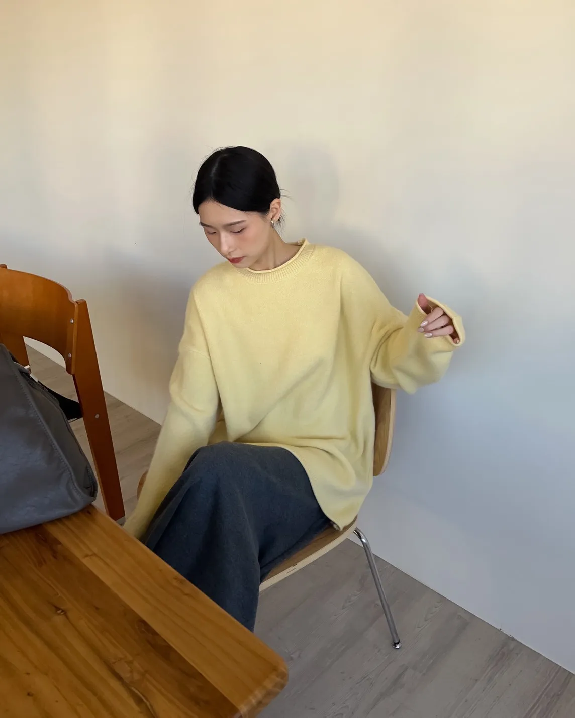 W0035(九色)療癒色系~QQ邊寬鬆大毛衣(米白/灰杏/奶茶/駝/黃/紅/藍/灰/黑)