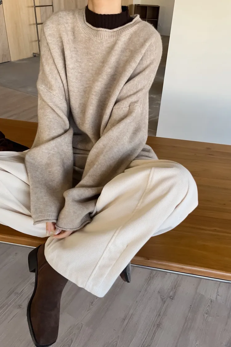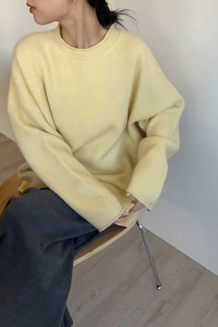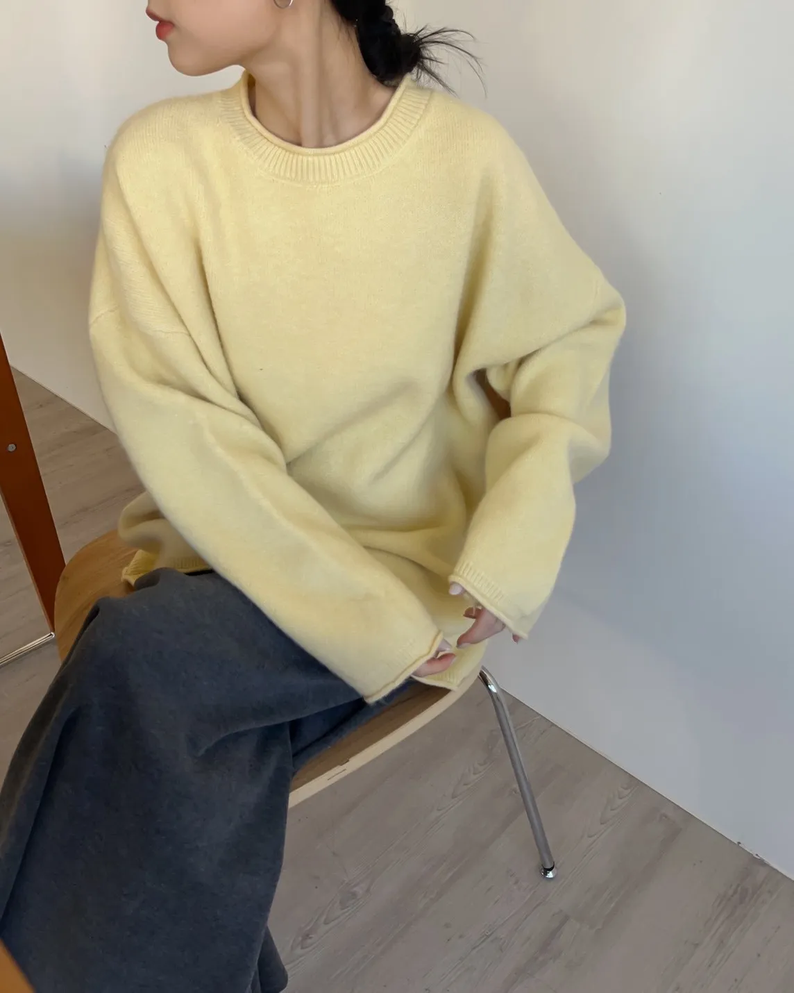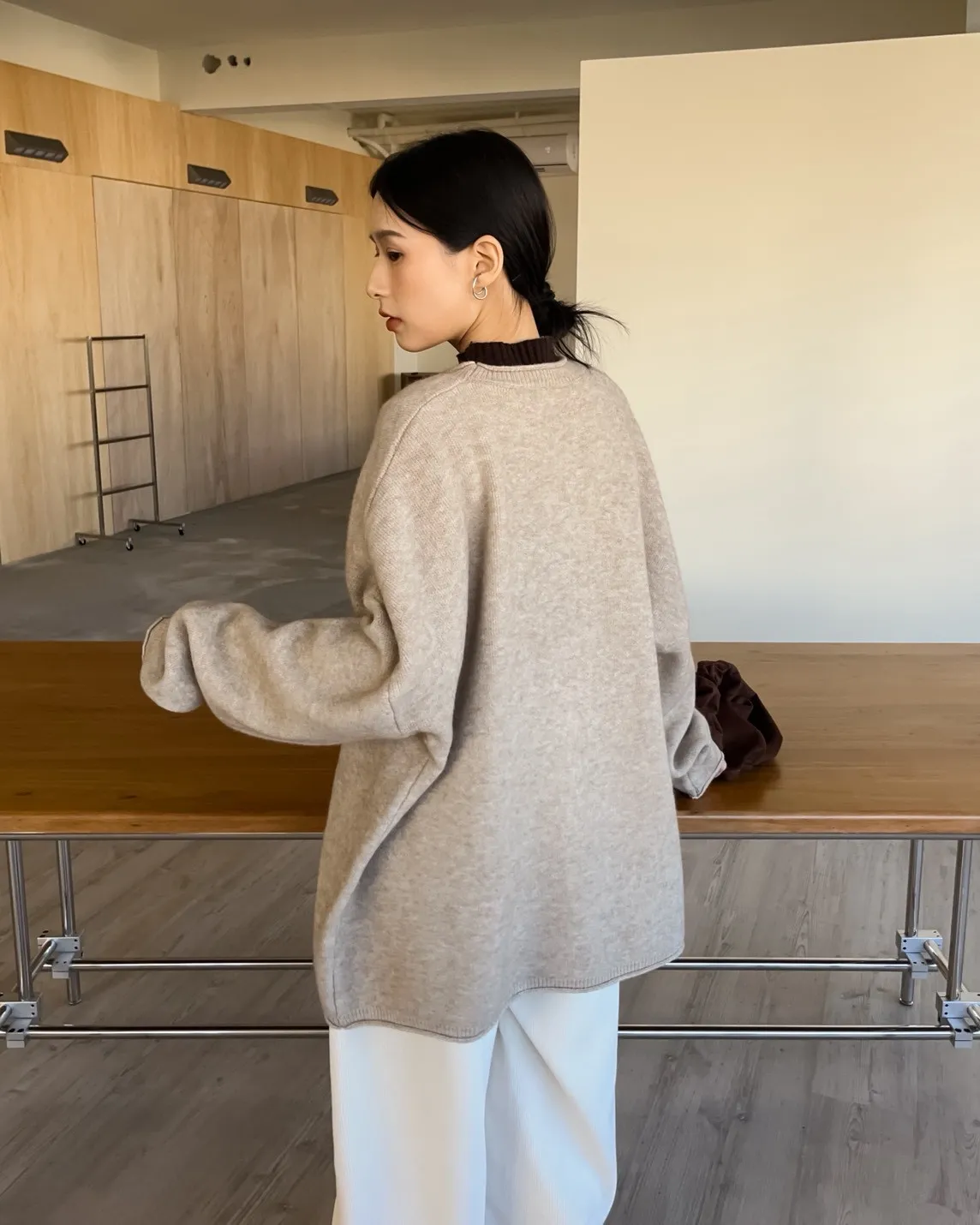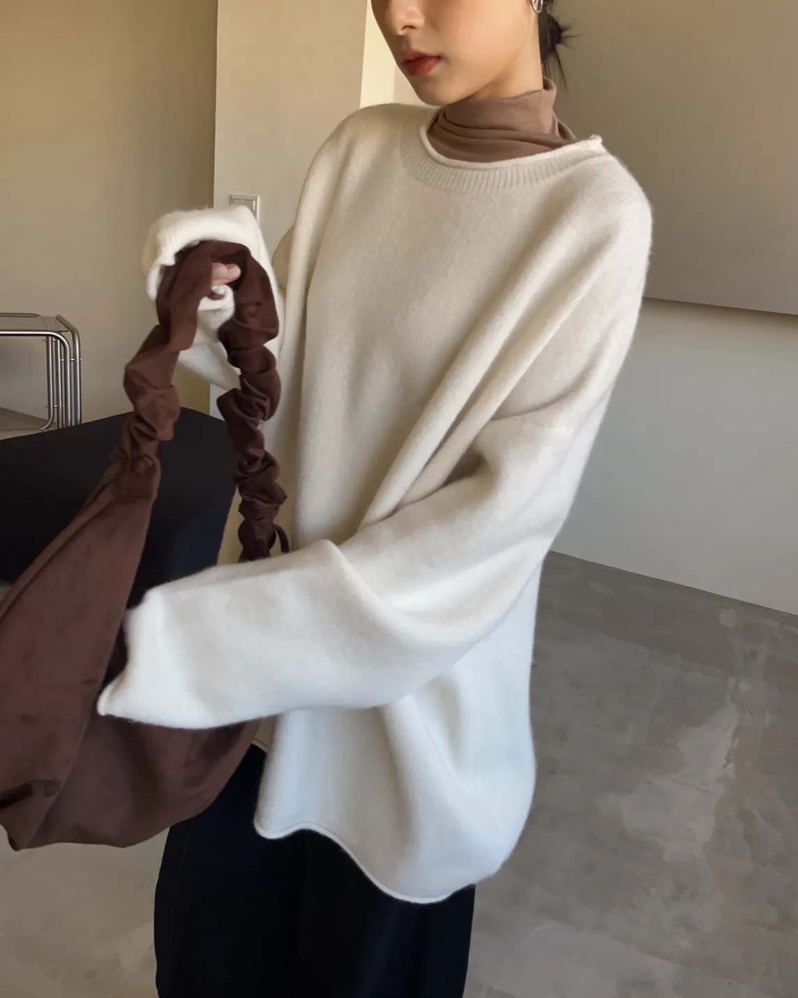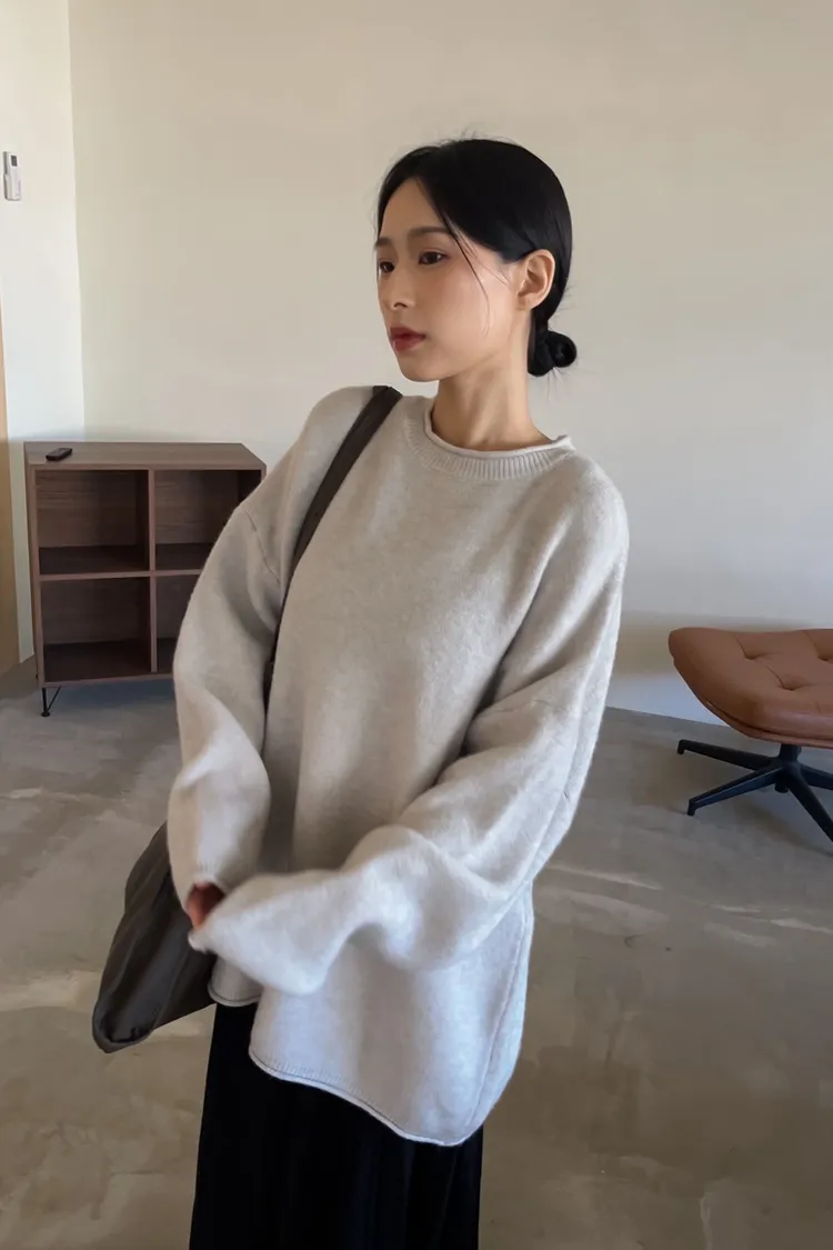 W0035(九色)療癒色系~QQ邊寬鬆大毛衣(米白/灰杏/奶茶/駝/黃/紅/藍/灰/黑)