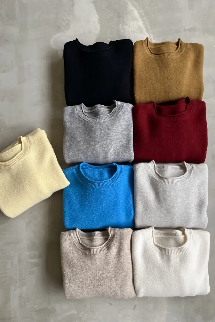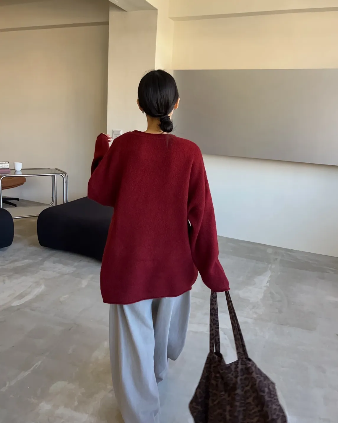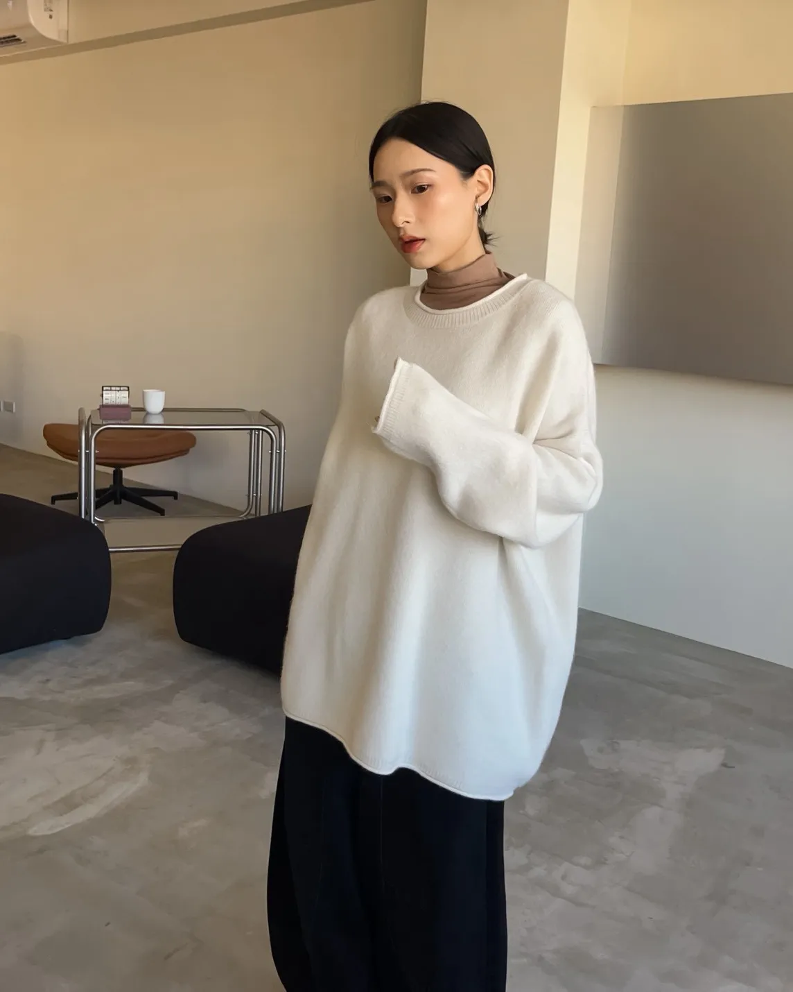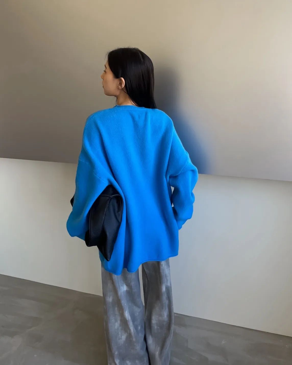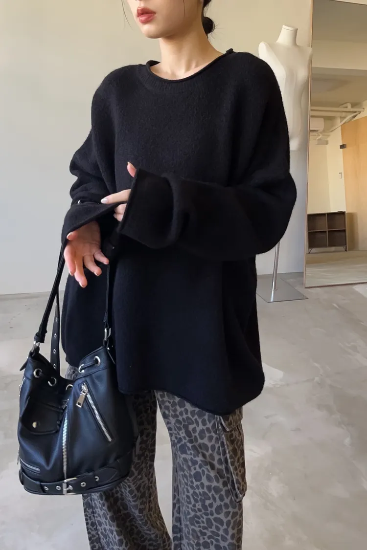W0035(九色)療癒色系~QQ邊寬鬆大毛衣(米白/灰杏/奶茶/駝/黃/紅/藍/灰/黑)