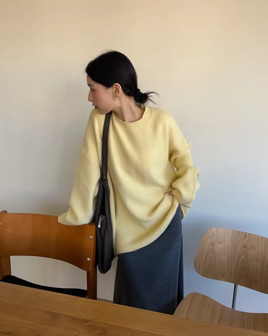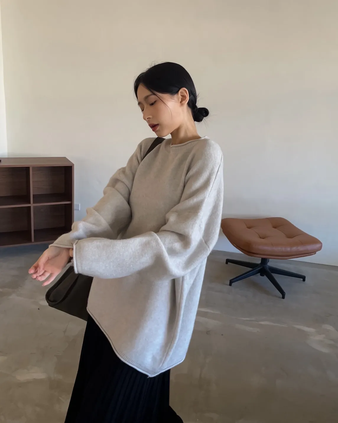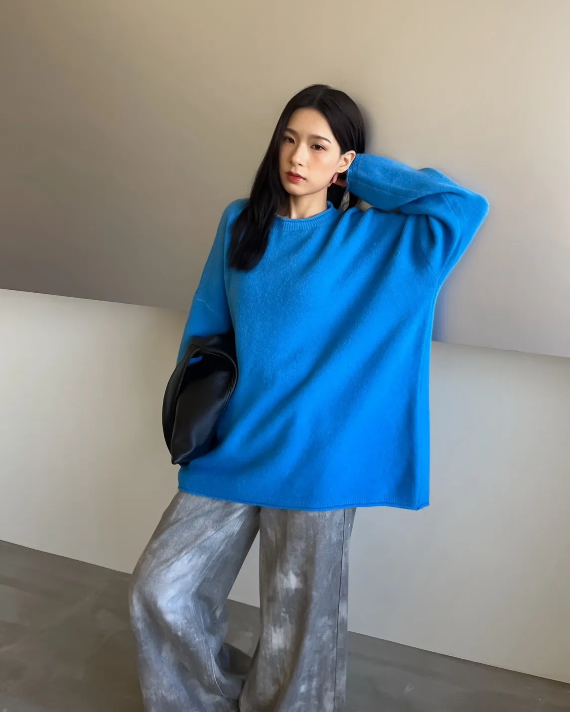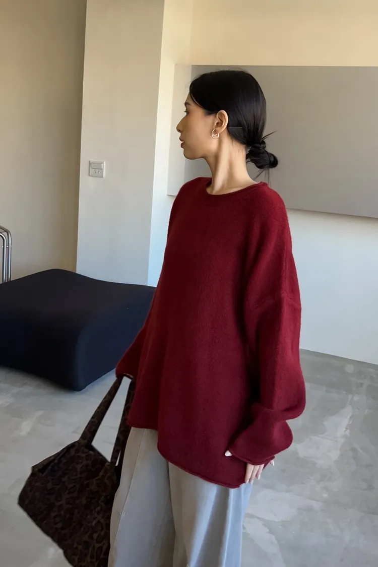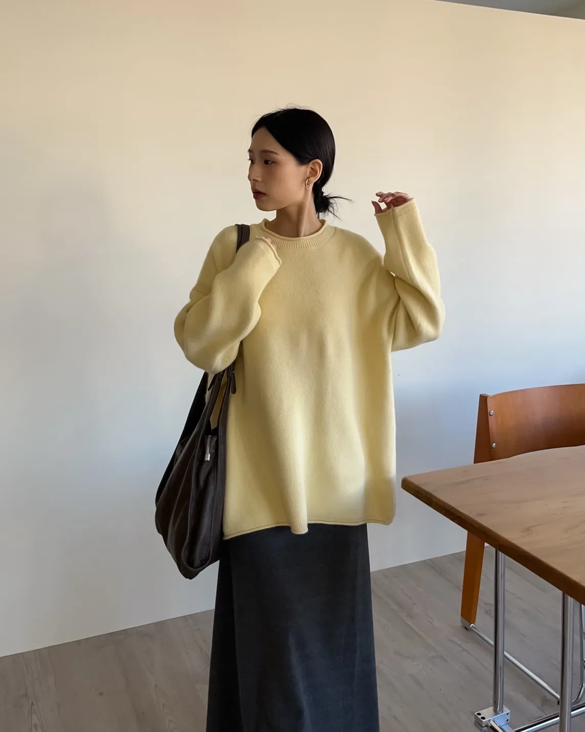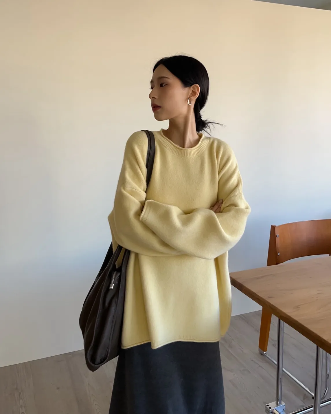 W0035(九色)療癒色系~QQ邊寬鬆大毛衣(米白/灰杏/奶茶/駝/黃/紅/藍/灰/黑)