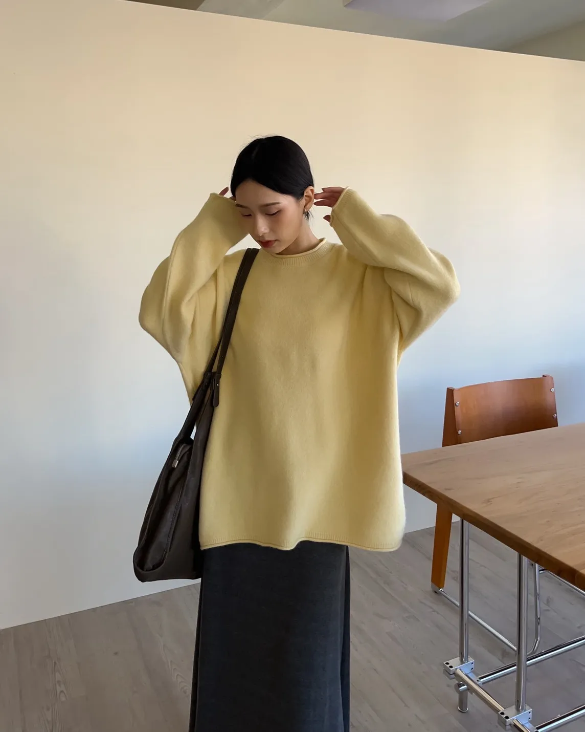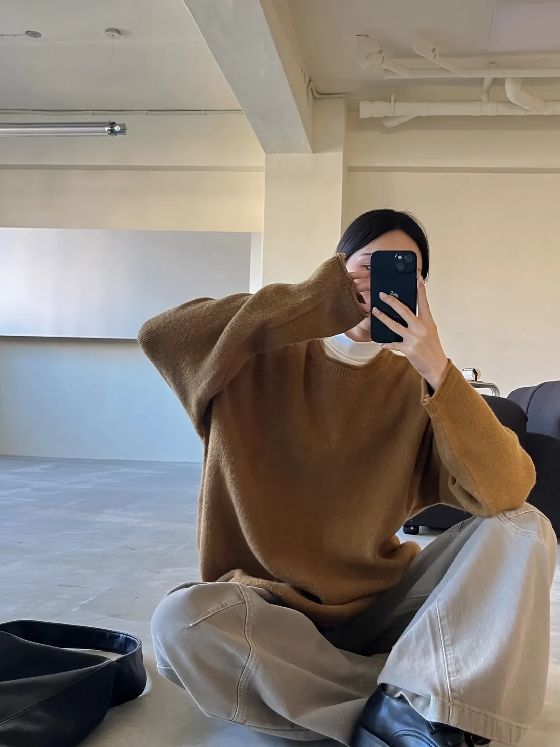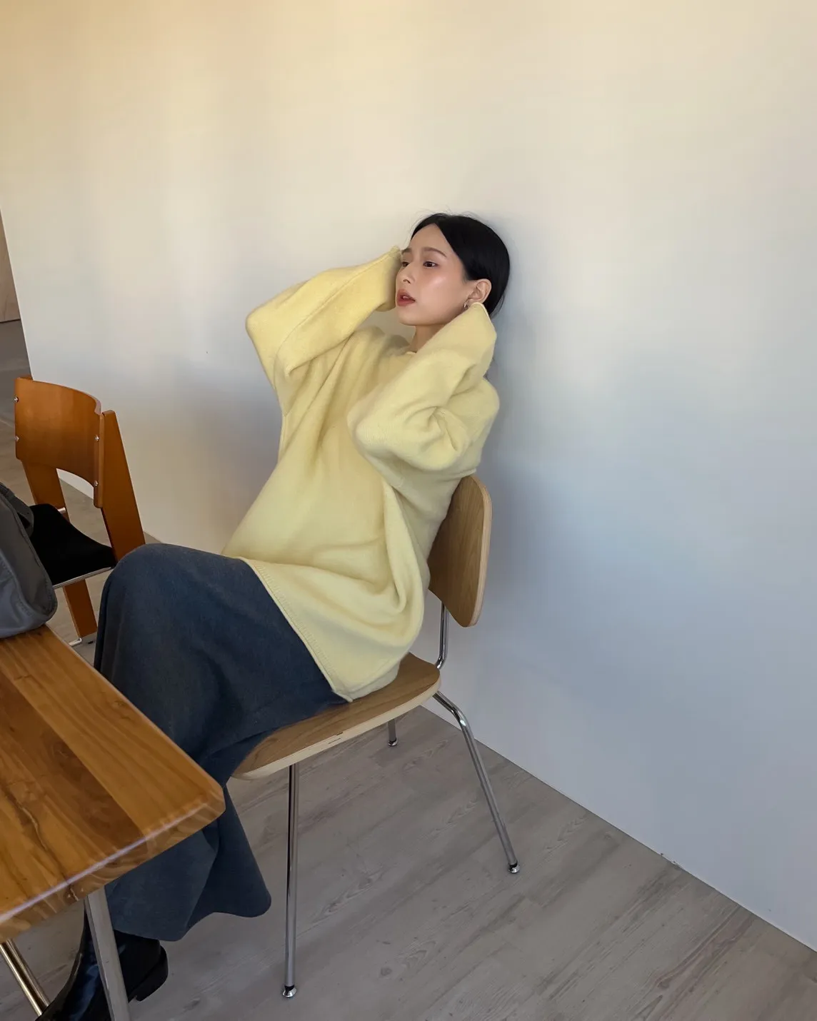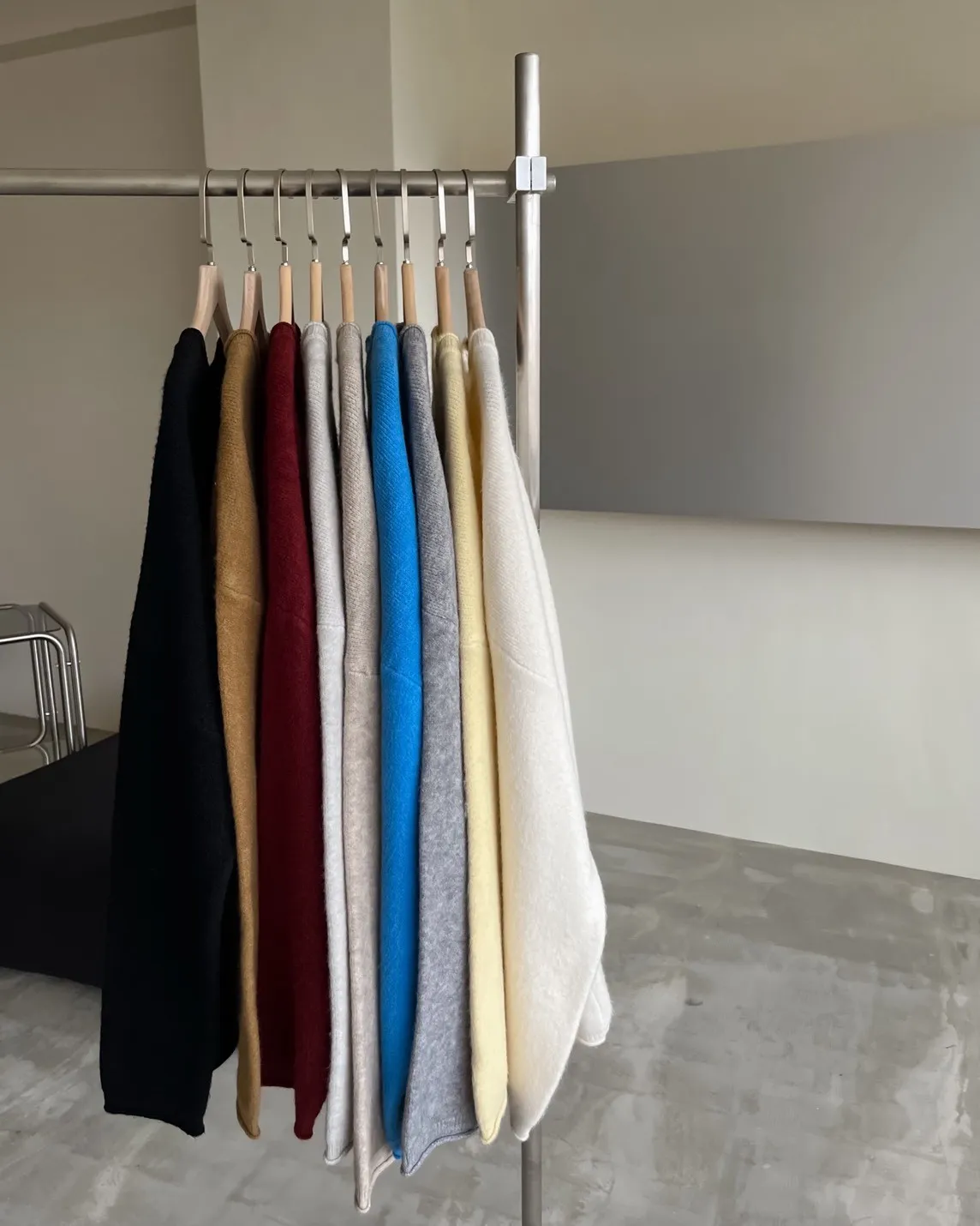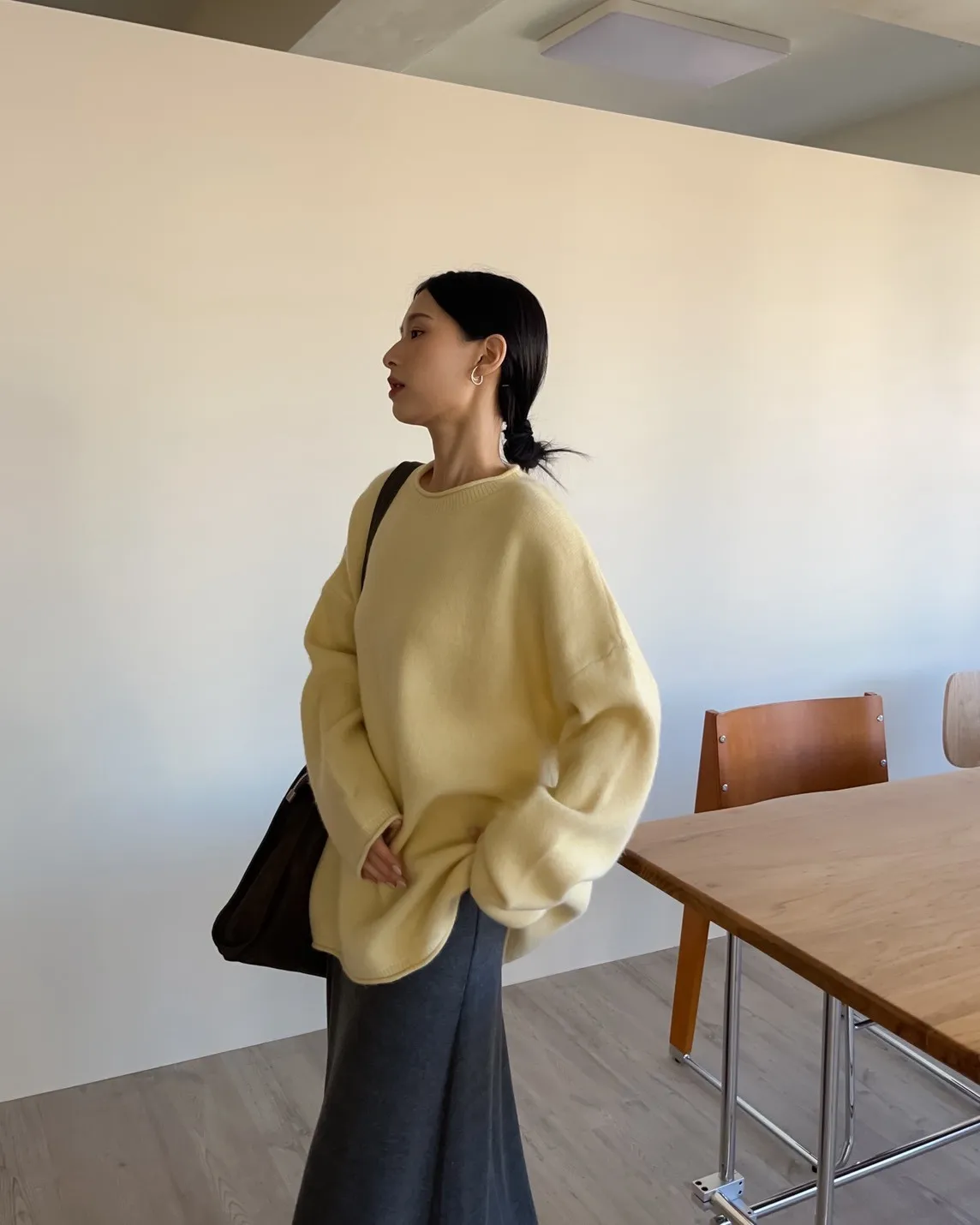 W0035(九色)療癒色系~QQ邊寬鬆大毛衣(米白/灰杏/奶茶/駝/黃/紅/藍/灰/黑)